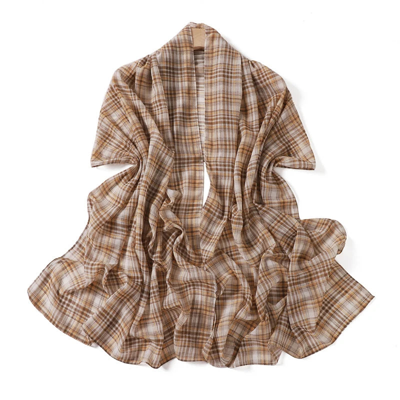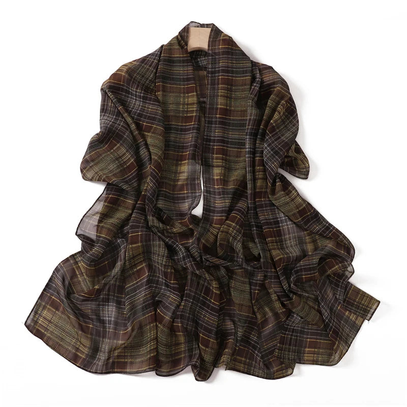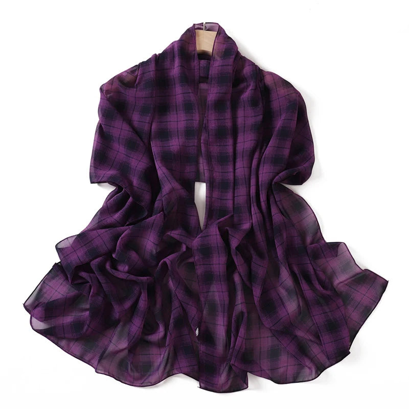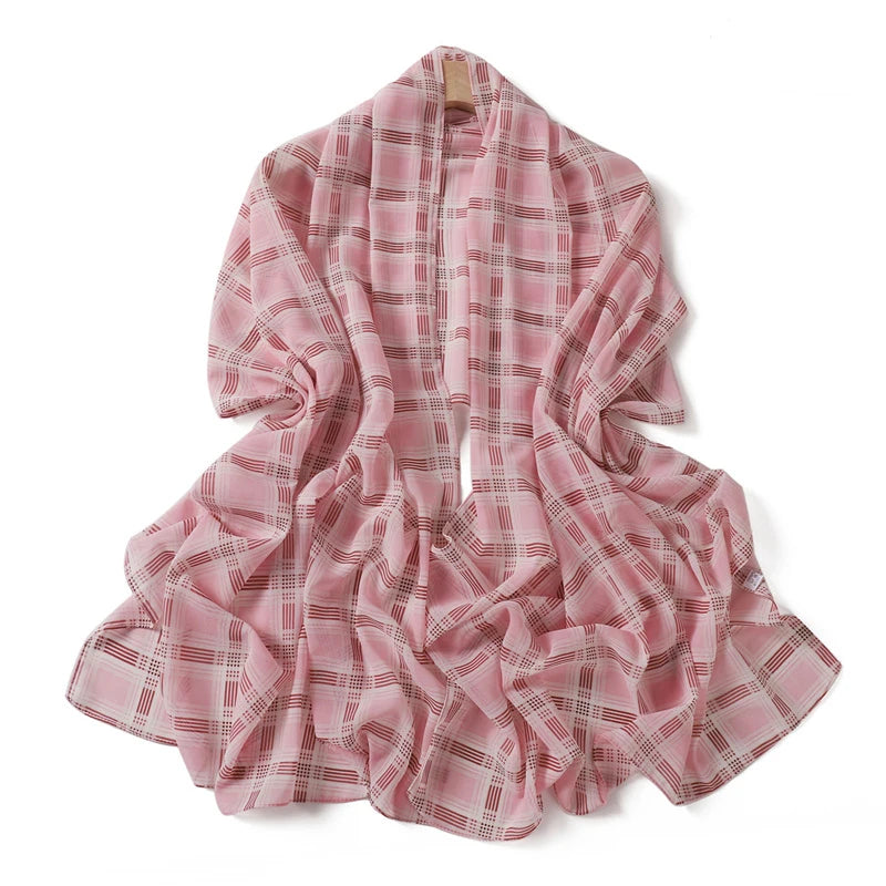 175*70CM New Plaid Print Islam Long Chiffon Scarf Wrapped Scarf Muslim Women's Hijabs Shawl Ramadan Female