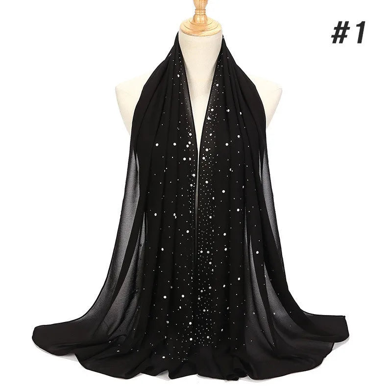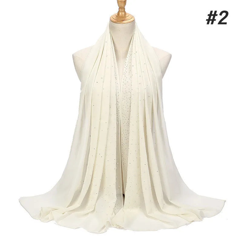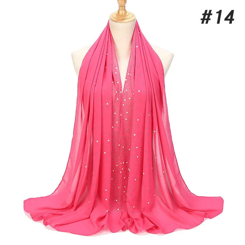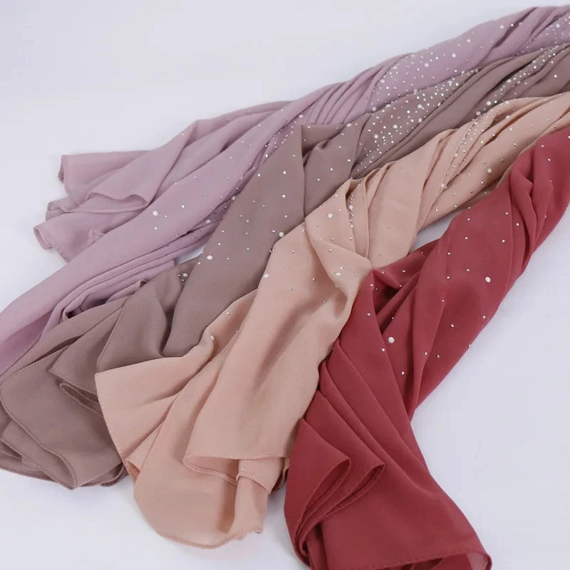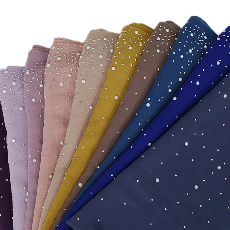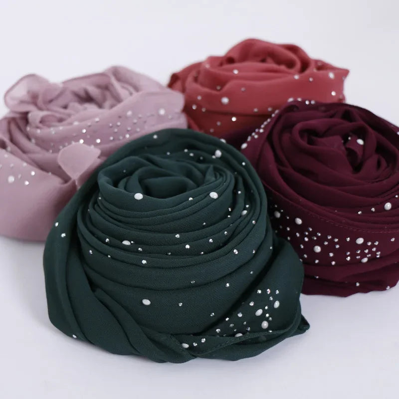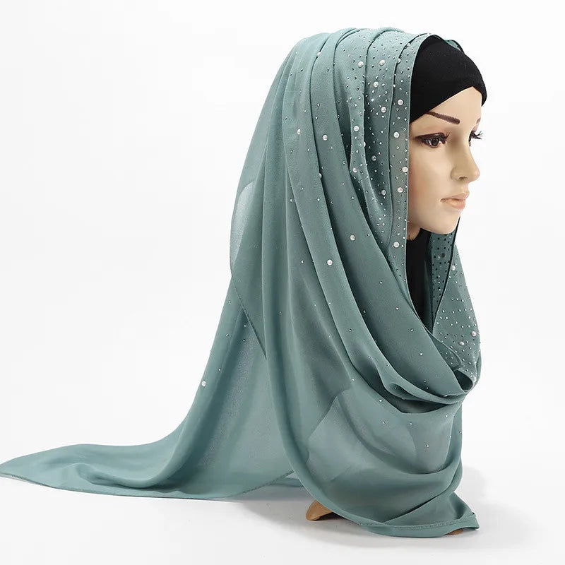 70*180Cm Plain Bubble Chiffon Hijab Scarf for Women Pearl Hijab Shawl Solid Color Head Wraps Female Hijabs Scarves Foulard Veil