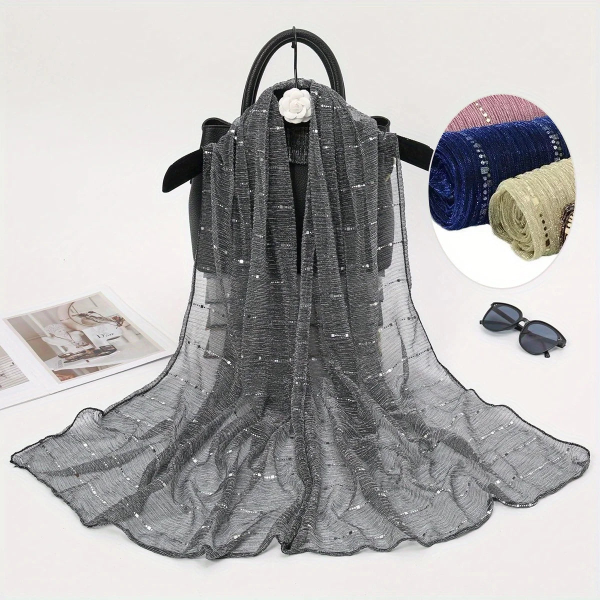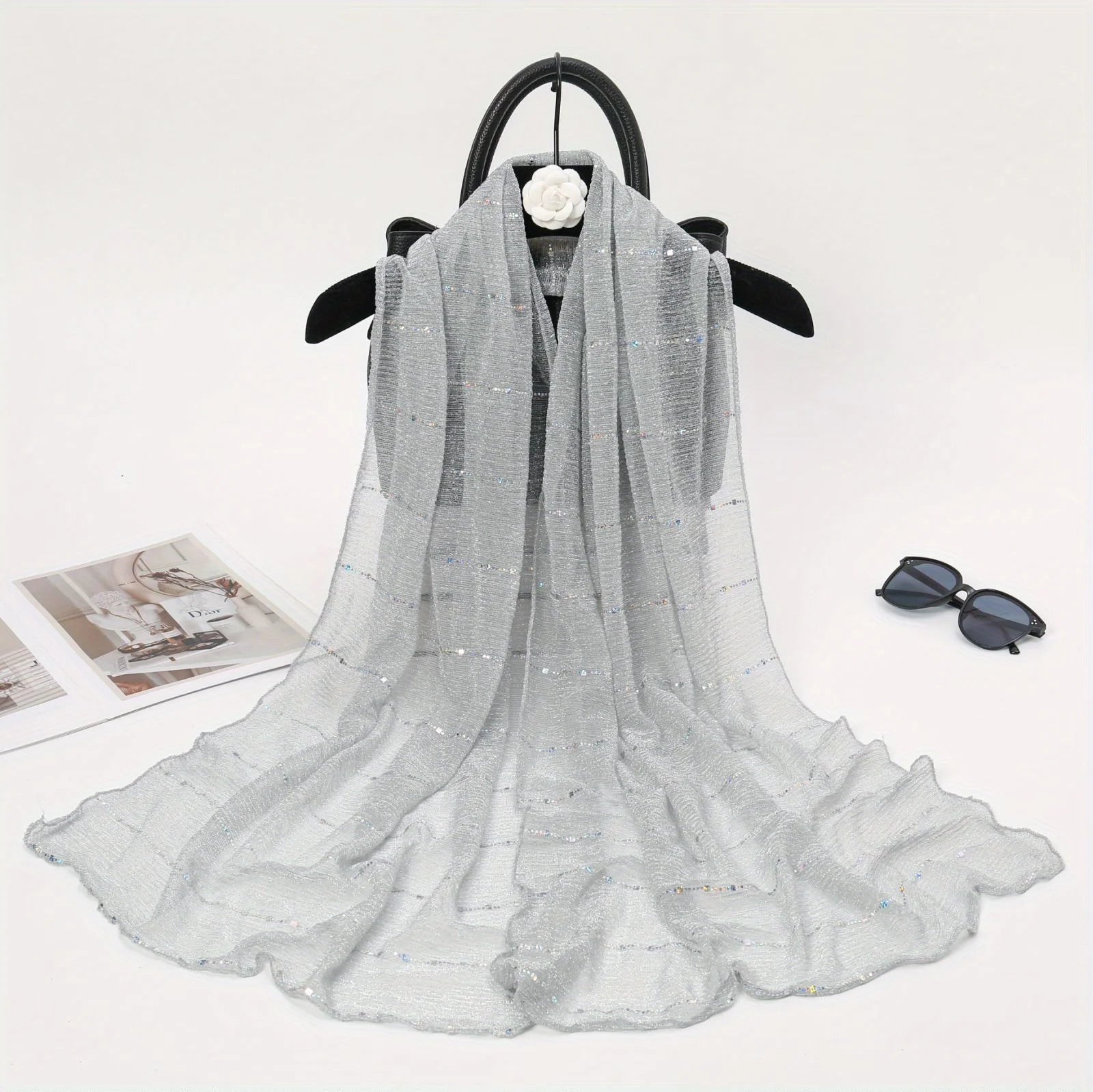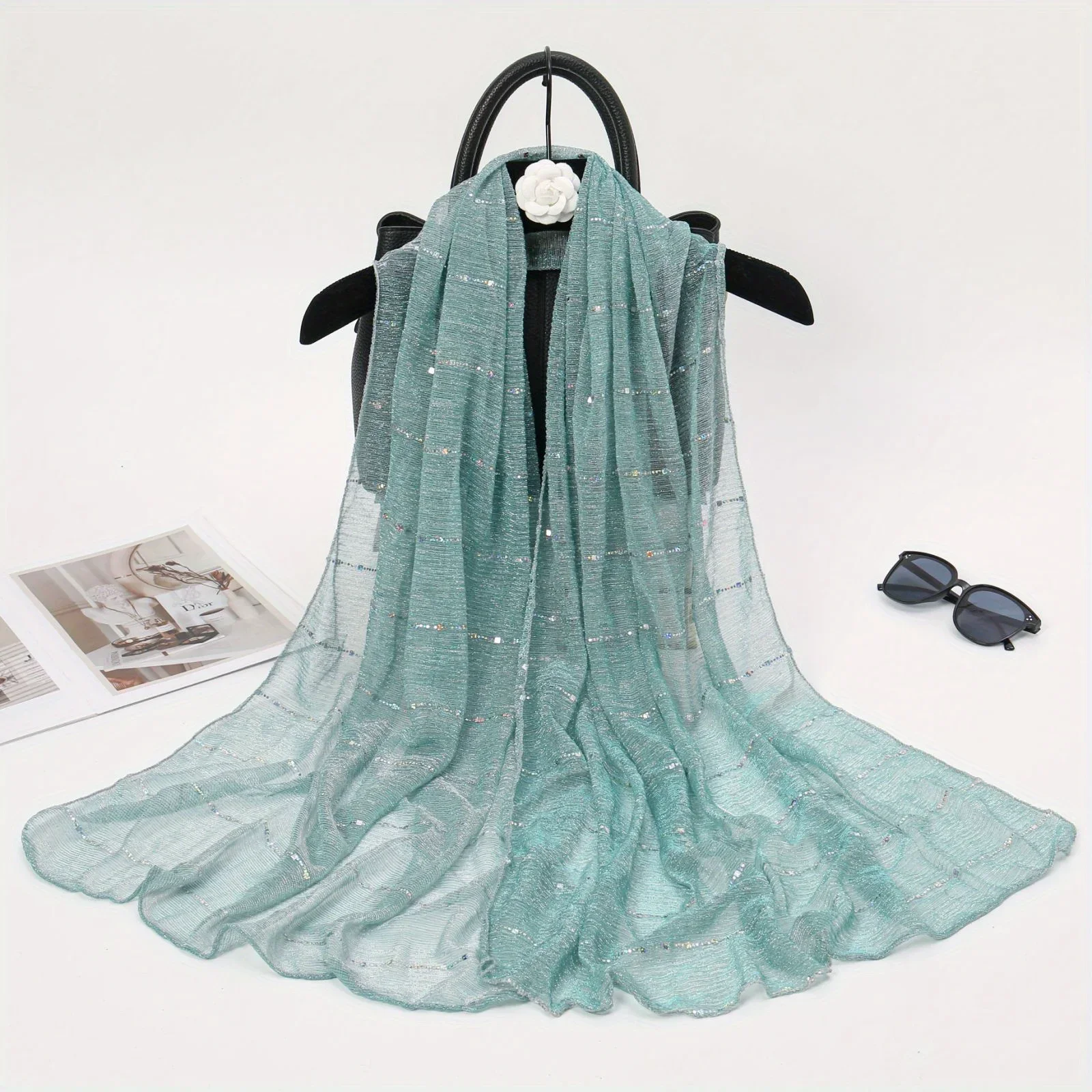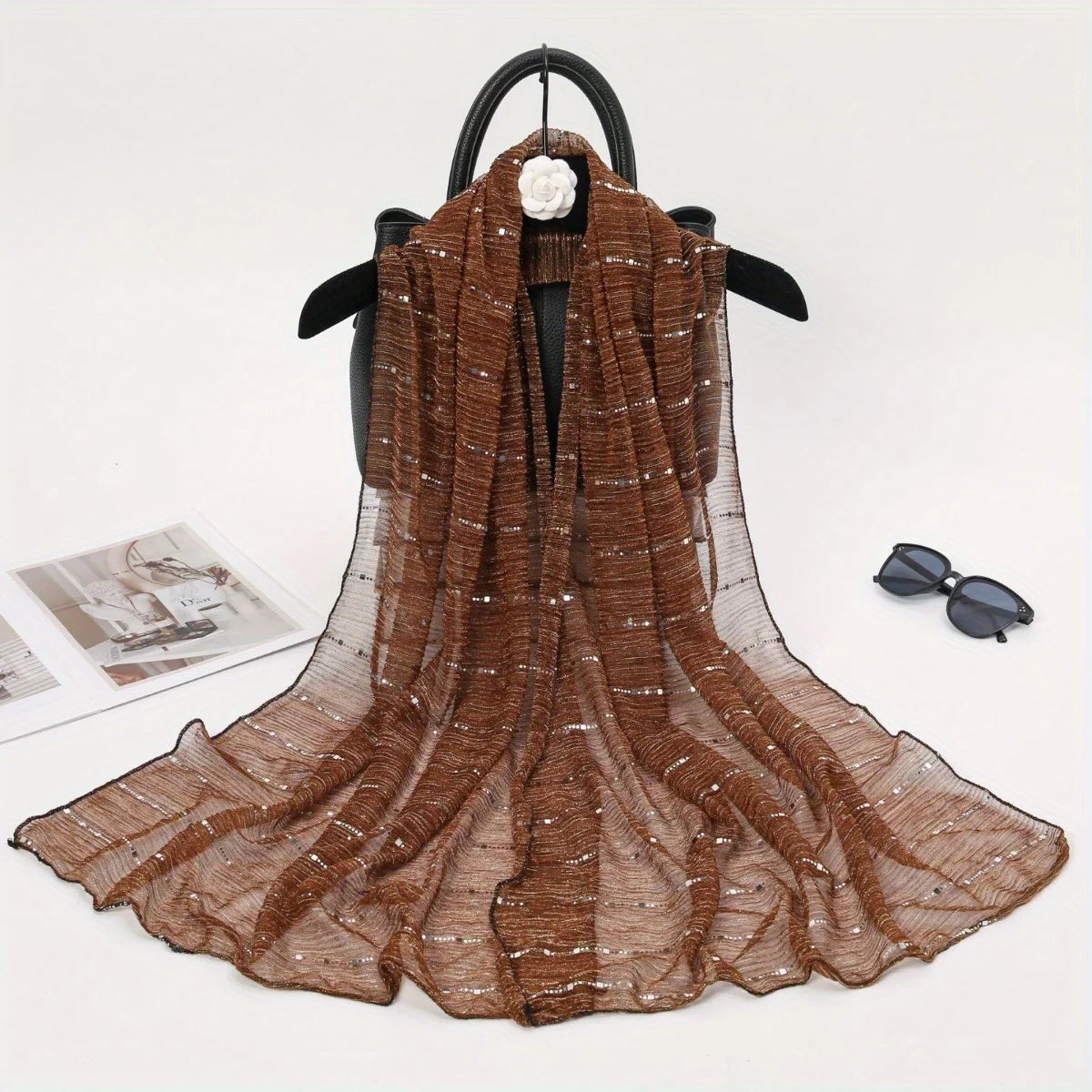 1PCS Spring and Autumn Women's High Elasticity sequin Chain Scarf, Wick Silk Long Scarf, Indian Scarf, Slide Silk Scarf