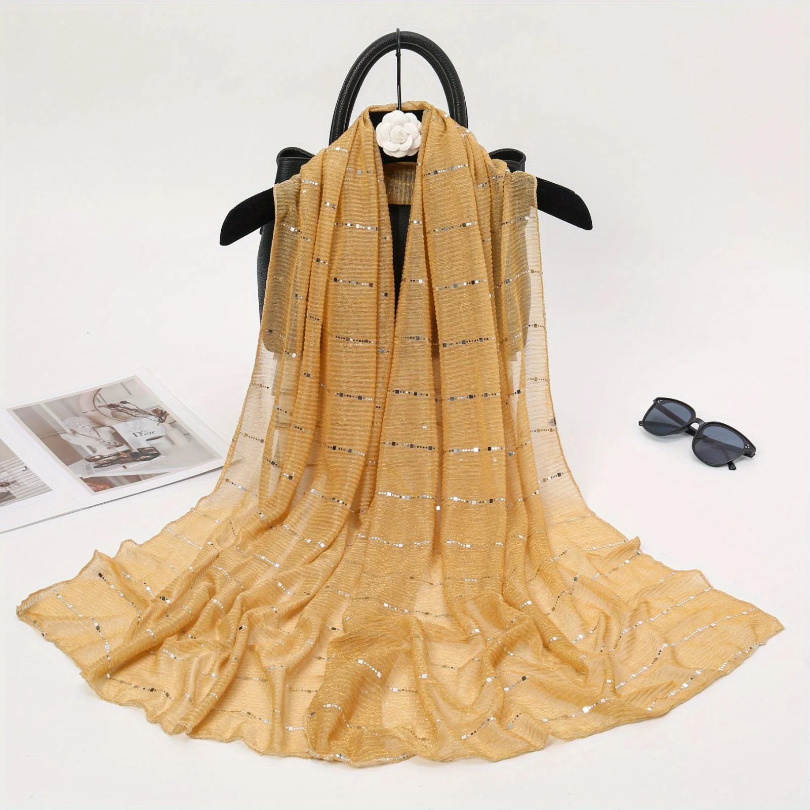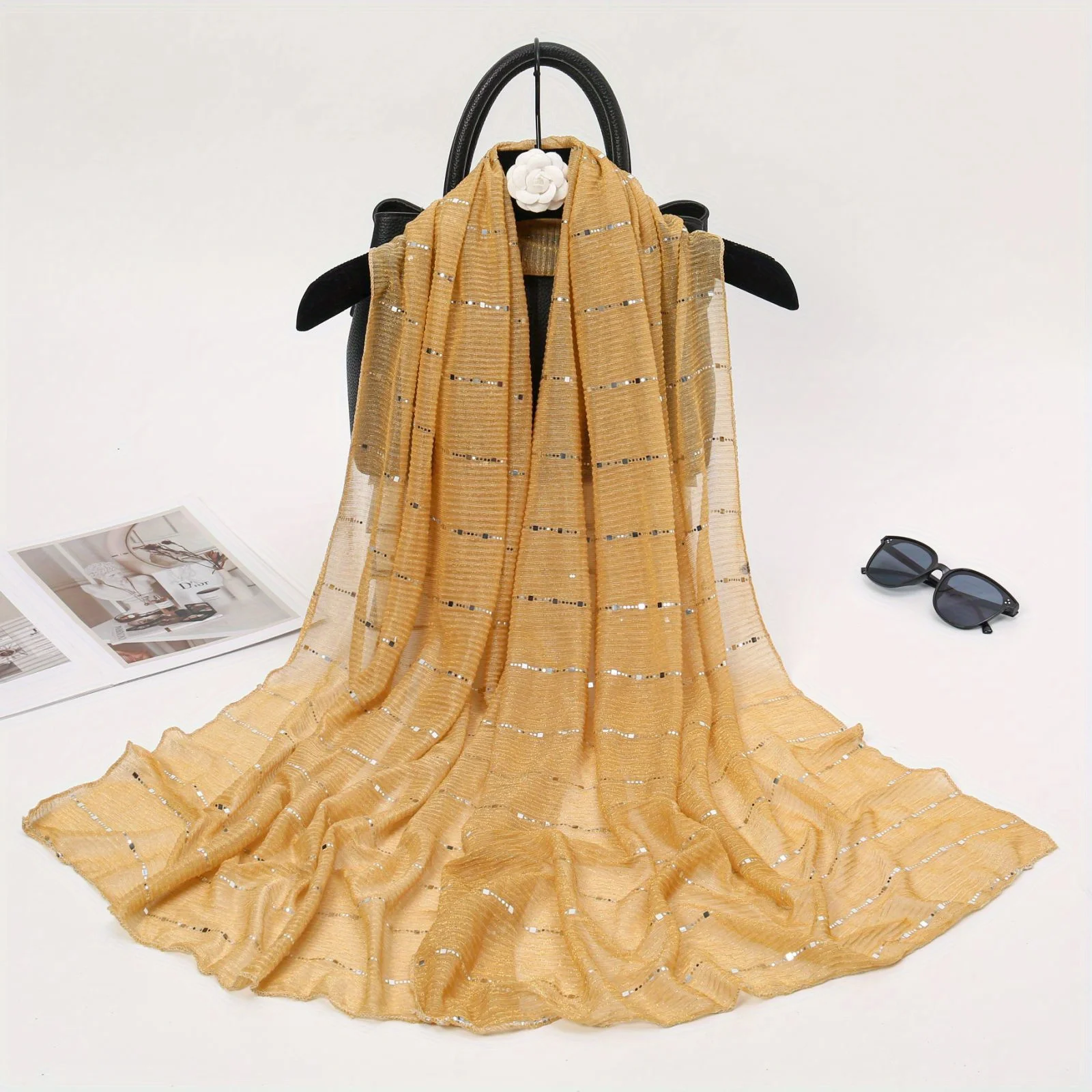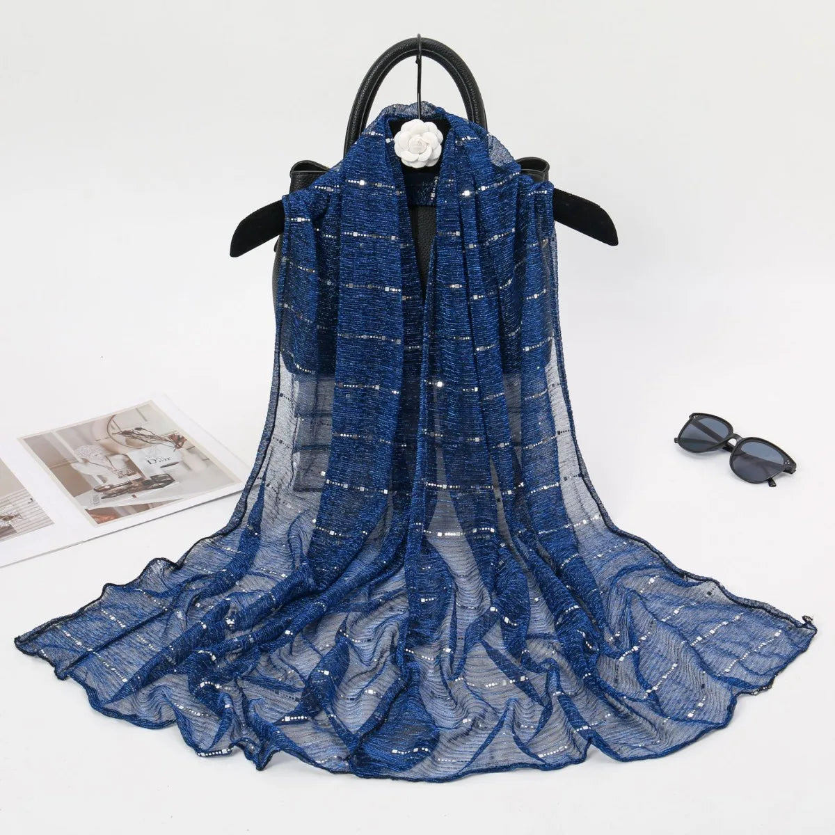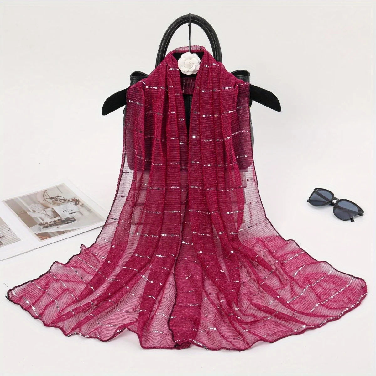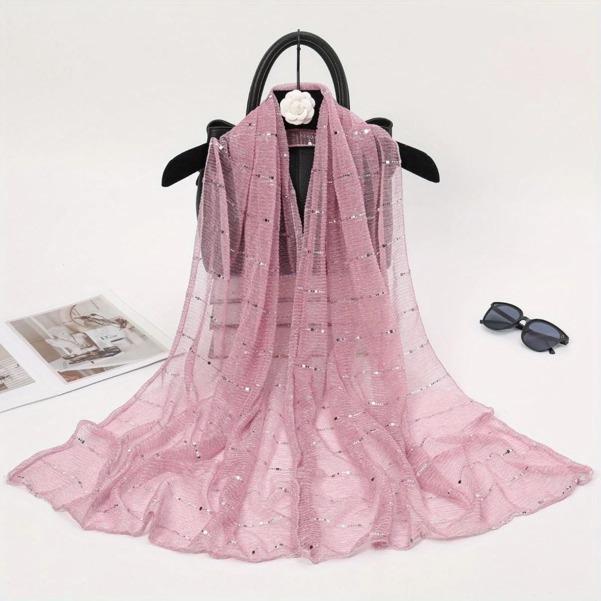 1PCS Spring and Autumn Women's High Elasticity sequin Chain Scarf, Wick Silk Long Scarf, Indian Scarf, Slide Silk Scarf
