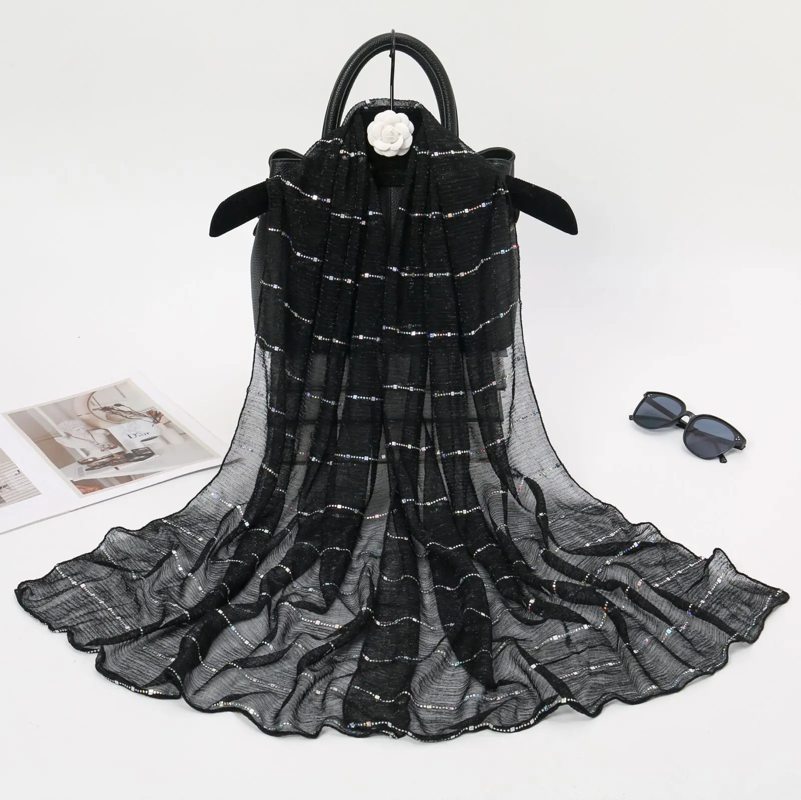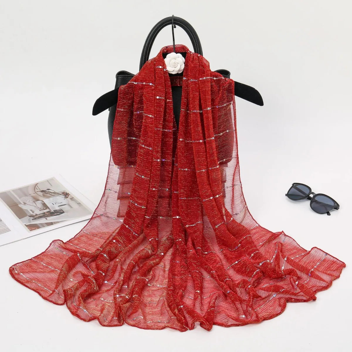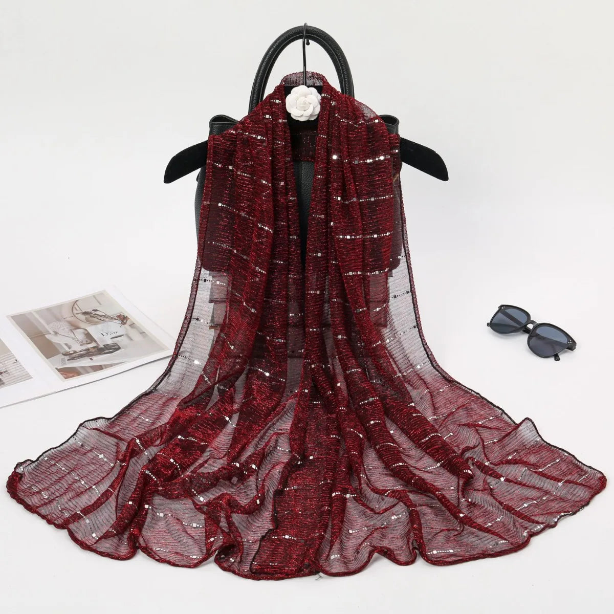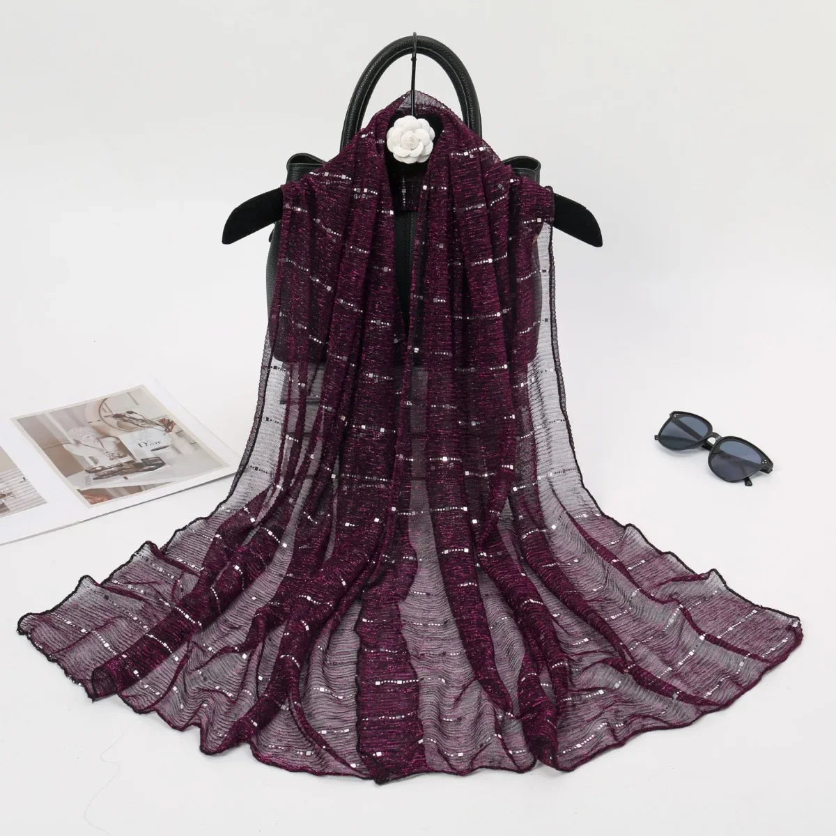 1PCS Spring and Autumn Women's High Elasticity sequin Chain Scarf, Wick Silk Long Scarf, Indian Scarf, Slide Silk Scarf