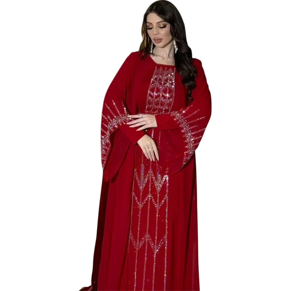 2024 Dubai Abaya Autumn Fashion Muslim Long Sleeve V-neck Party Evening Maxi Dress Kaftan clothes for Muslim Dress Women Outfits