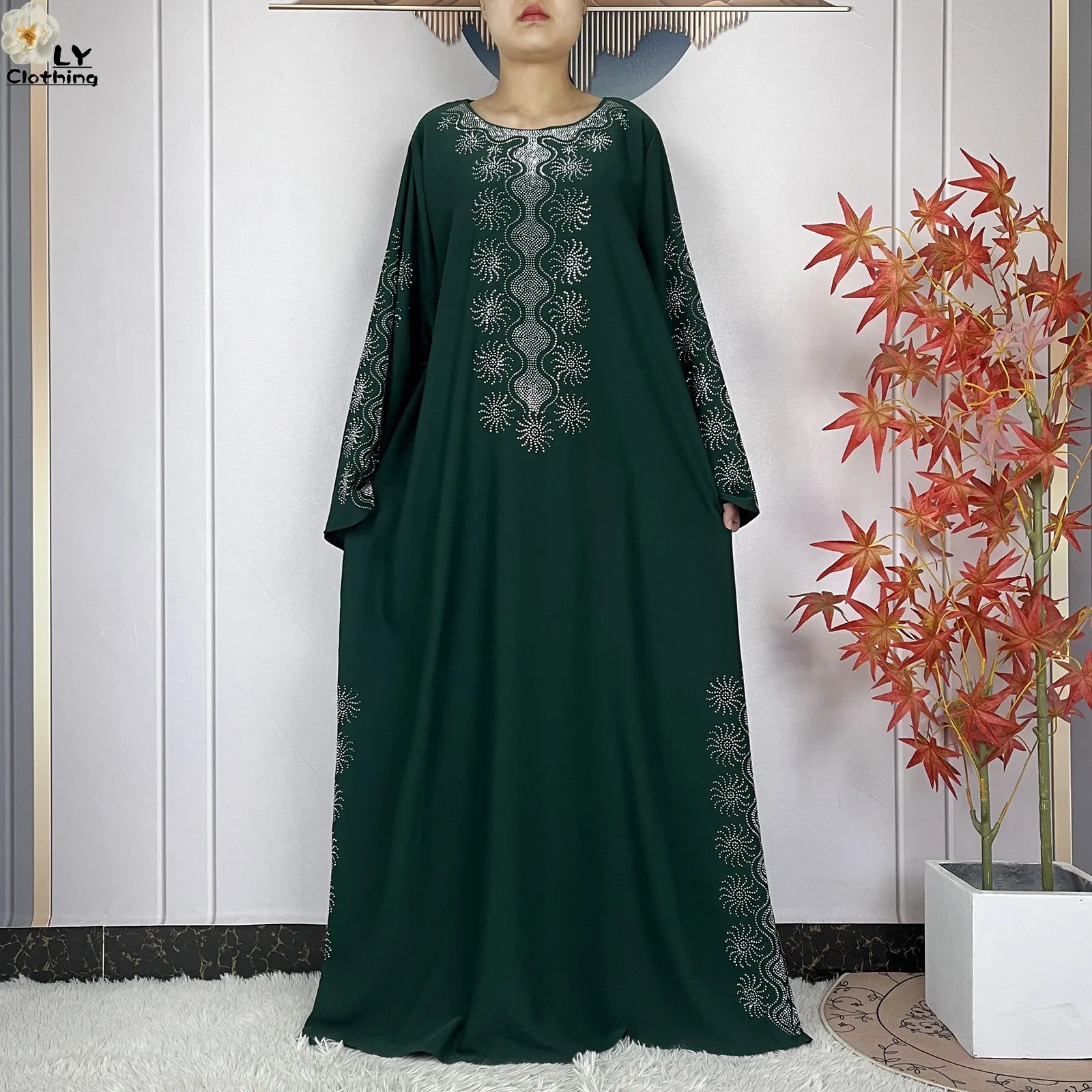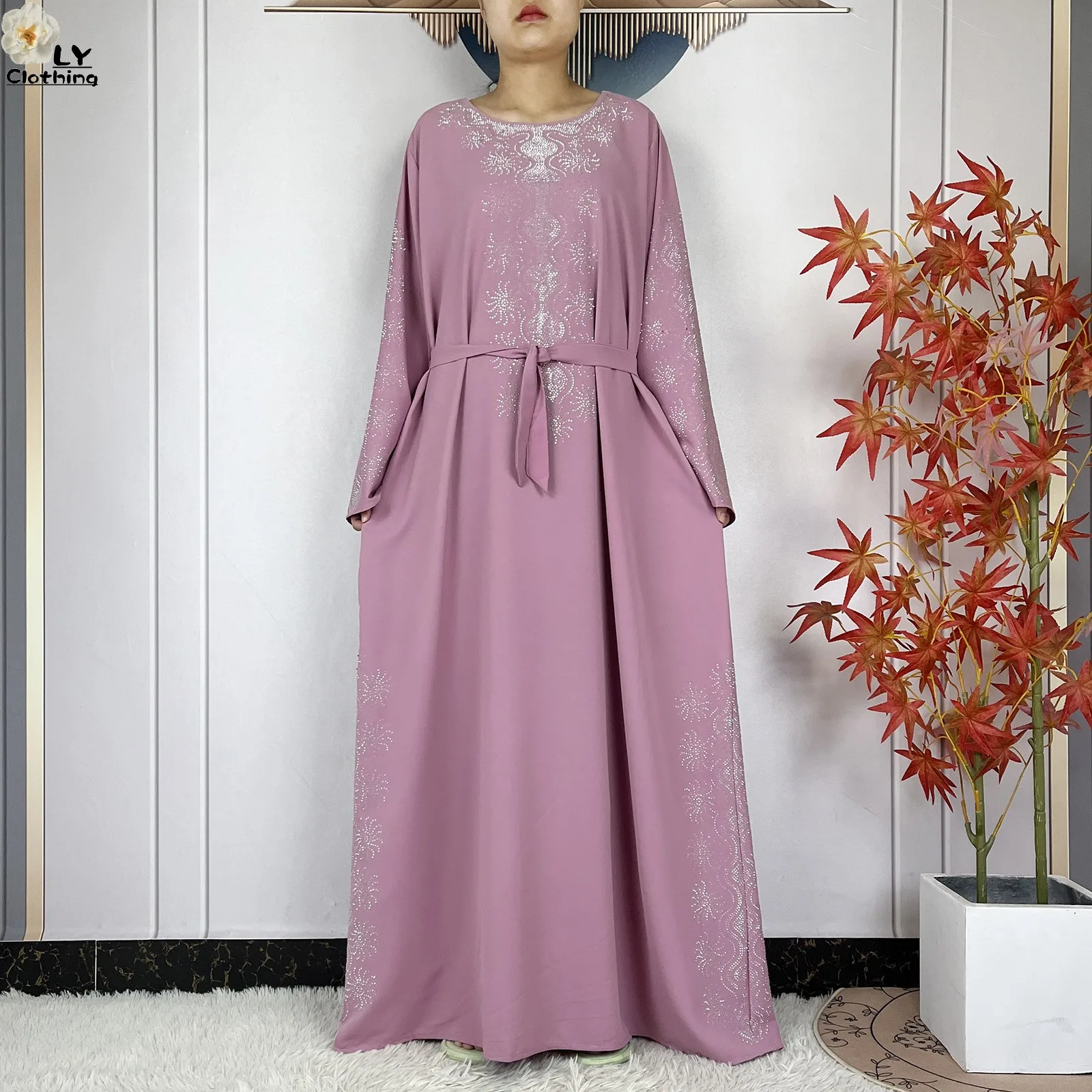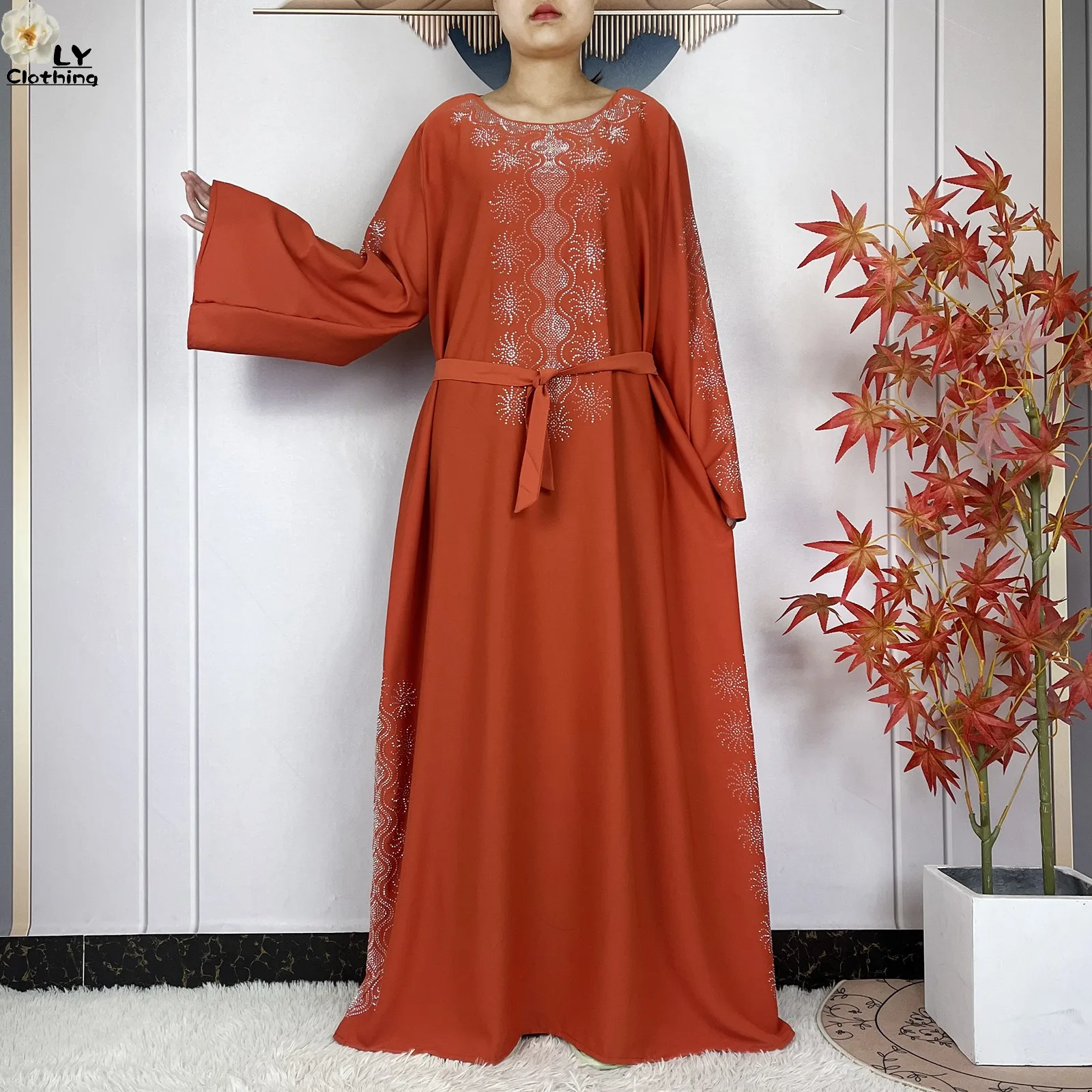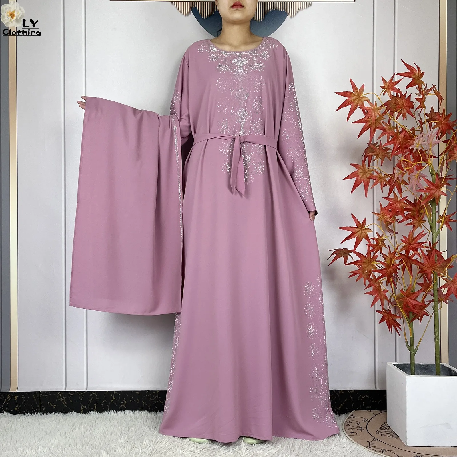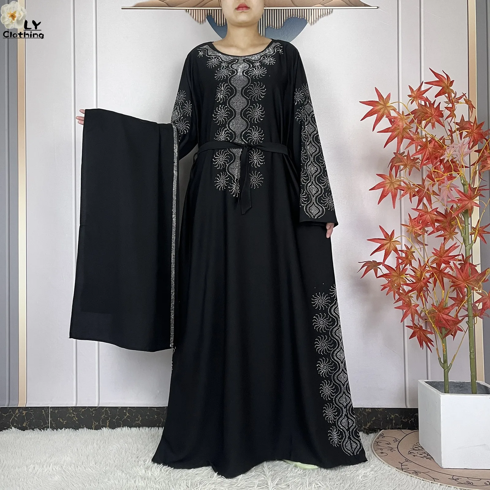 2024 Muslim Sets Women Party Dress Dubai Long Sleeve Diamonds Dashiki Islam Women Chiffon Comfort Fabric African Tradition Abaya