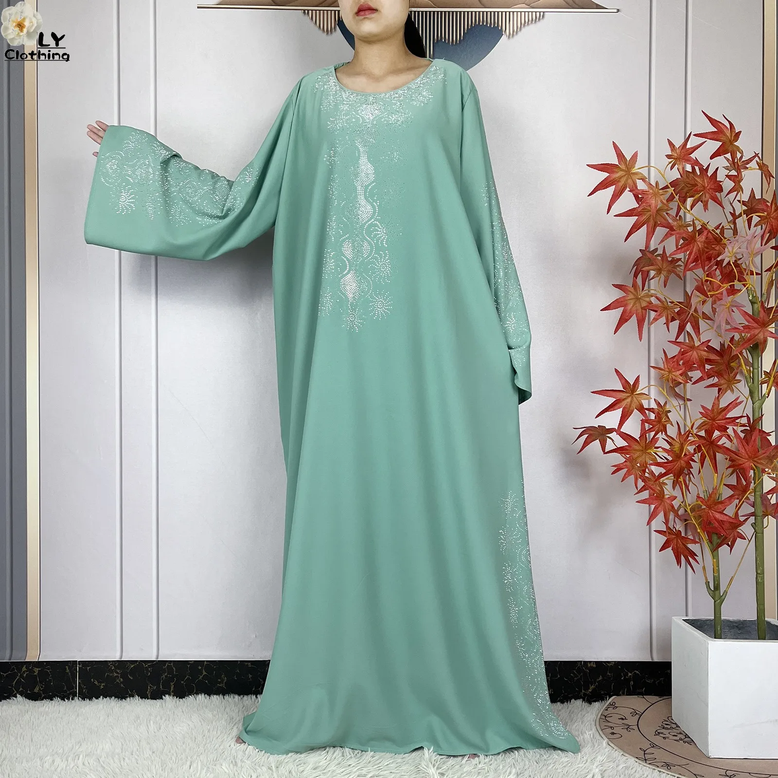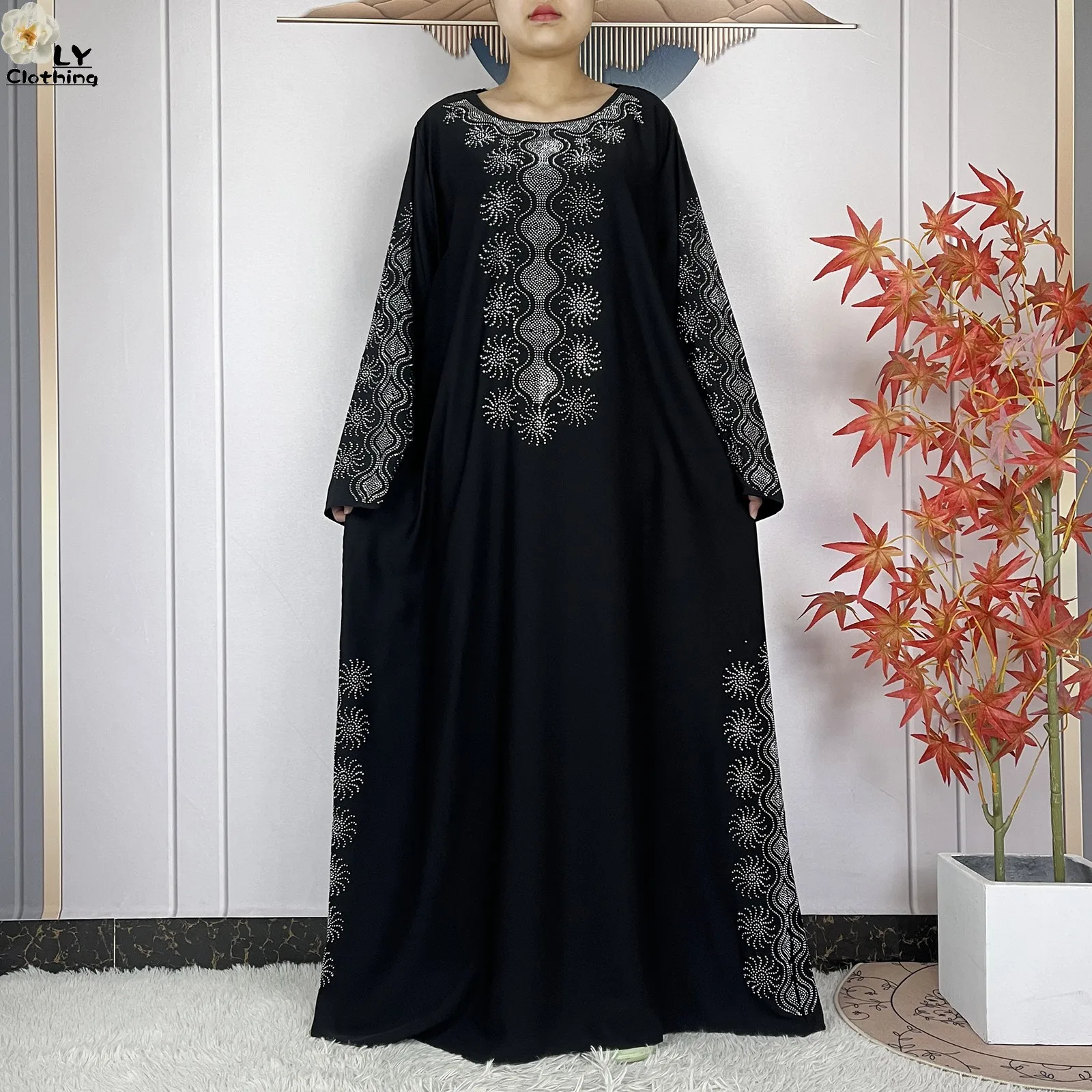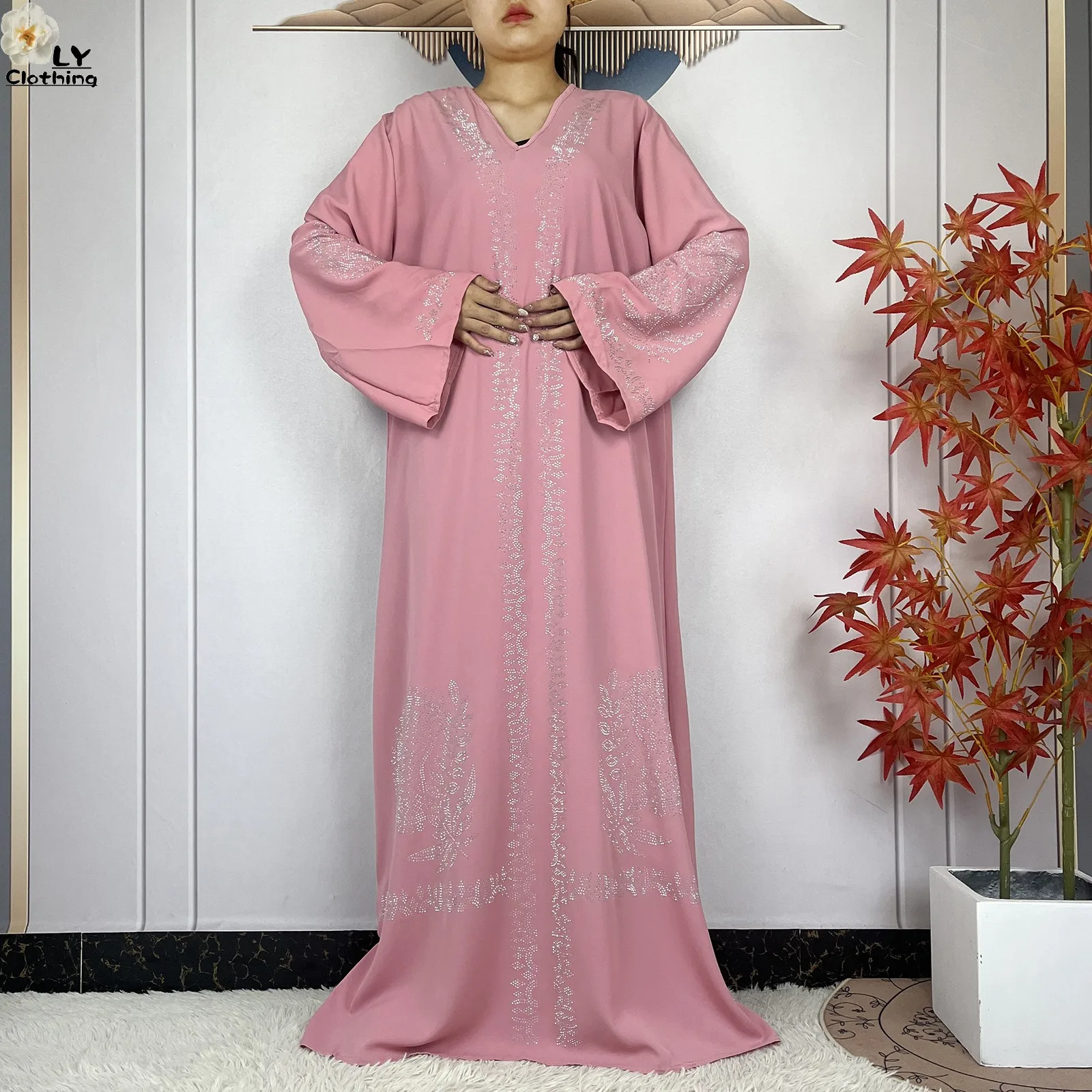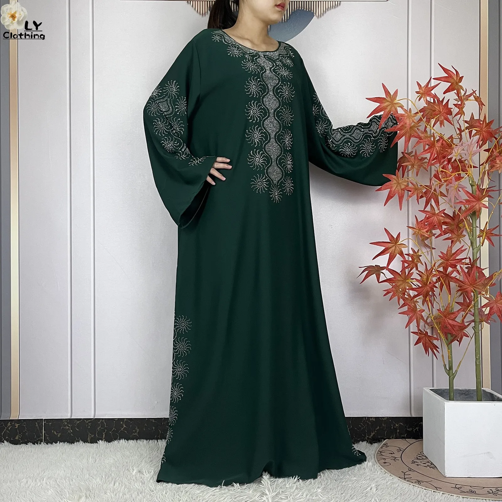 2024 Muslim Sets Women Party Dress Dubai Long Sleeve Diamonds Dashiki Islam Women Chiffon Comfort Fabric African Tradition Abaya