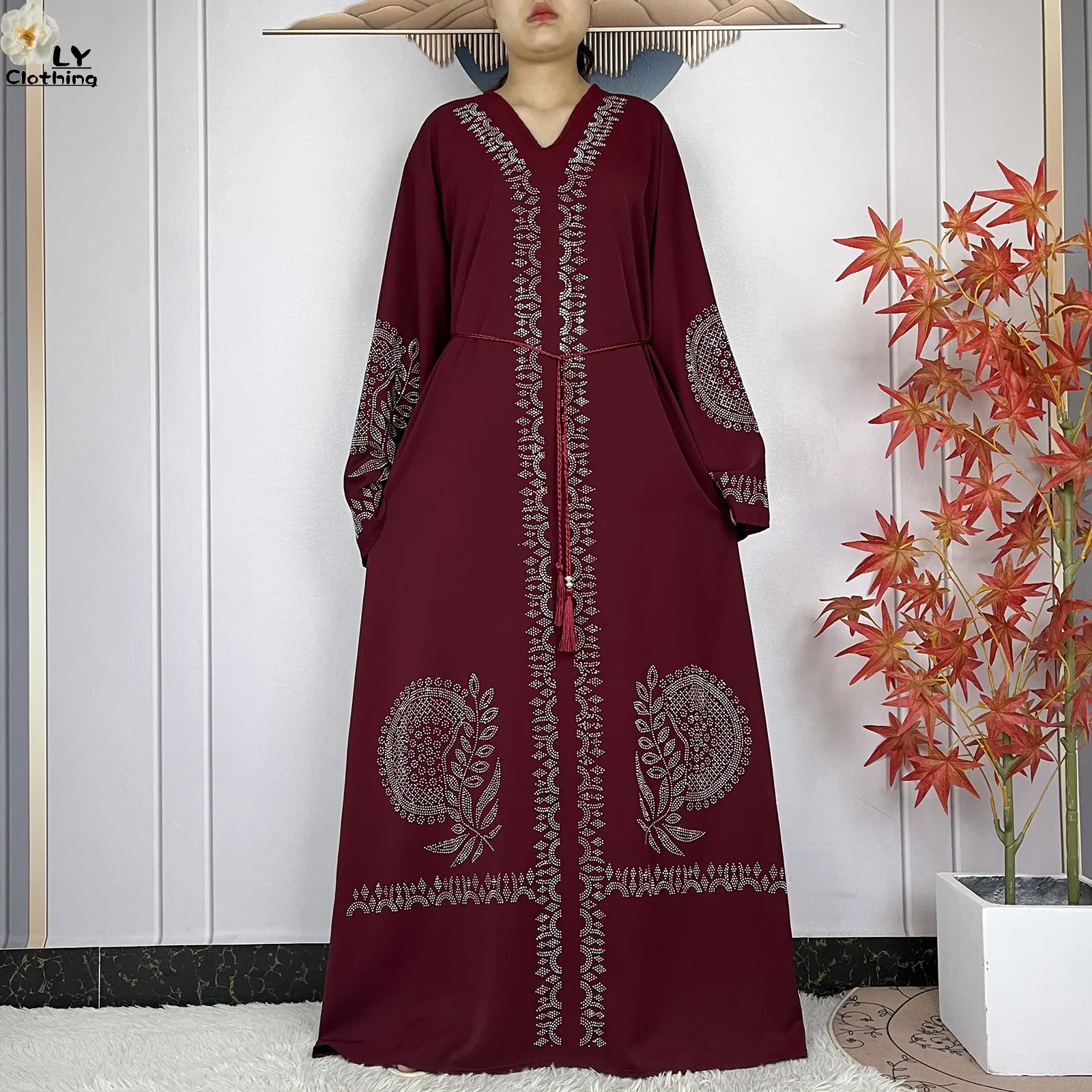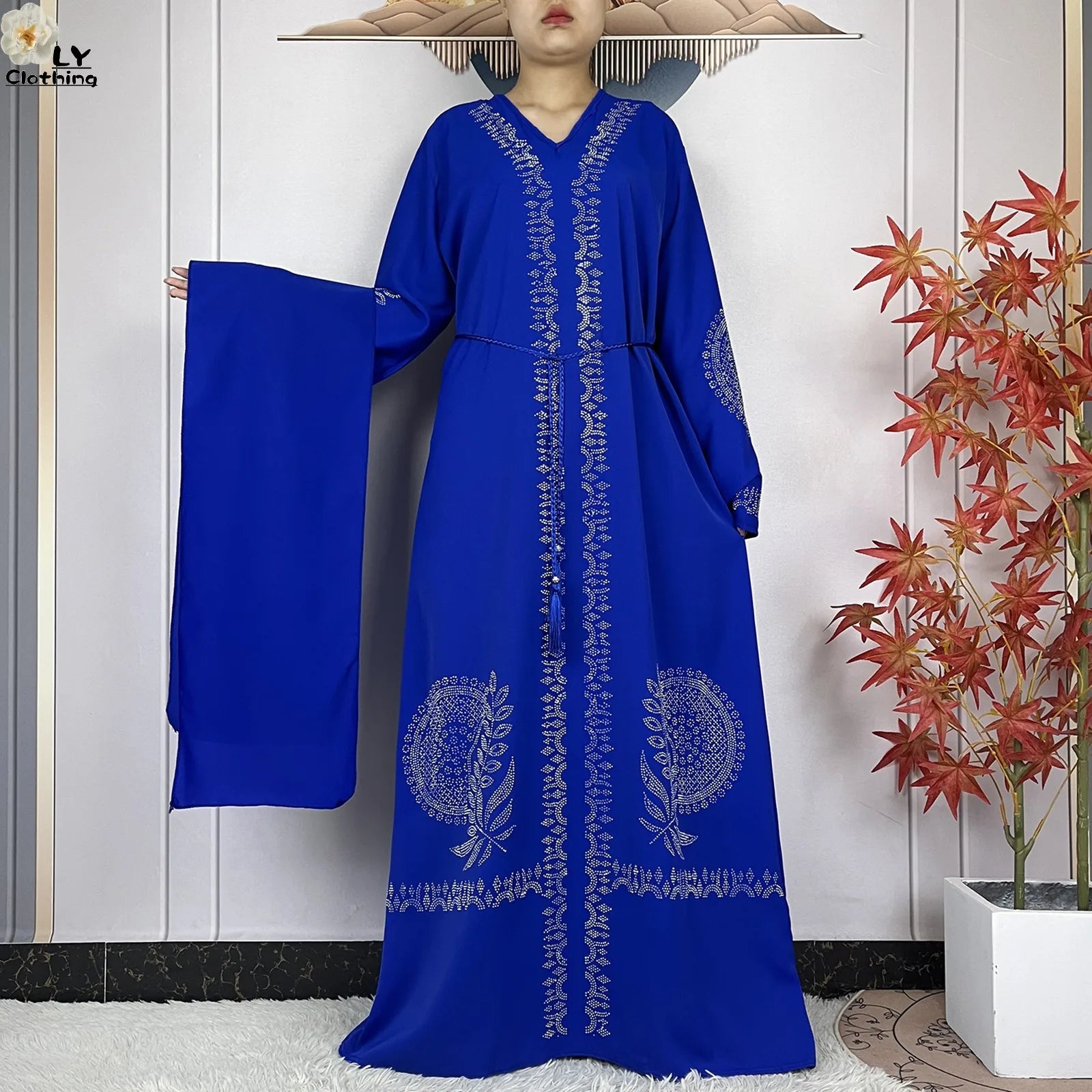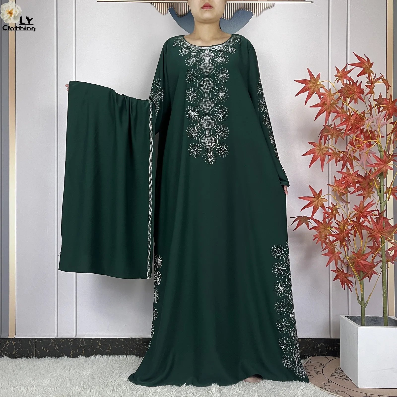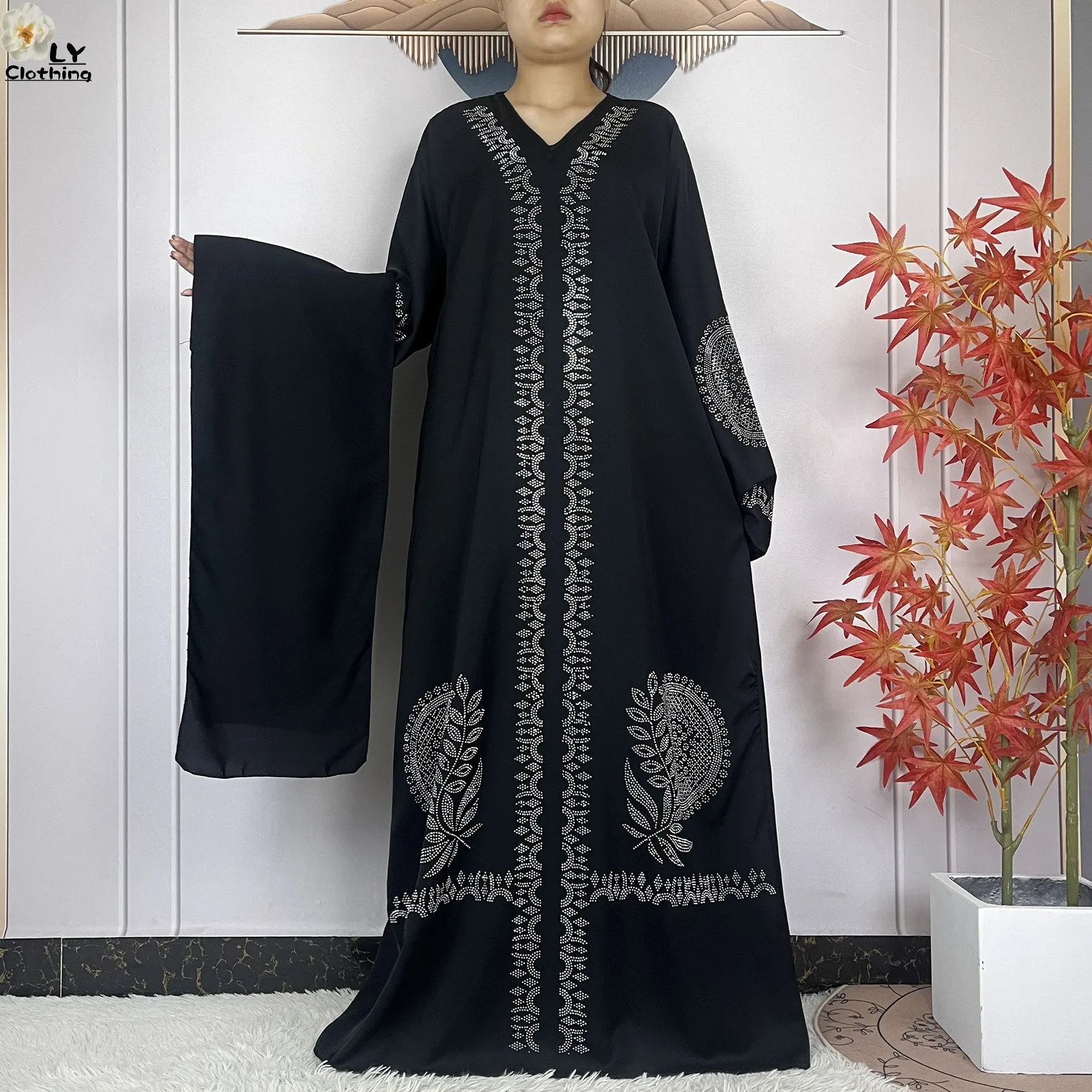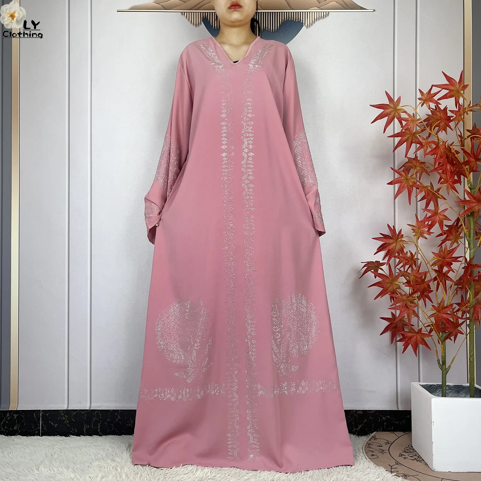 2024 Muslim Sets Women Party Dress Dubai Long Sleeve Diamonds Dashiki Islam Women Chiffon Comfort Fabric African Tradition Abaya