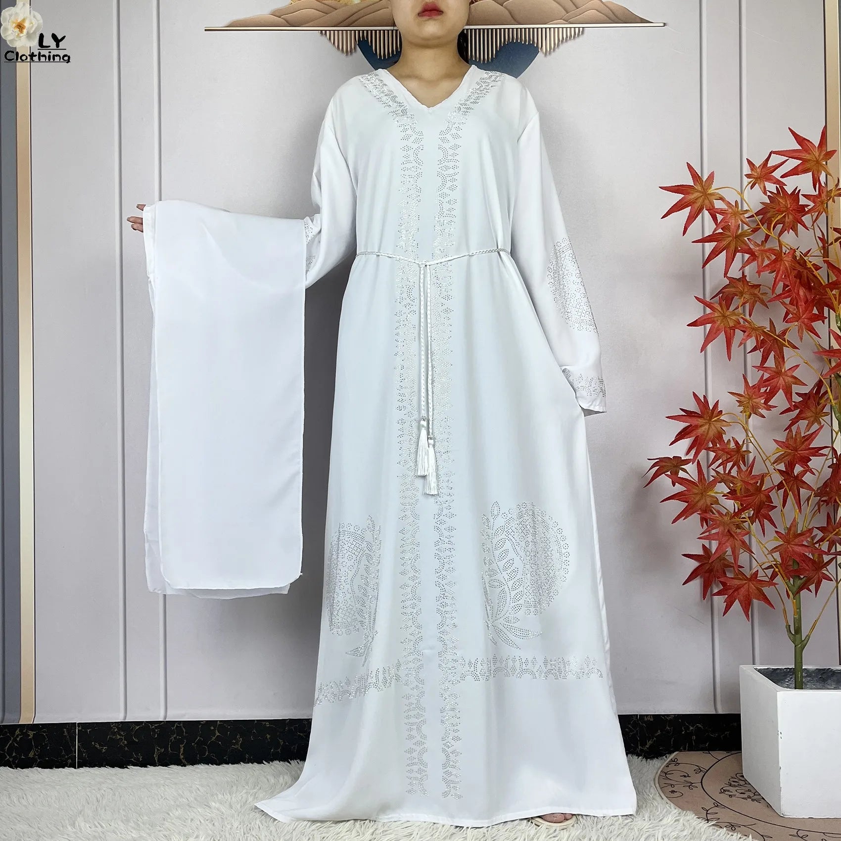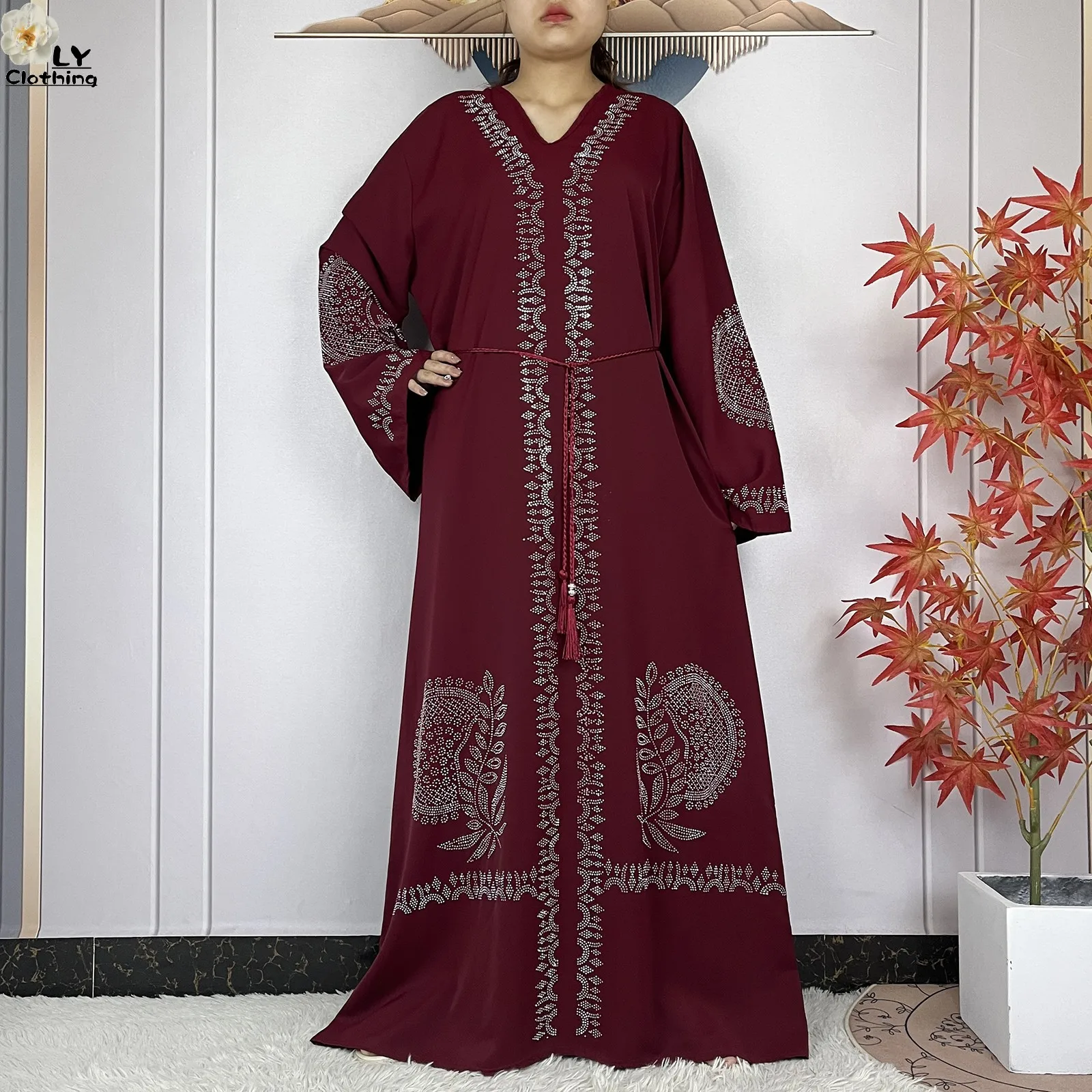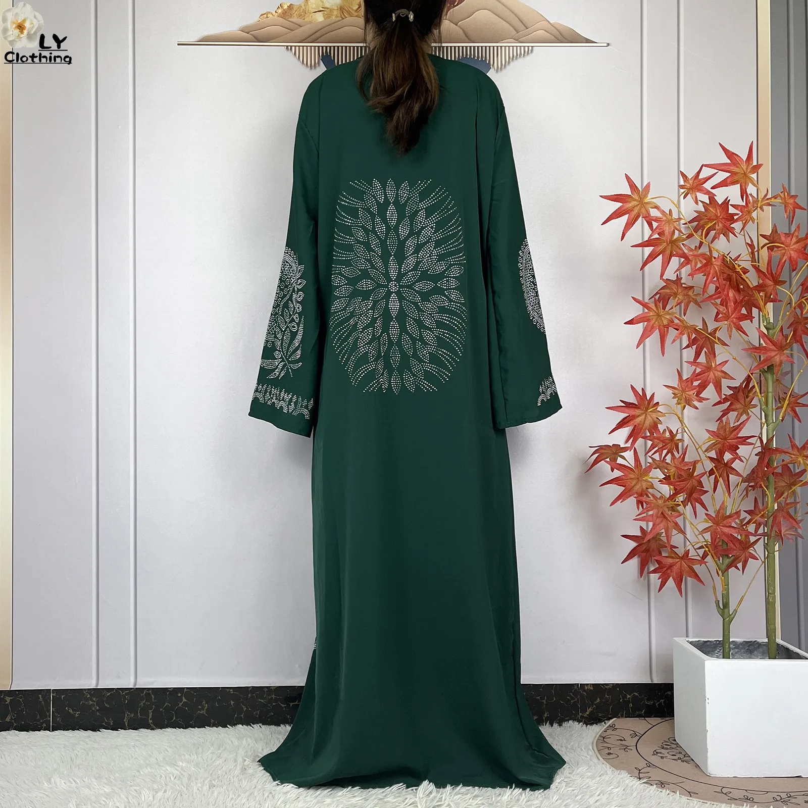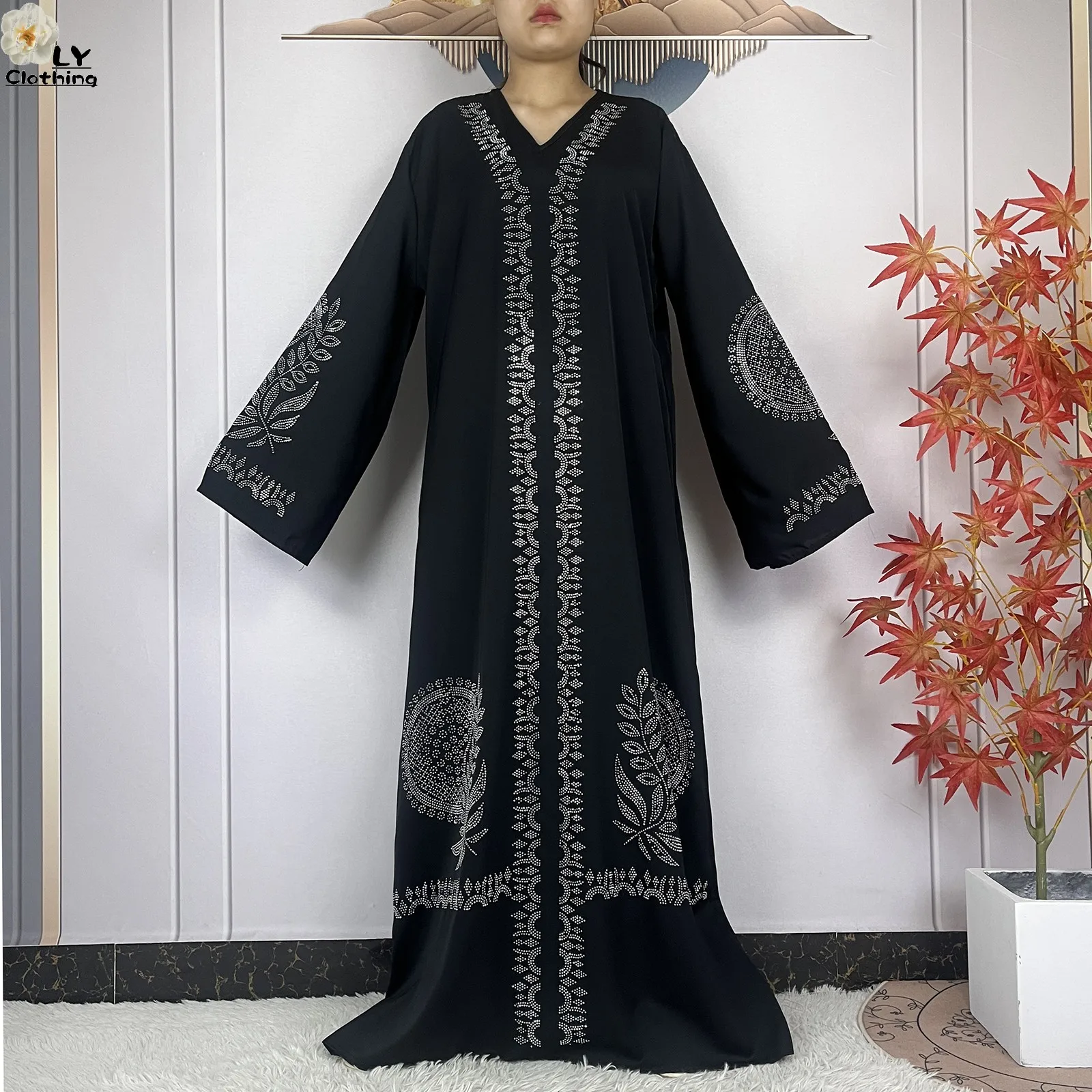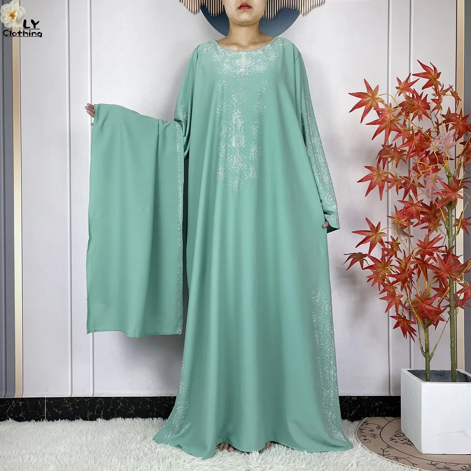 2024 Muslim Sets Women Party Dress Dubai Long Sleeve Diamonds Dashiki Islam Women Chiffon Comfort Fabric African Tradition Abaya