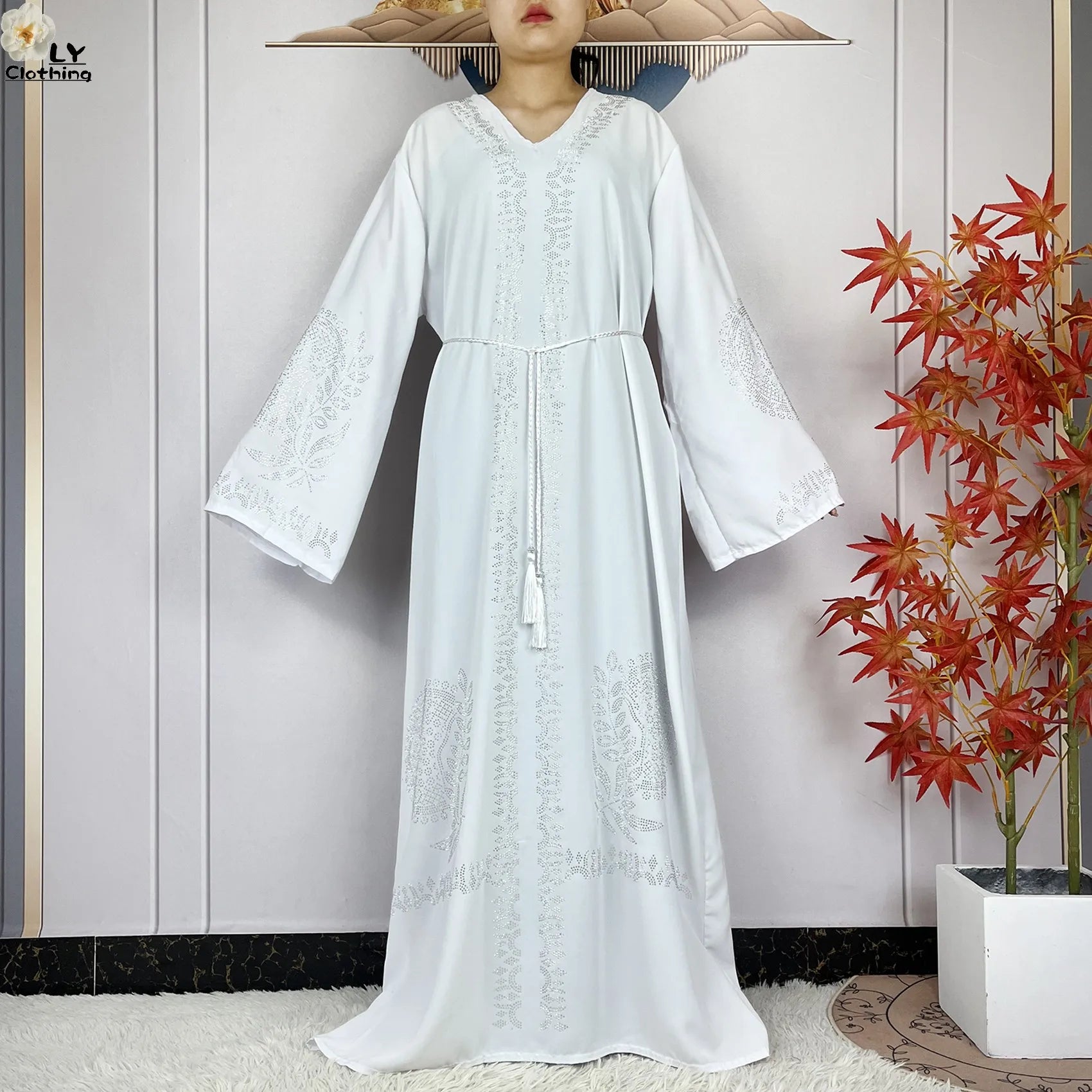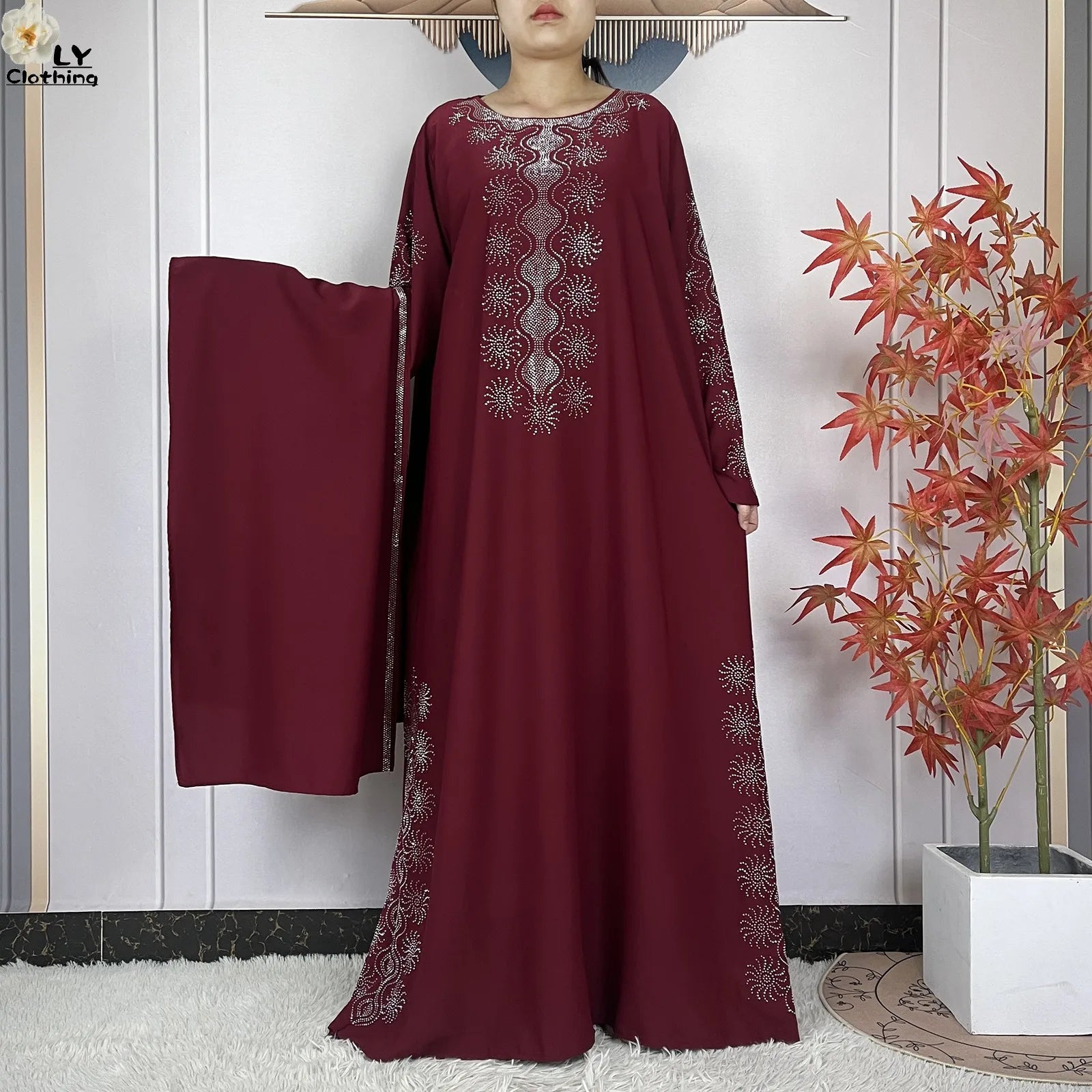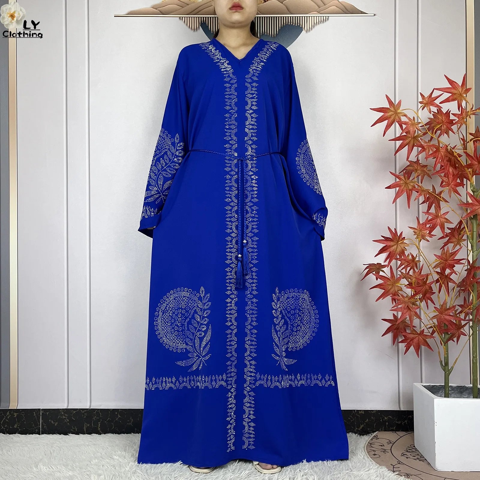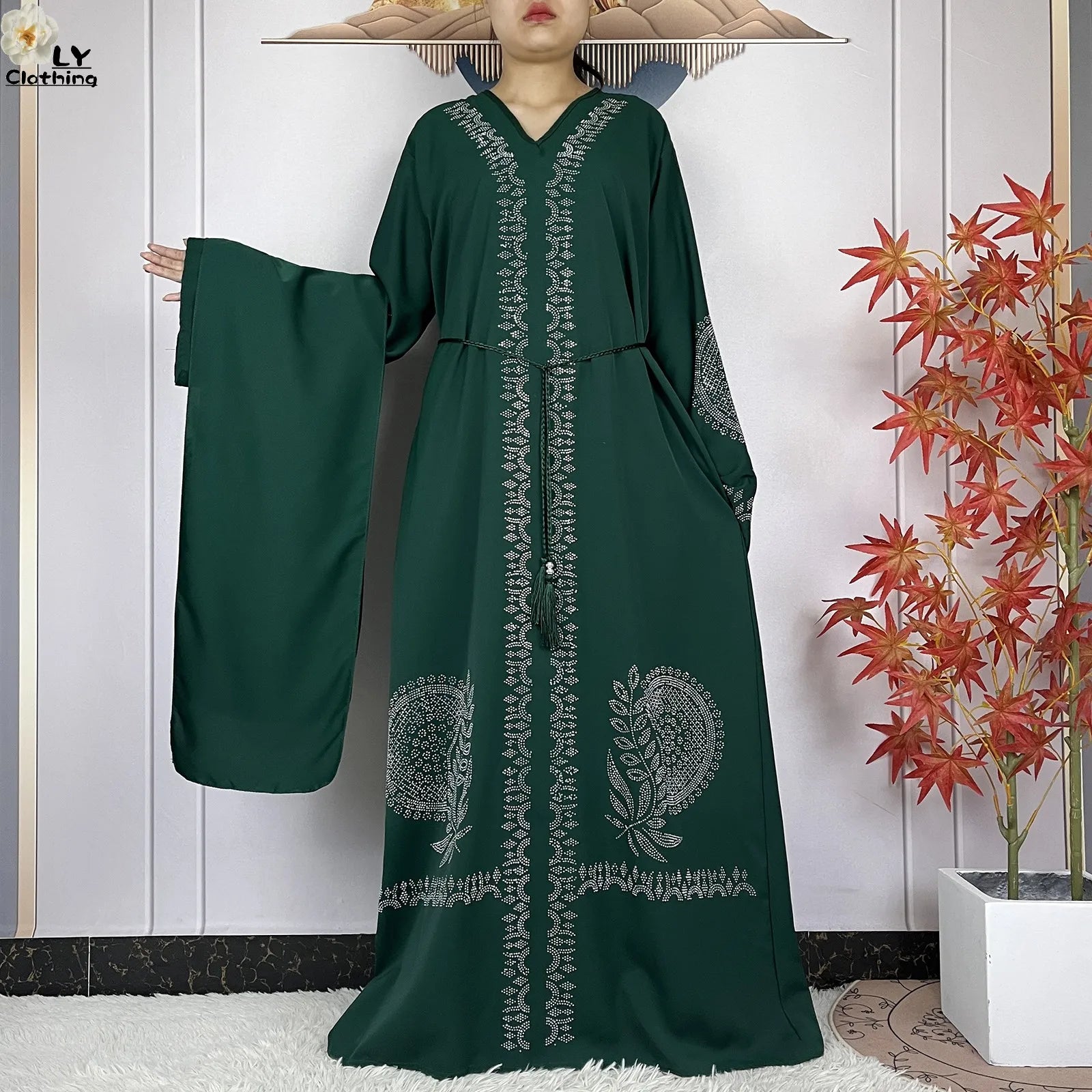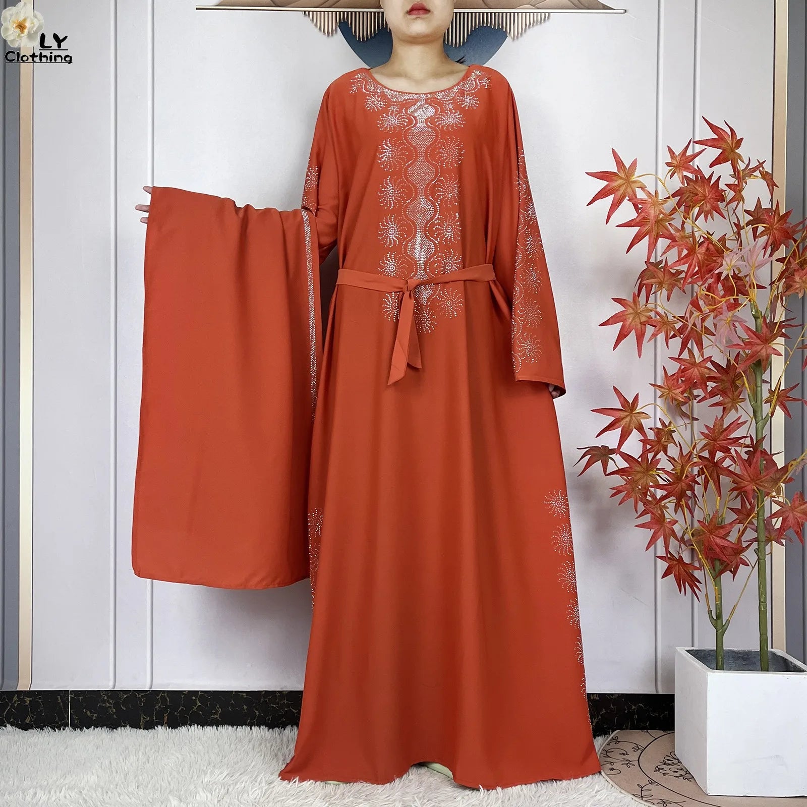 2024 Muslim Sets Women Party Dress Dubai Long Sleeve Diamonds Dashiki Islam Women Chiffon Comfort Fabric African Tradition Abaya