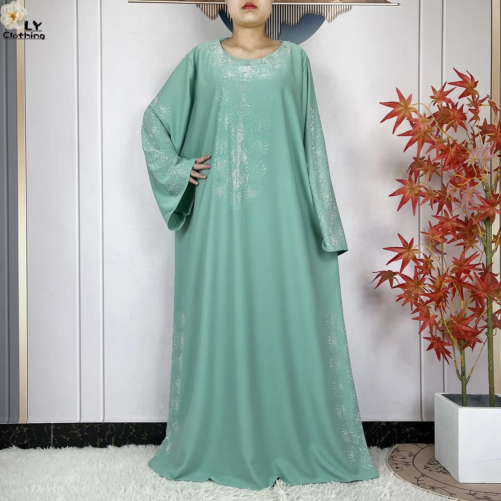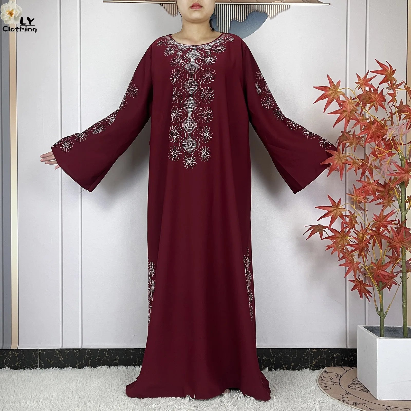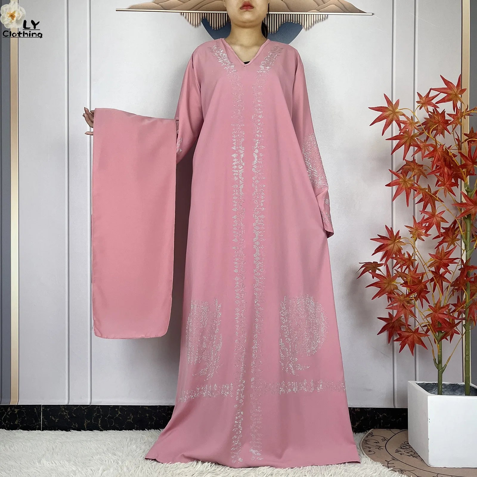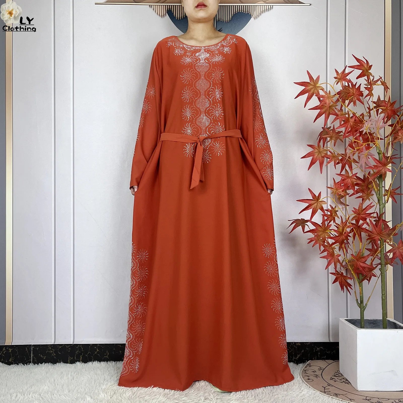 2024 Muslim Sets Women Party Dress Dubai Long Sleeve Diamonds Dashiki Islam Women Chiffon Comfort Fabric African Tradition Abaya