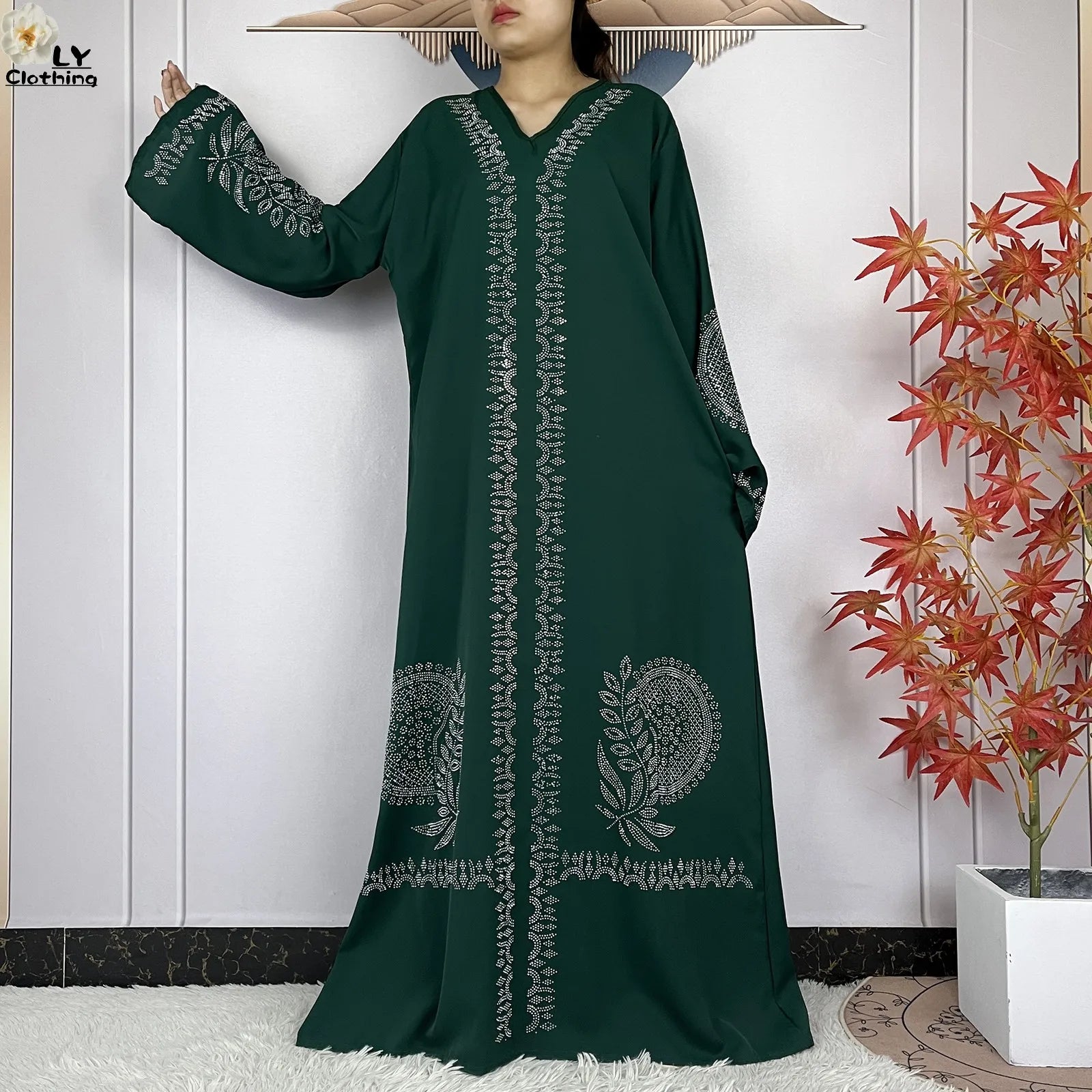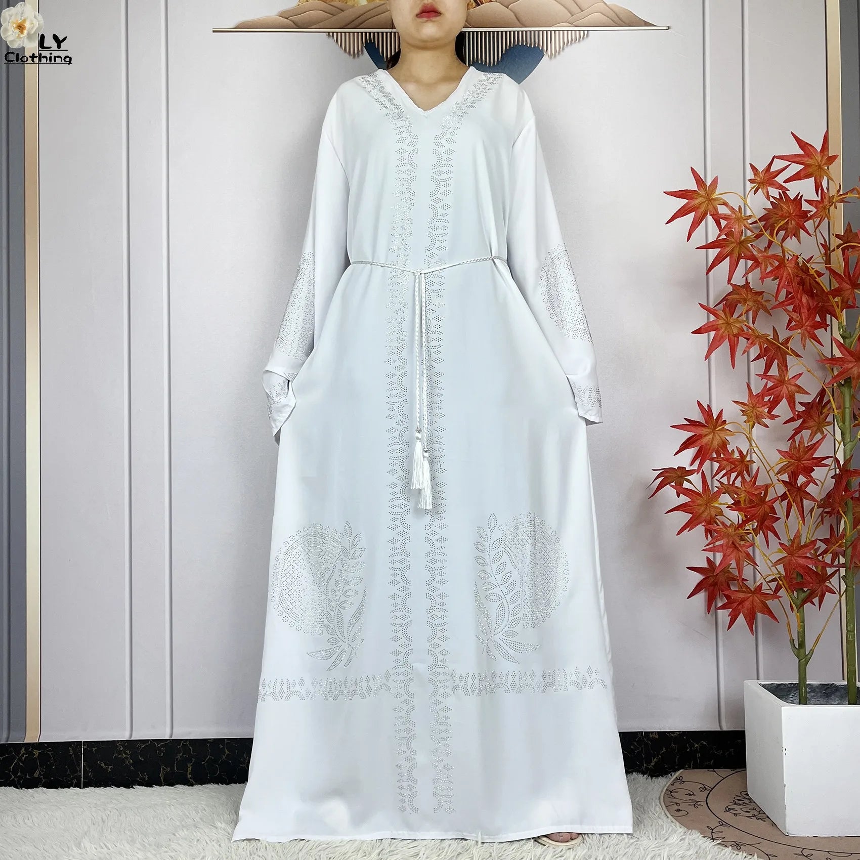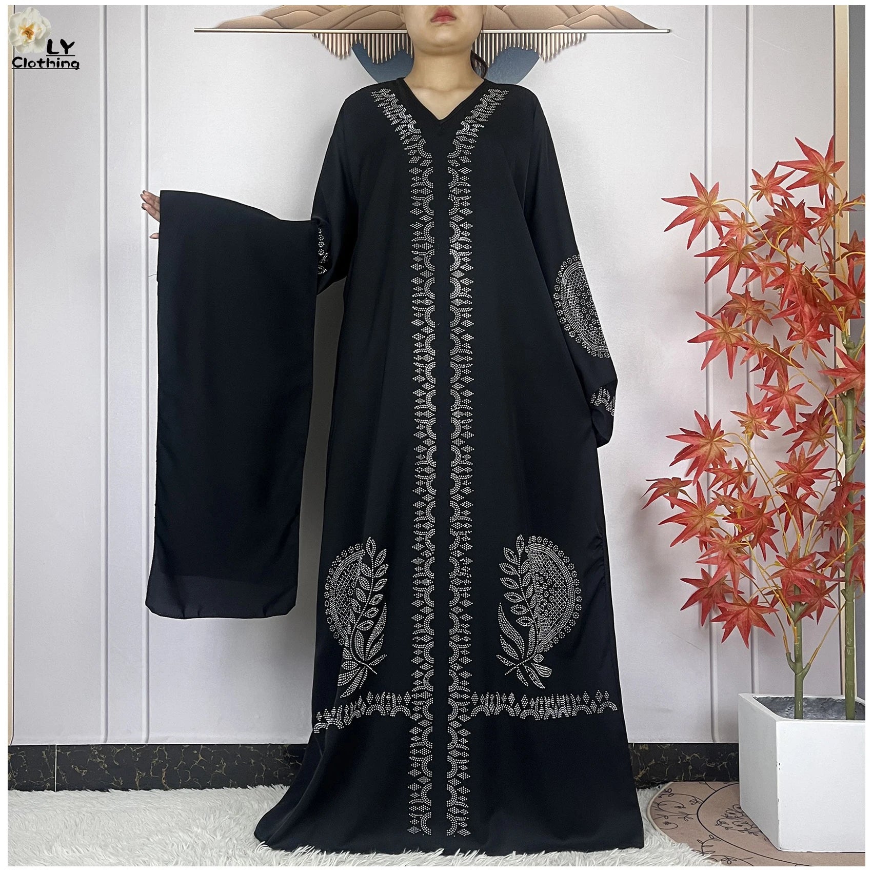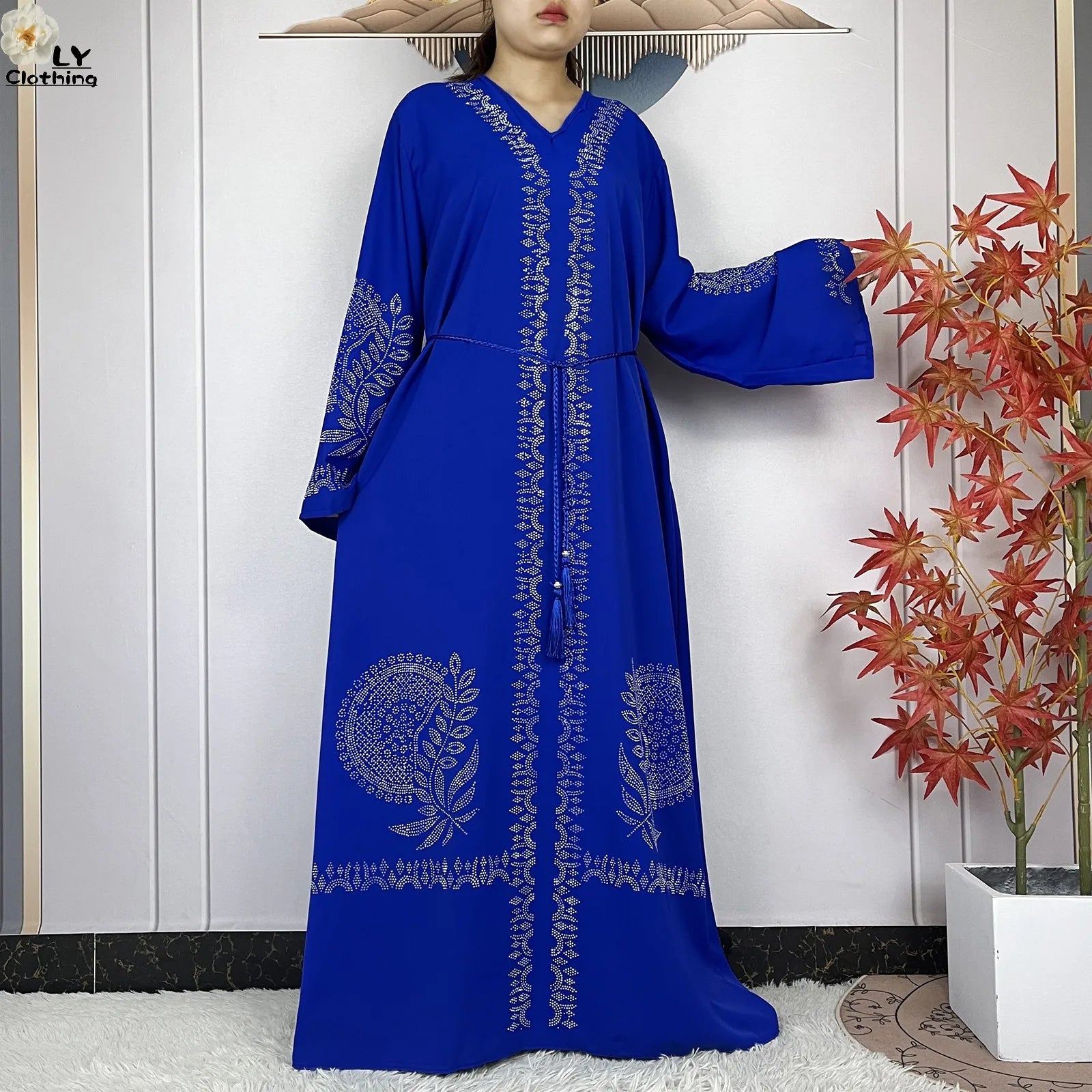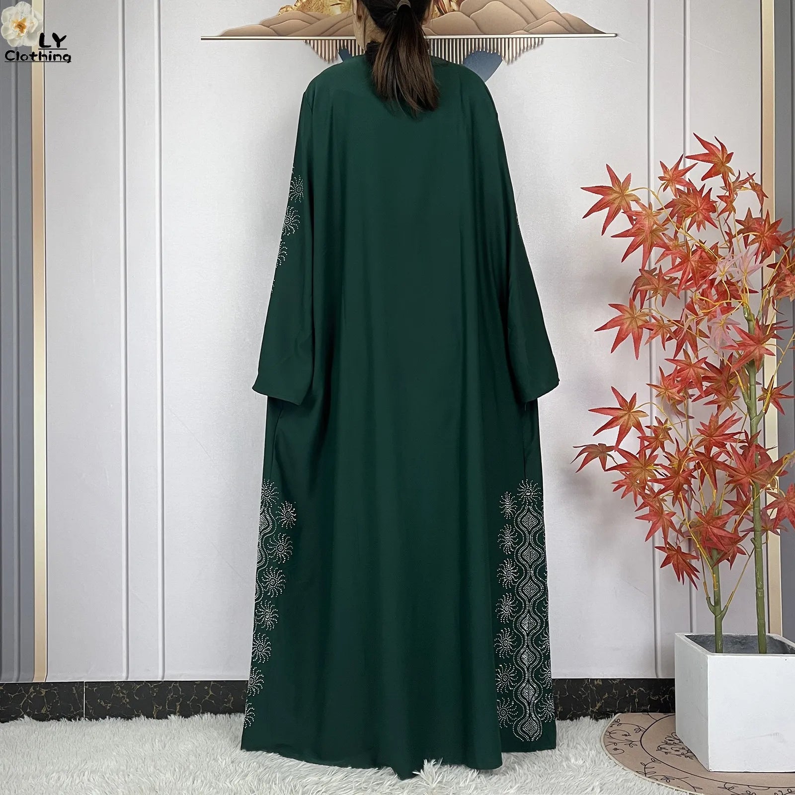 2024 Muslim Sets Women Party Dress Dubai Long Sleeve Diamonds Dashiki Islam Women Chiffon Comfort Fabric African Tradition Abaya