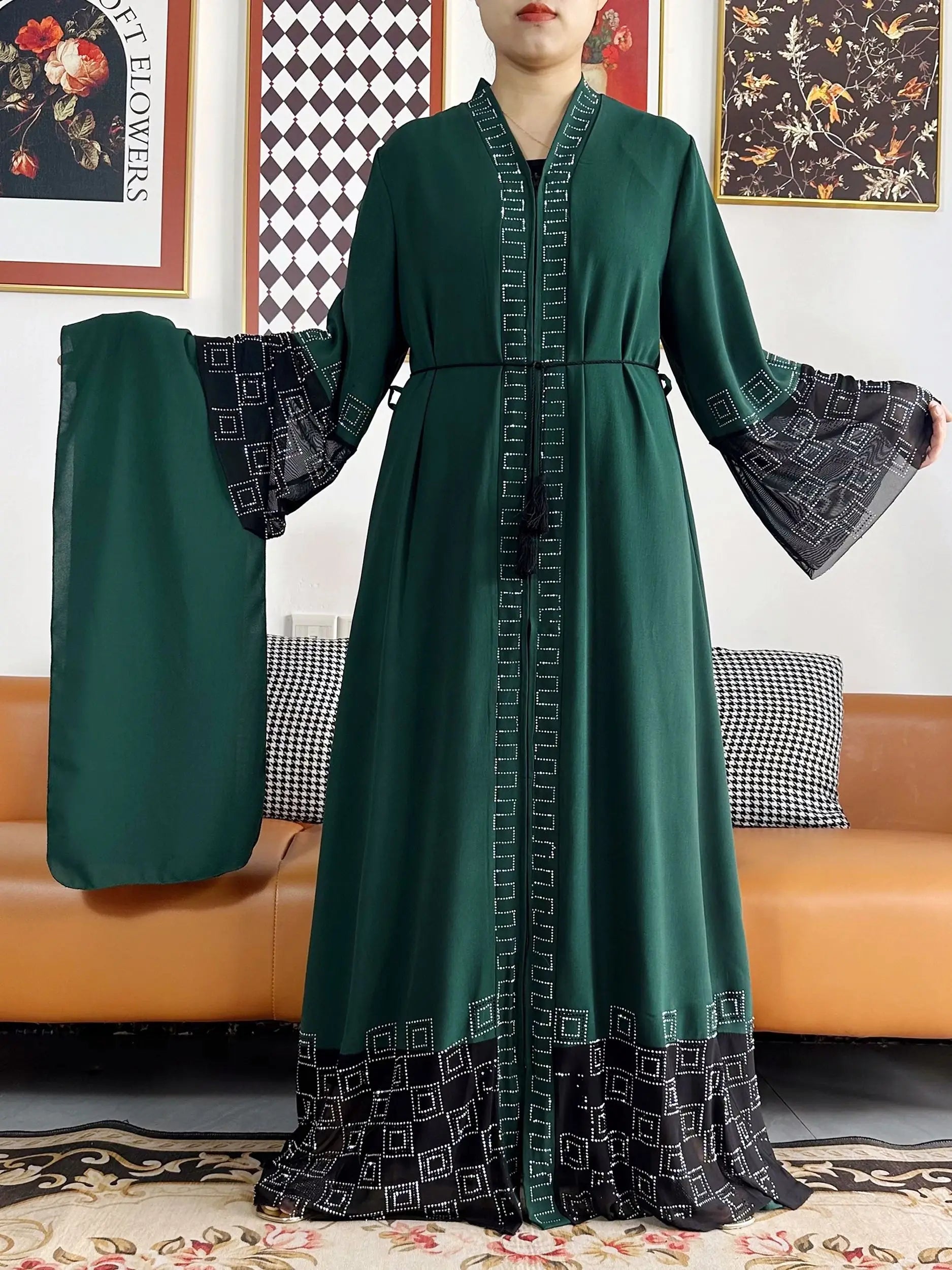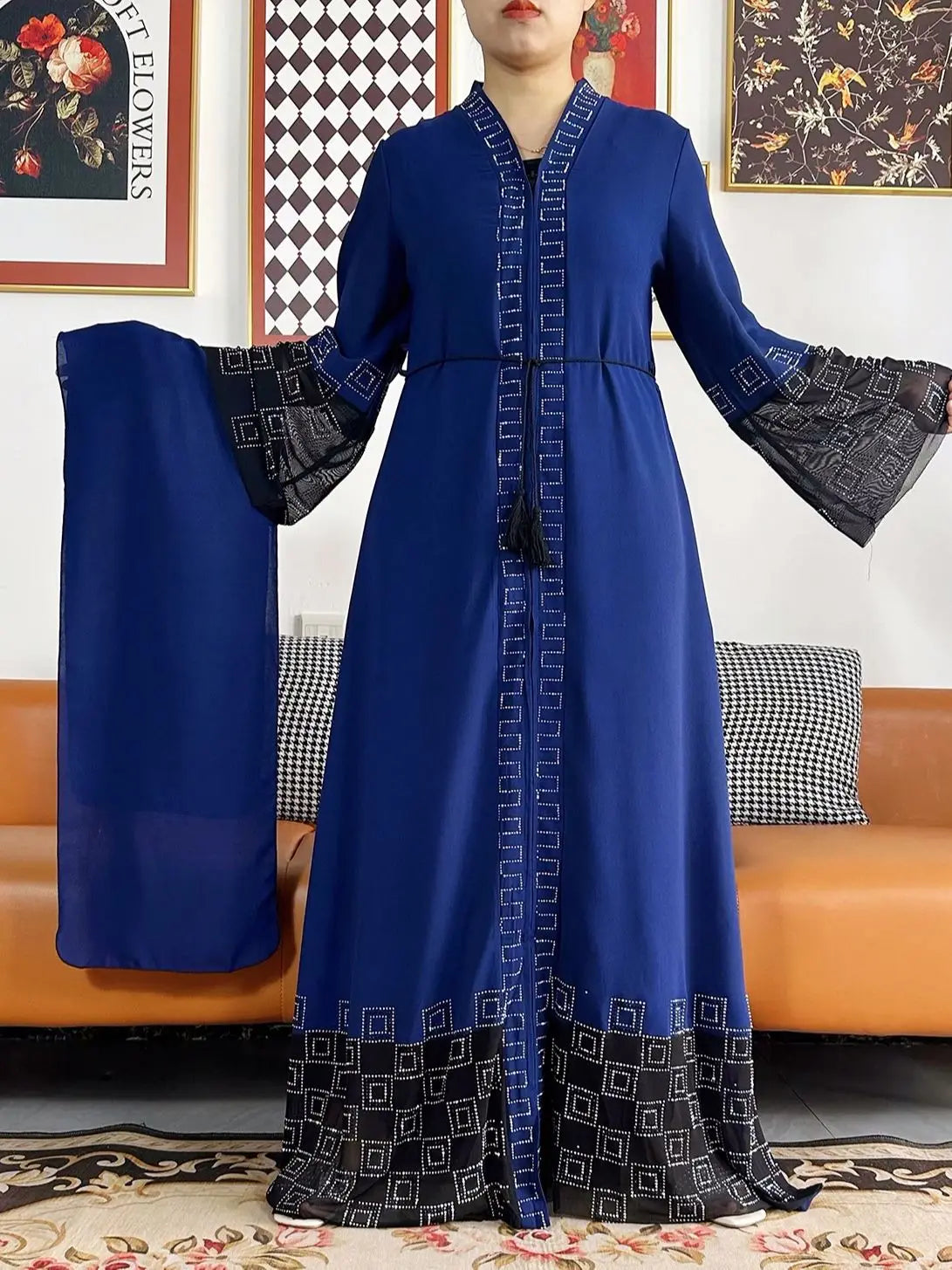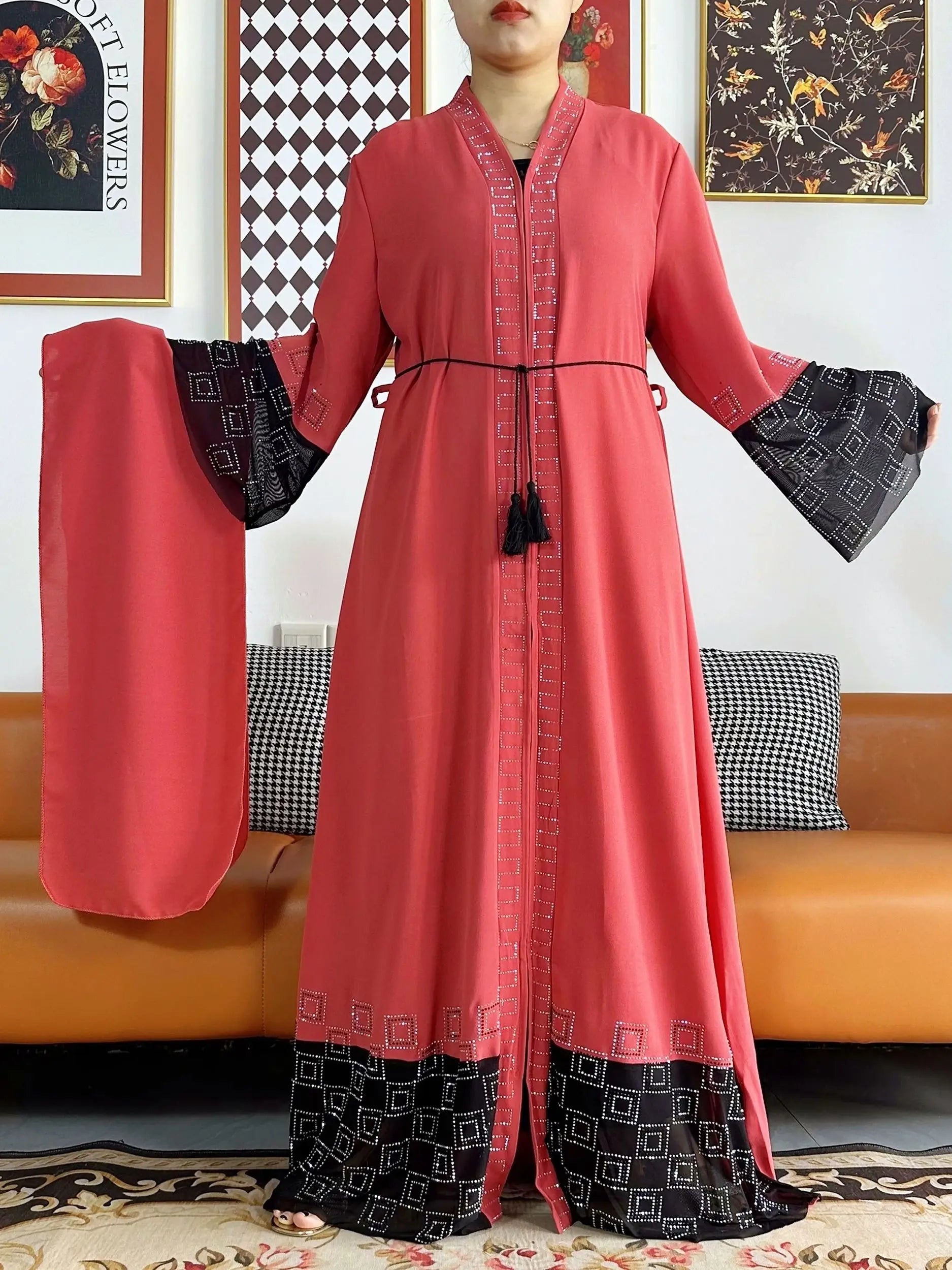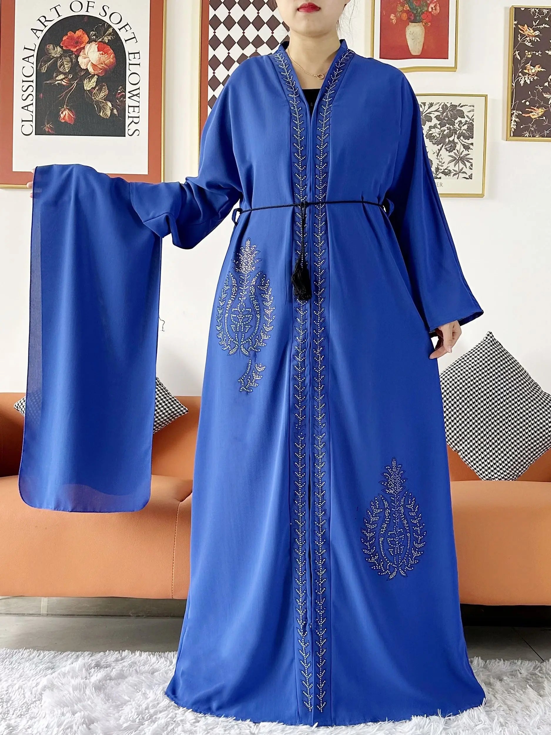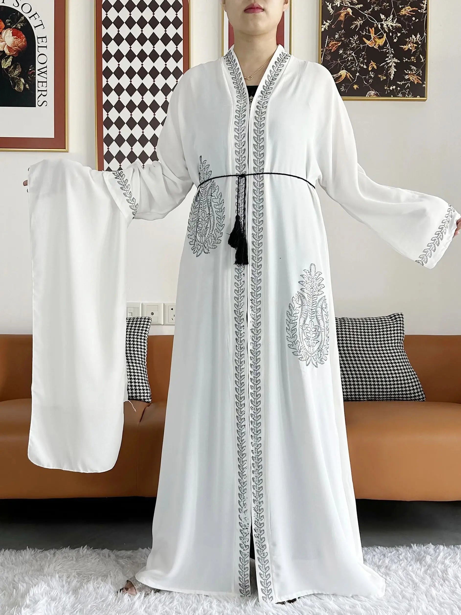 2024 Summer Women Elegant Dresses Dubai Party Outfits Long Sleeve Chiffon Dashiki Muslim Women Robe Open African Abaya Clothing