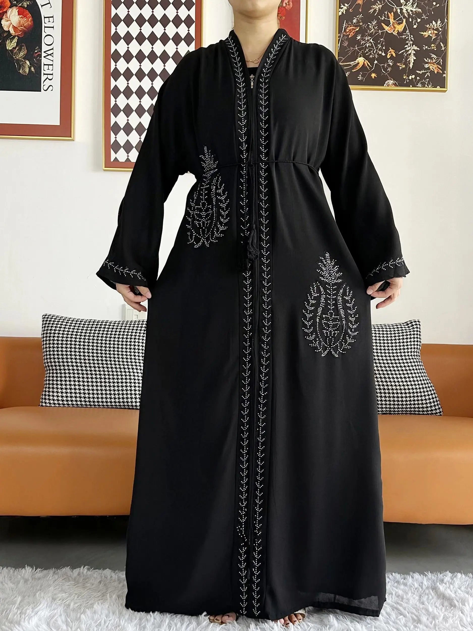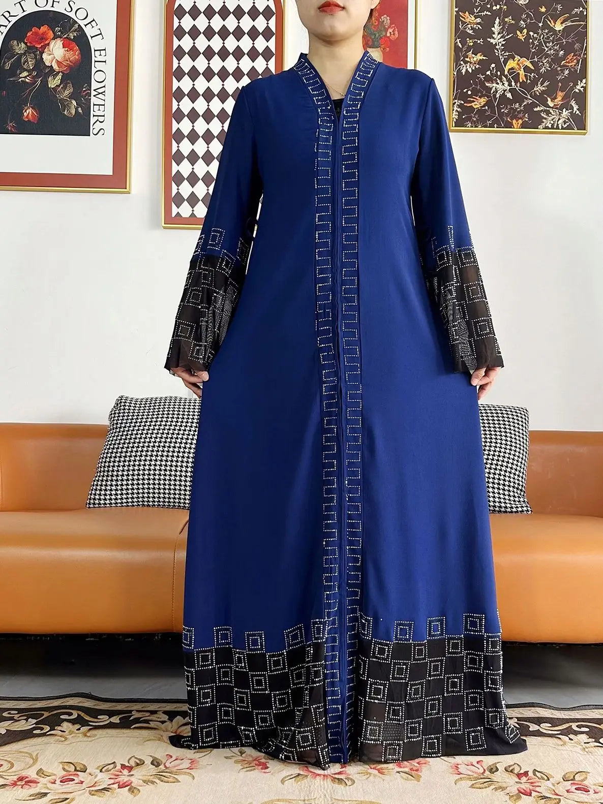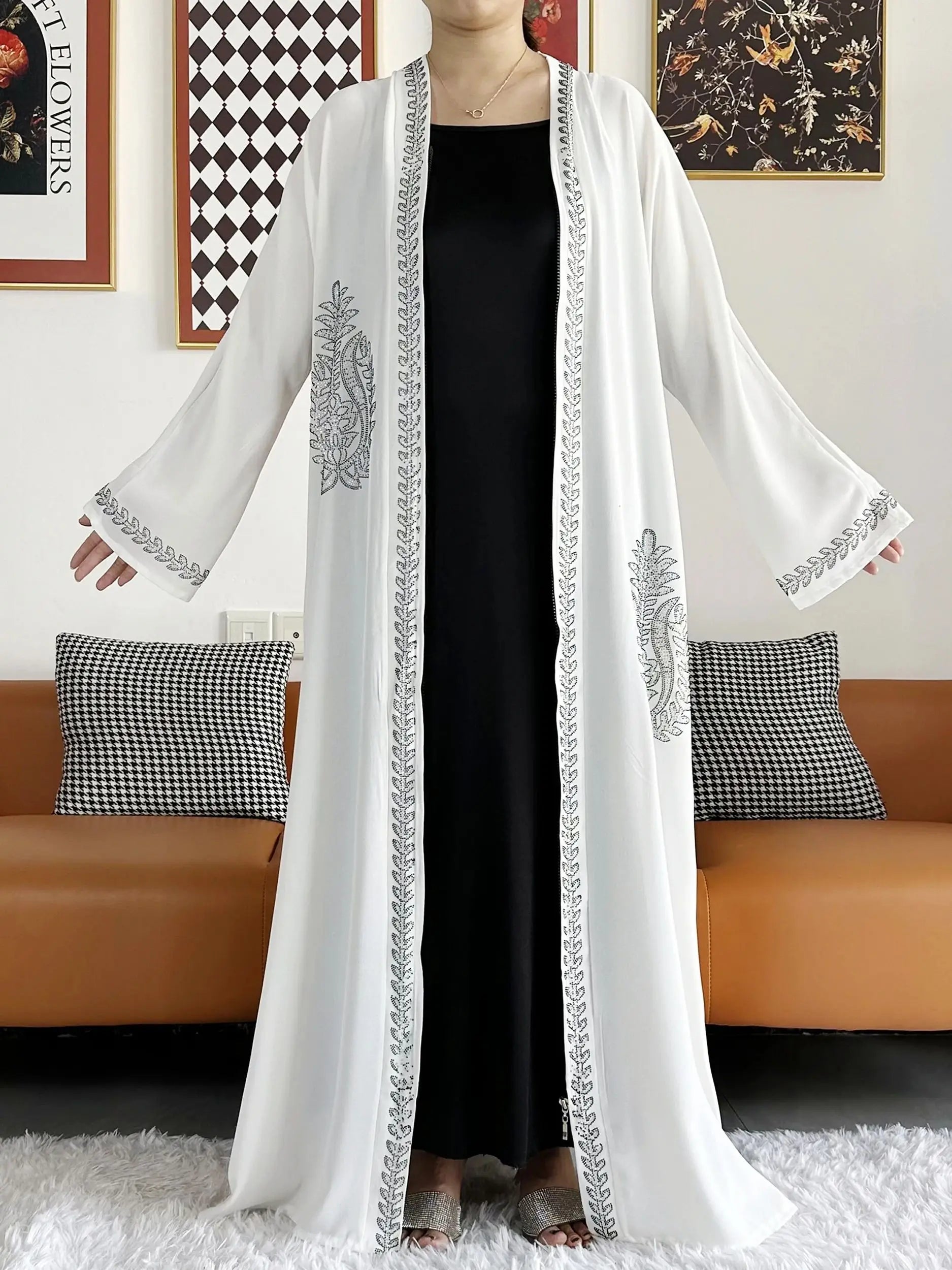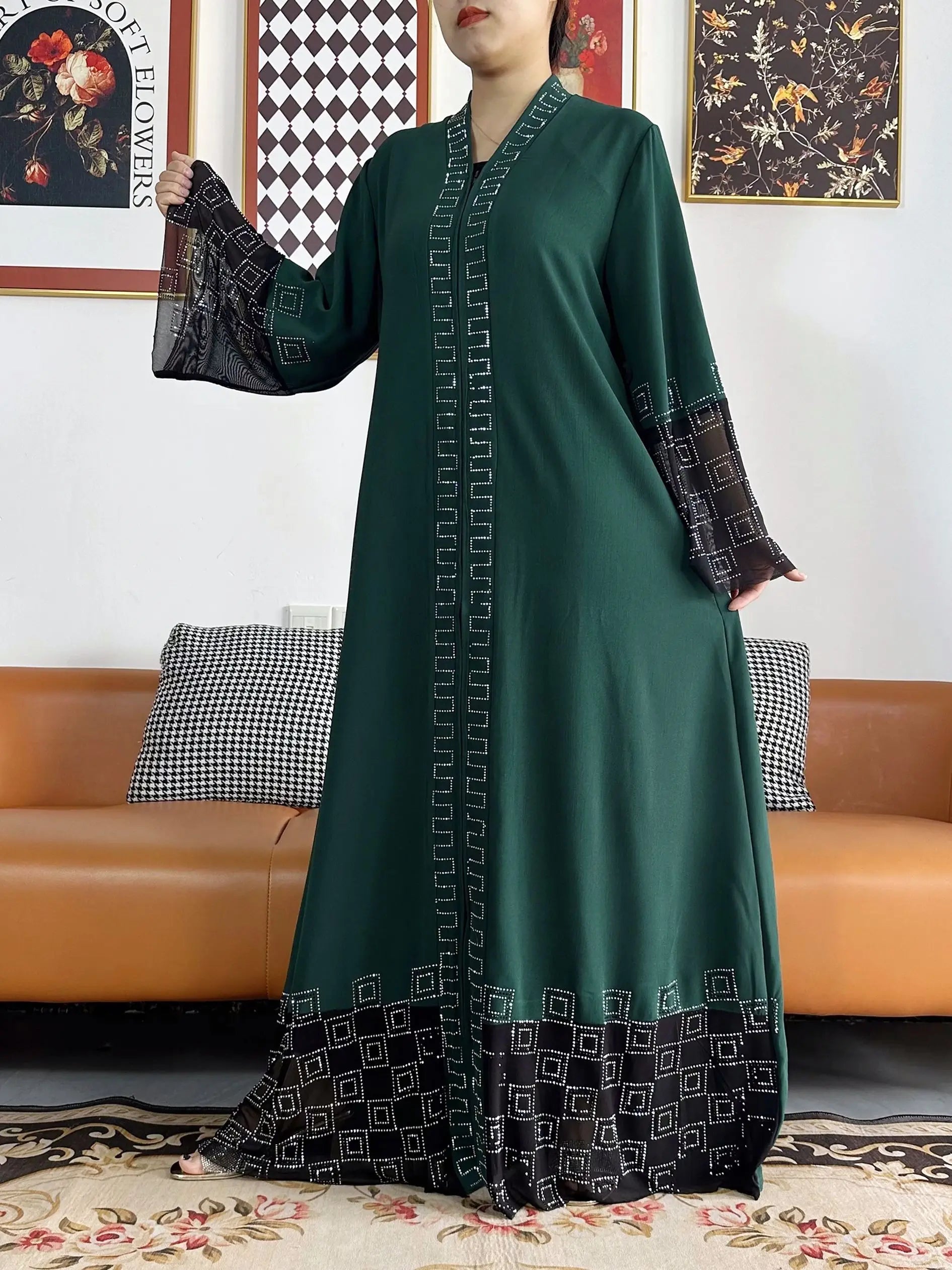 2024 Summer Women Elegant Dresses Dubai Party Outfits Long Sleeve Chiffon Dashiki Muslim Women Robe Open African Abaya Clothing