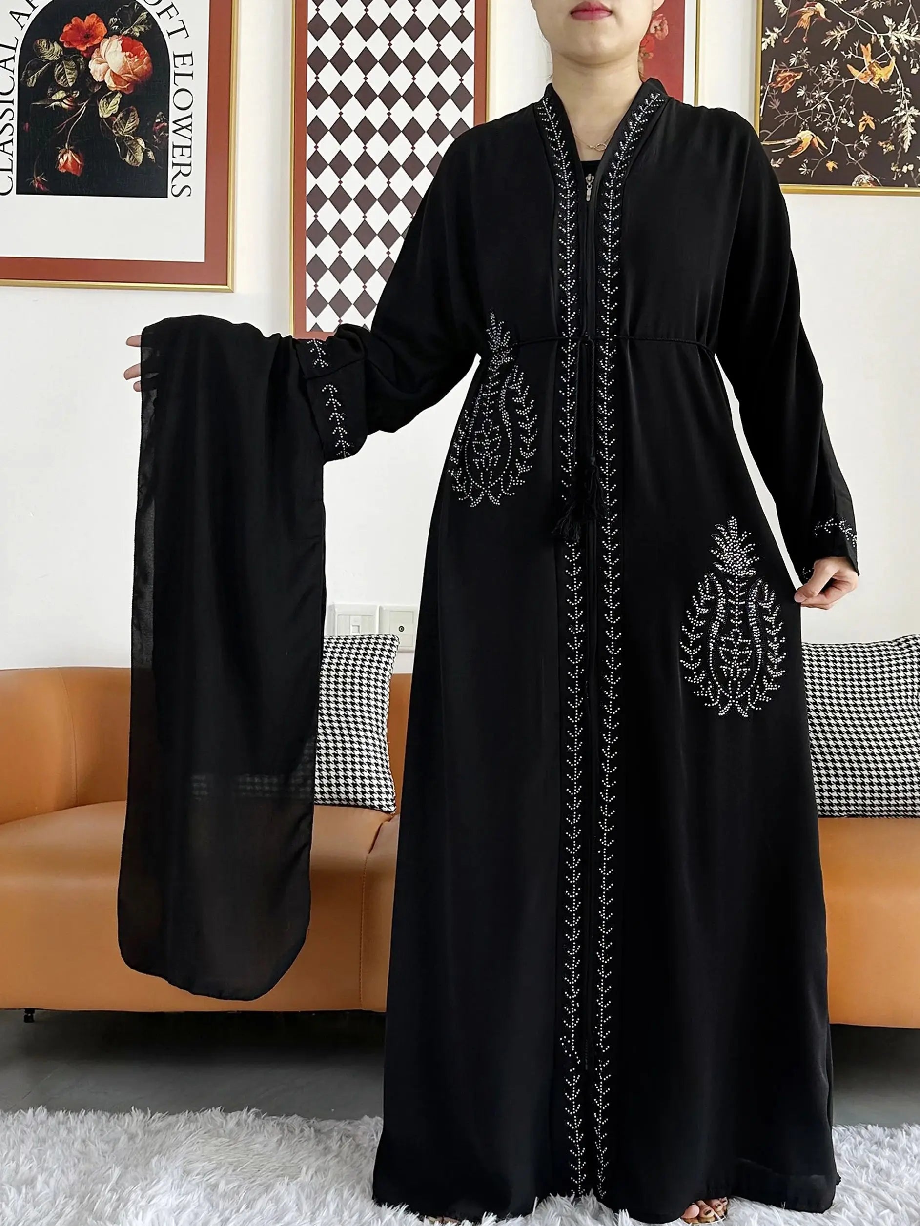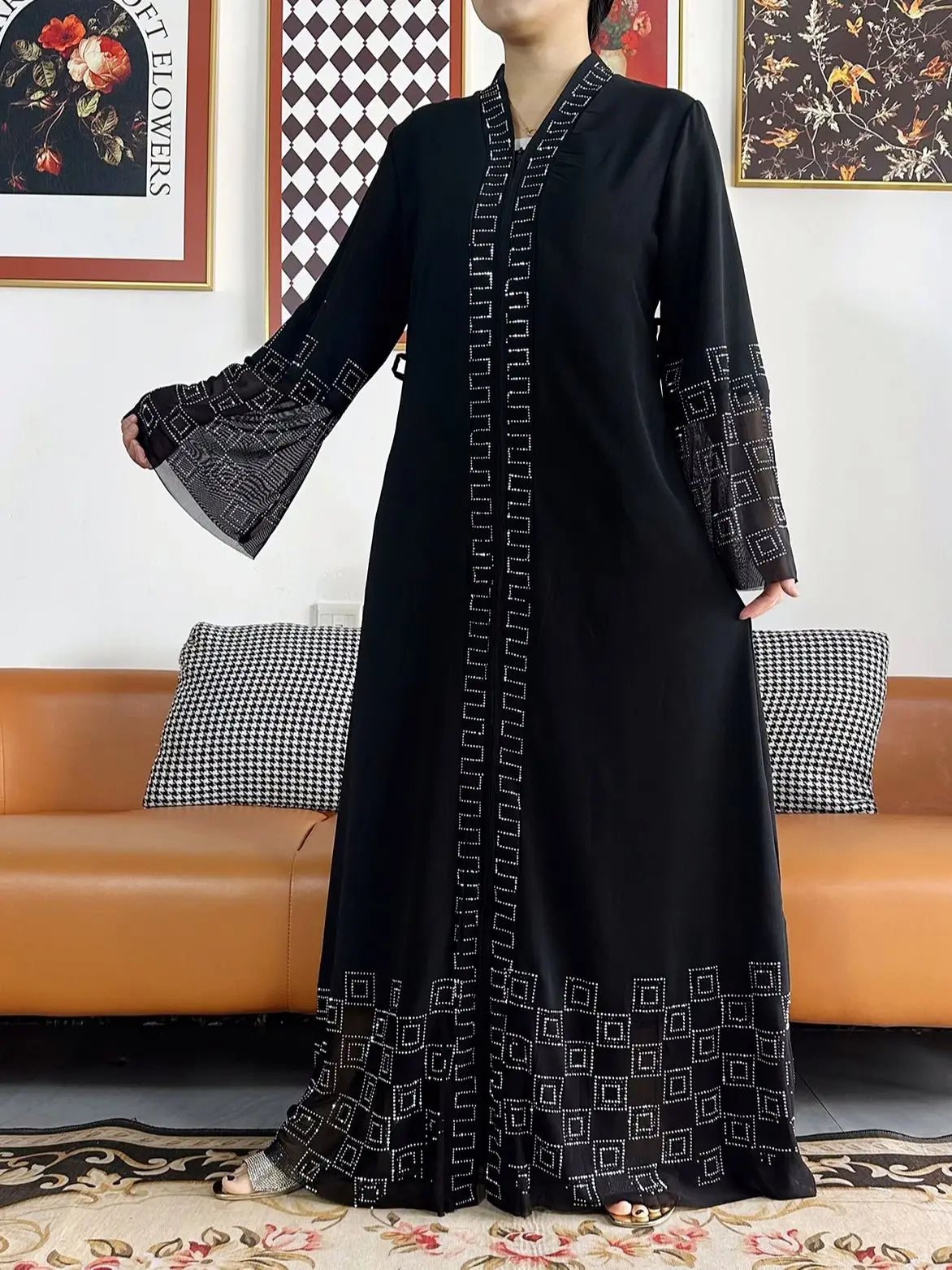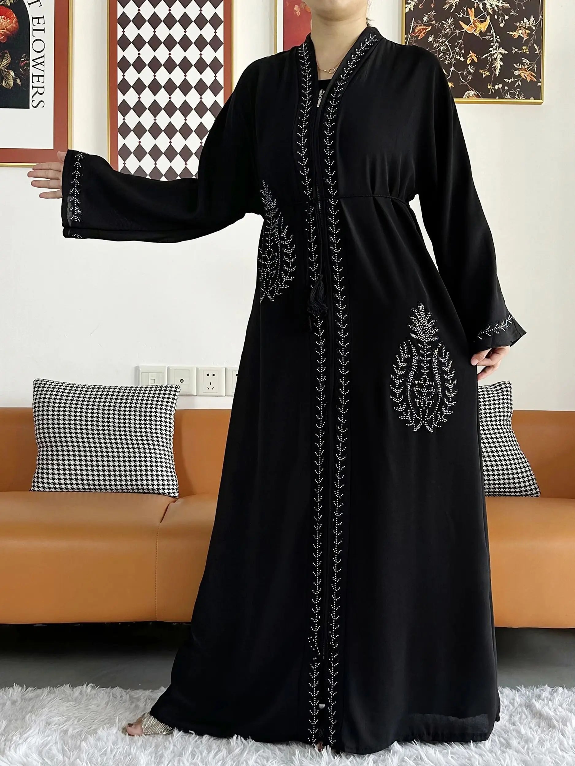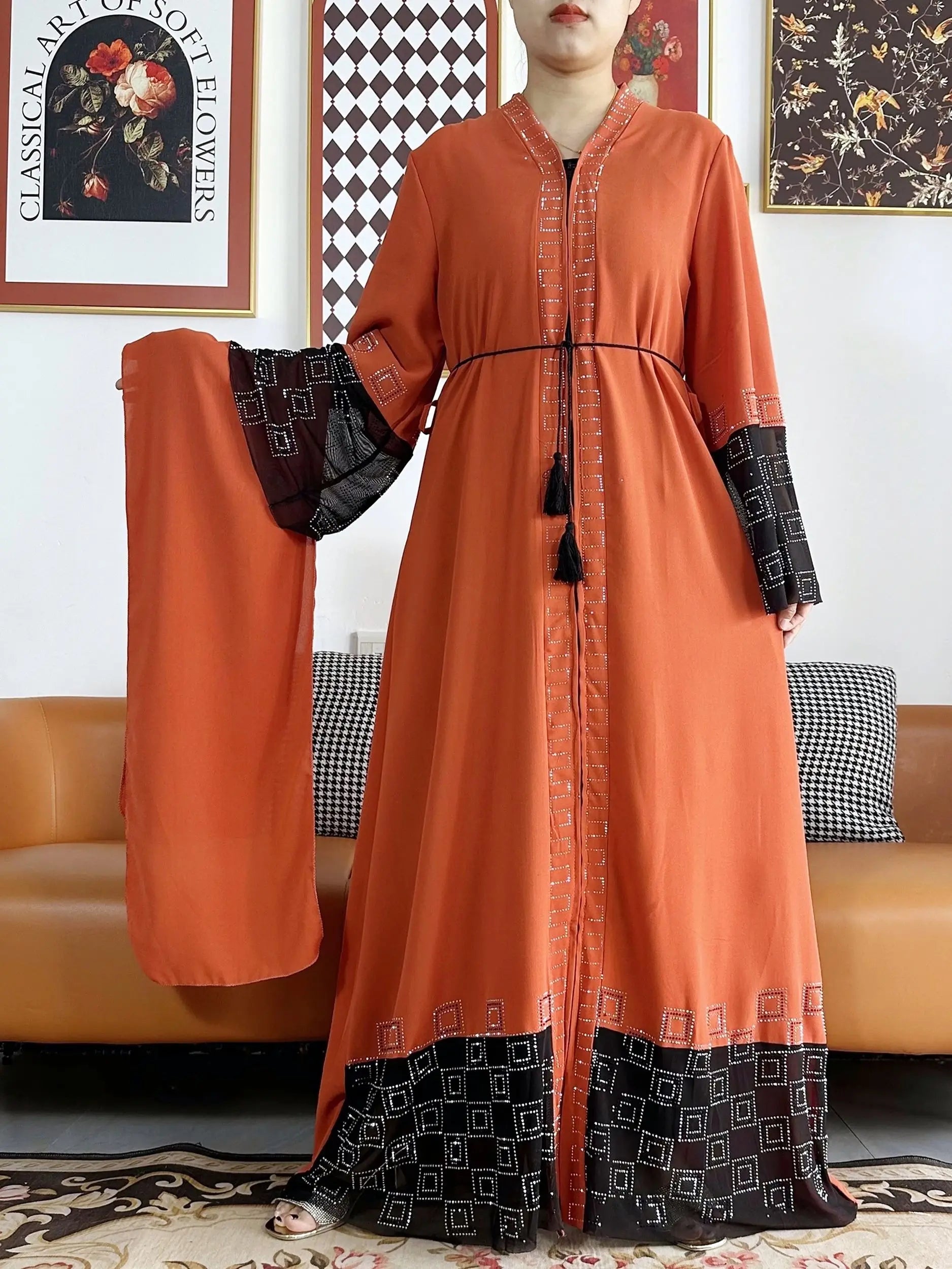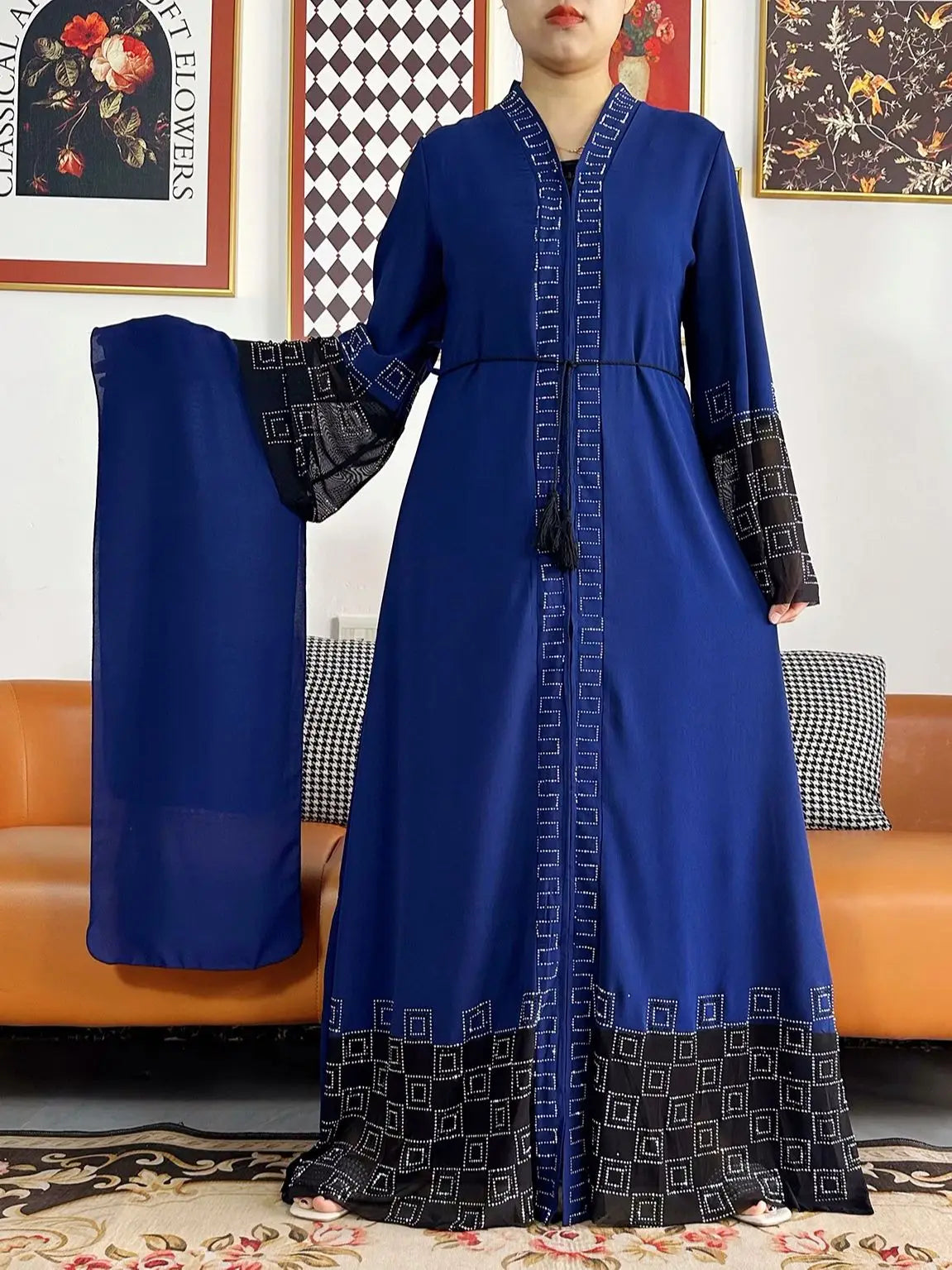 2024 Summer Women Elegant Dresses Dubai Party Outfits Long Sleeve Chiffon Dashiki Muslim Women Robe Open African Abaya Clothing