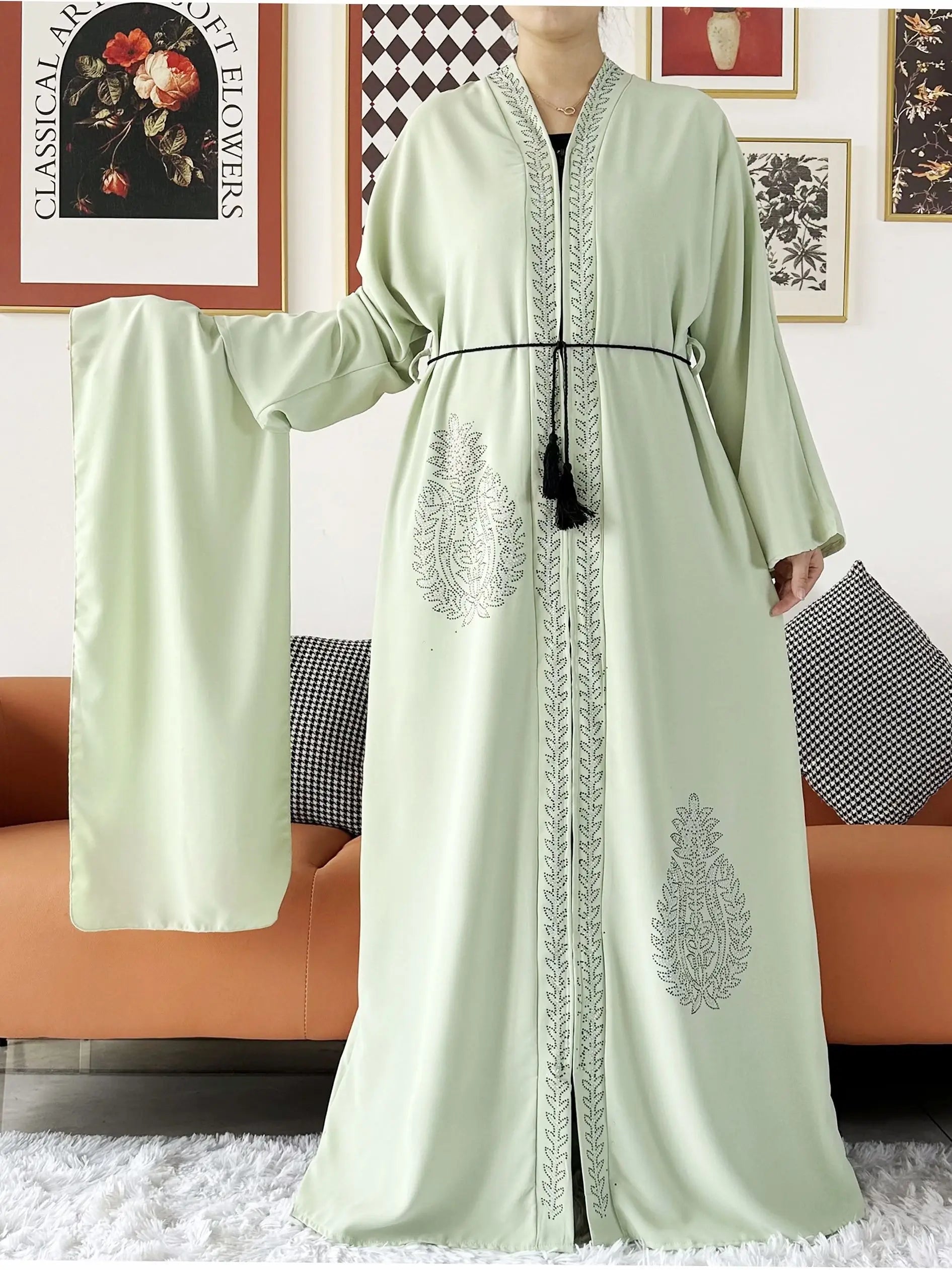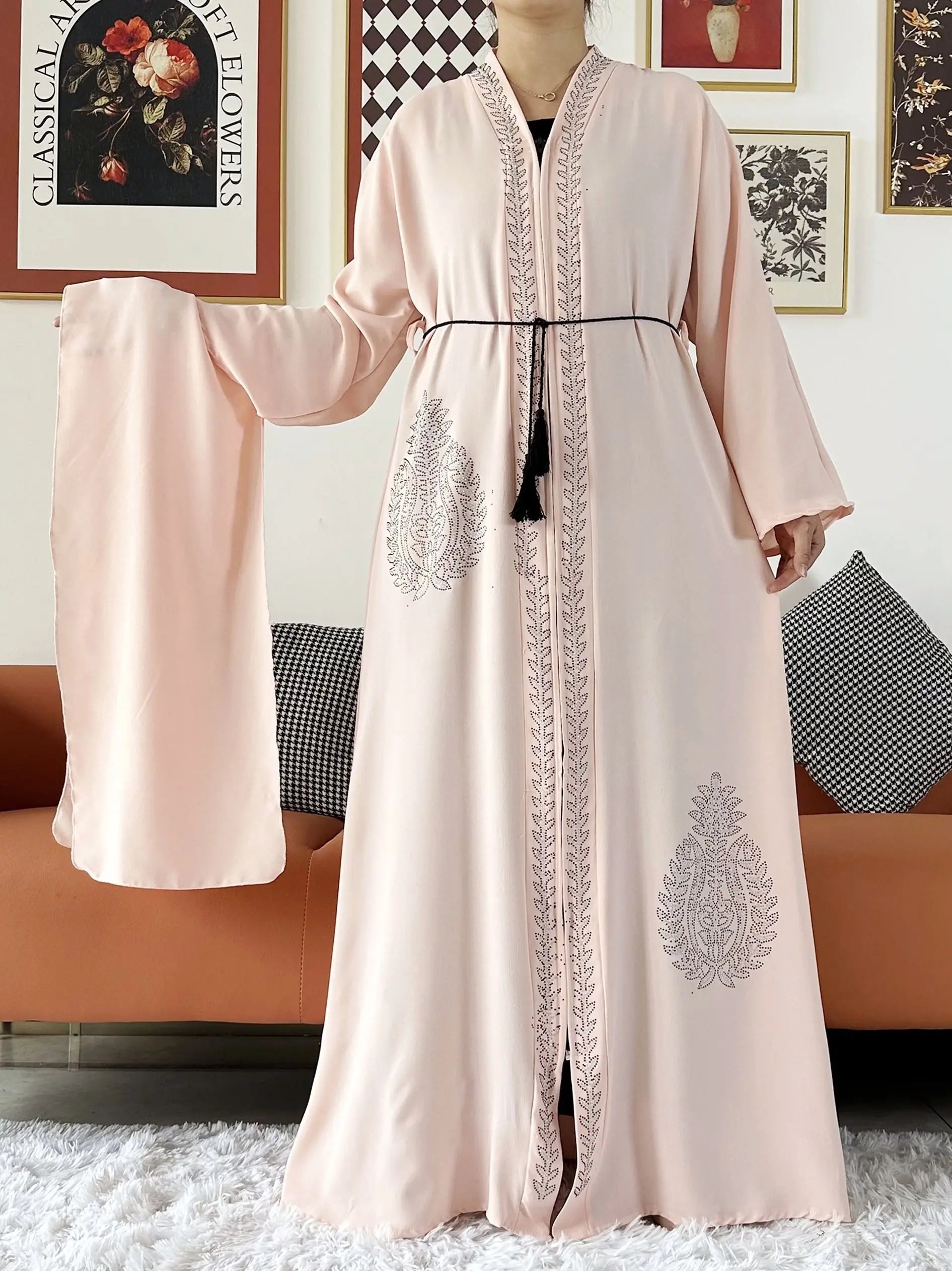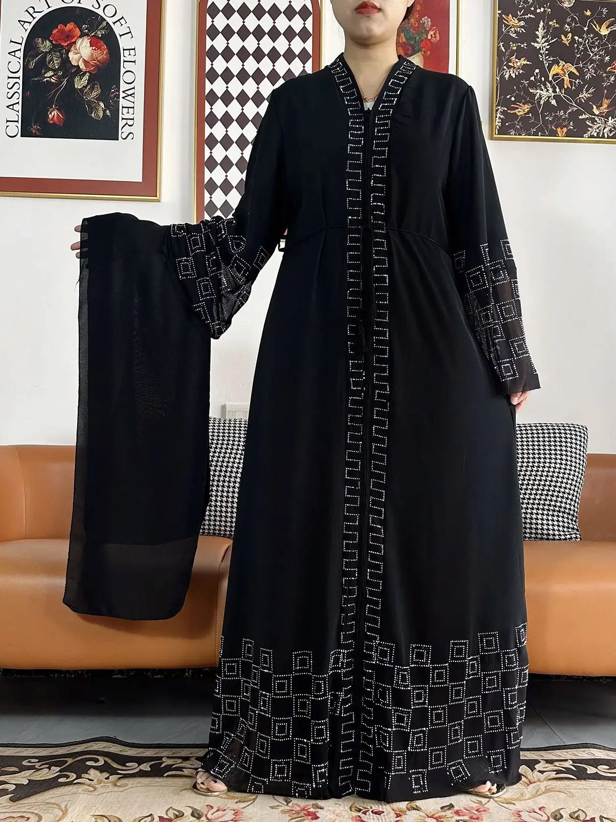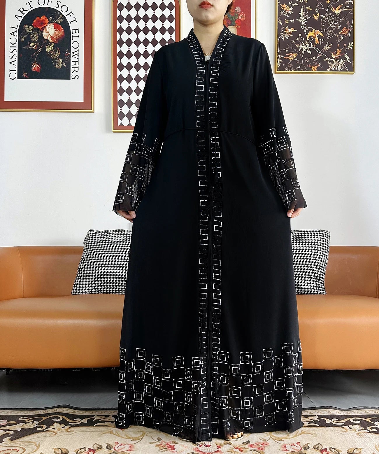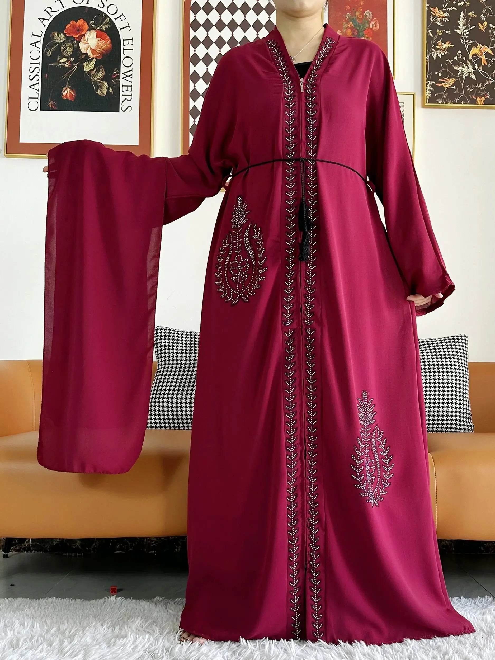 2024 Summer Women Elegant Dresses Dubai Party Outfits Long Sleeve Chiffon Dashiki Muslim Women Robe Open African Abaya Clothing