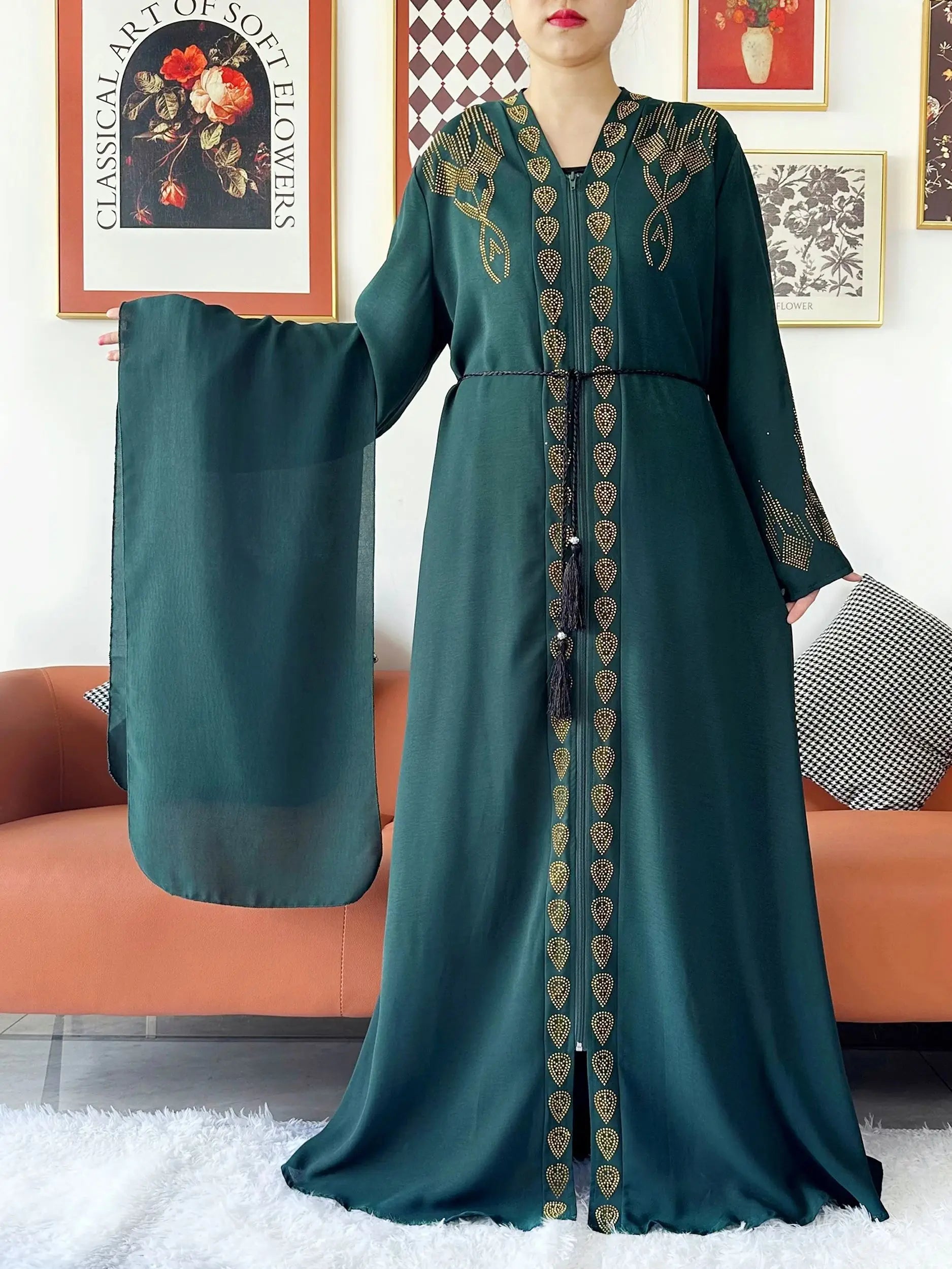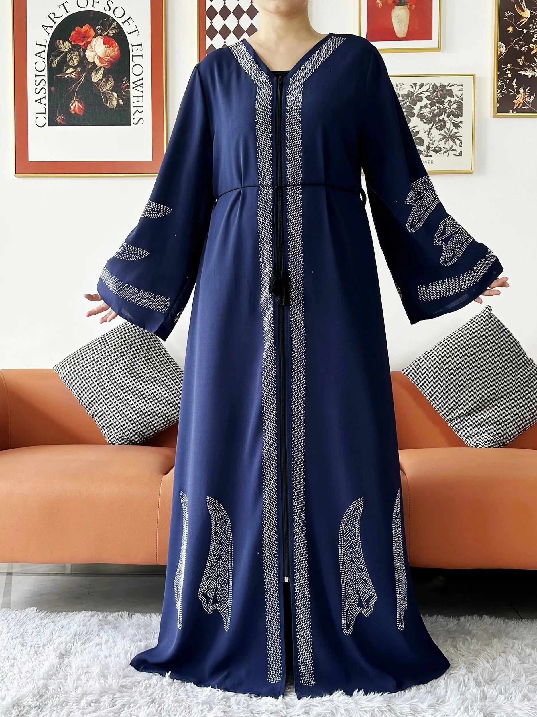 2024 Women Elegant Party Dress Chiffon Open Abaya Muslim Women Dress Islamic Clothing Cardigan Abaya Women Muslim Dress