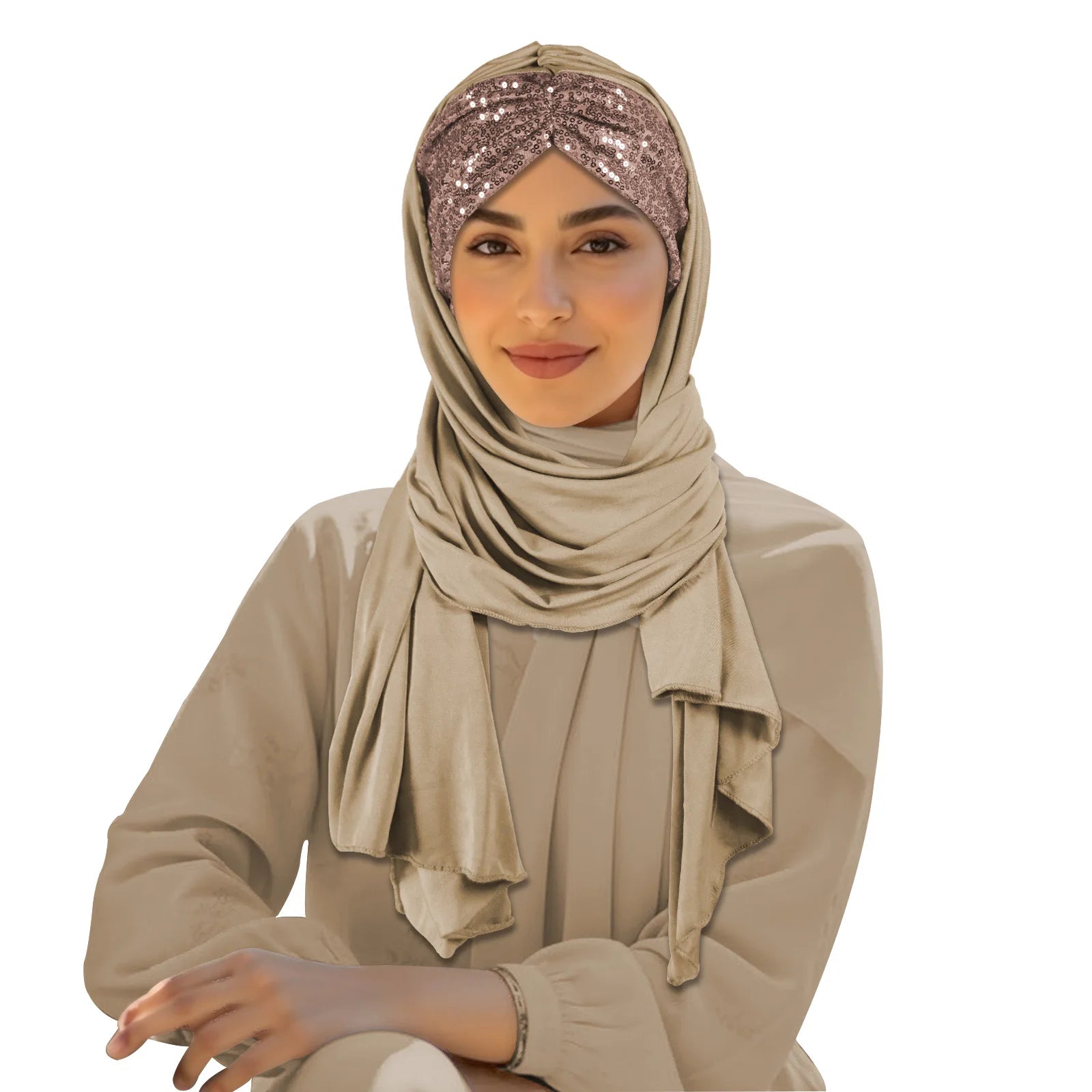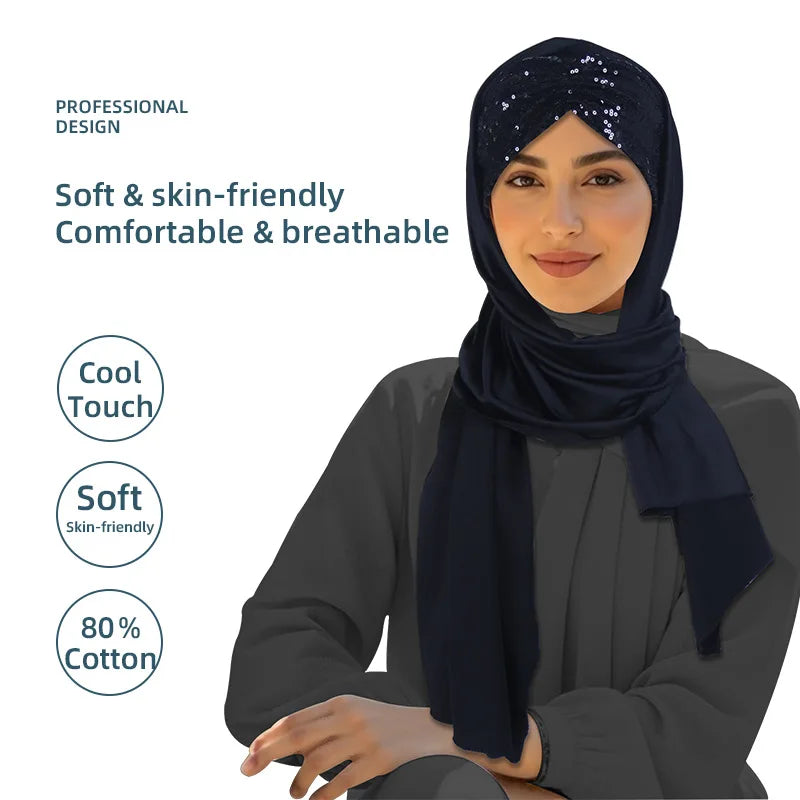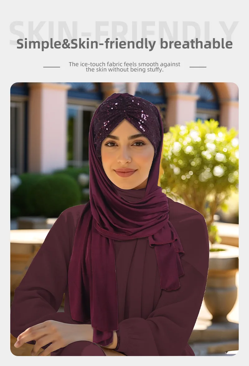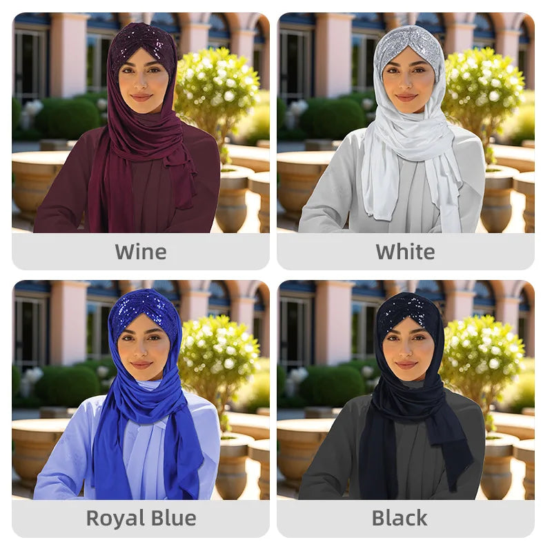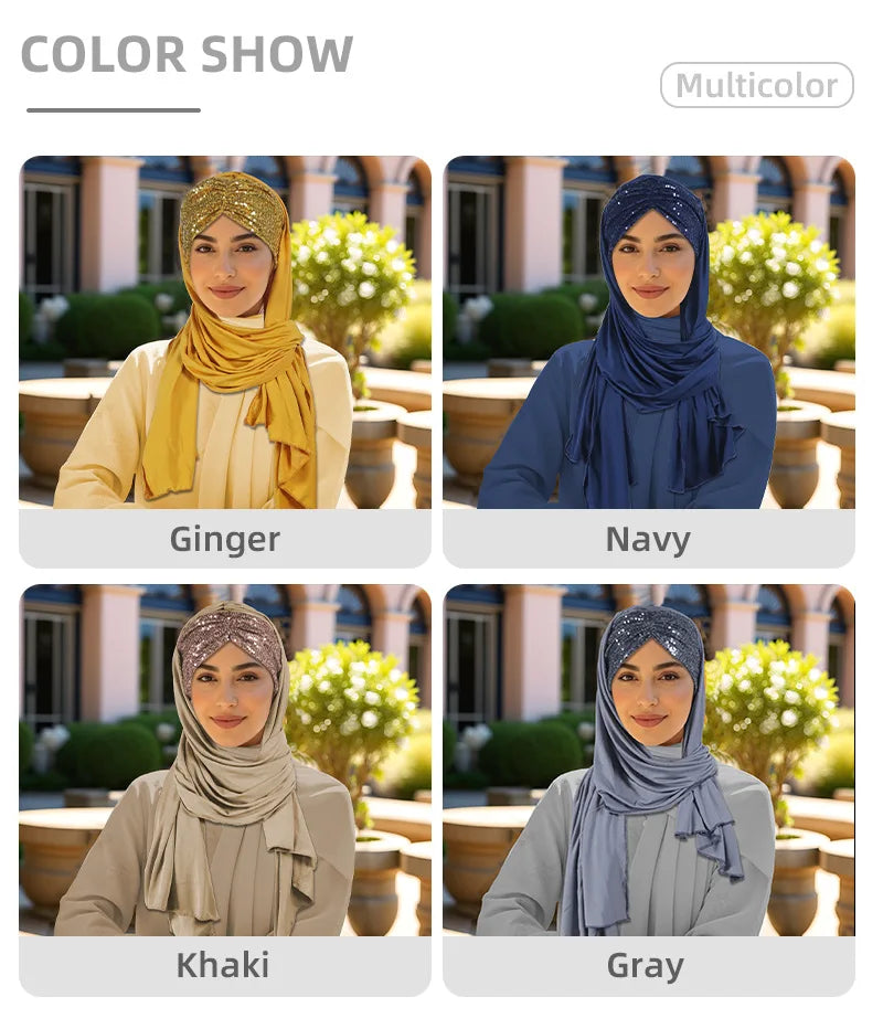2025 Muslim Women Instant Scarf Sequin Hijab Turban Pull On Headscarf Ramadan Islam Pray Hijabs Niqab Nikab Pull On Head Wrap