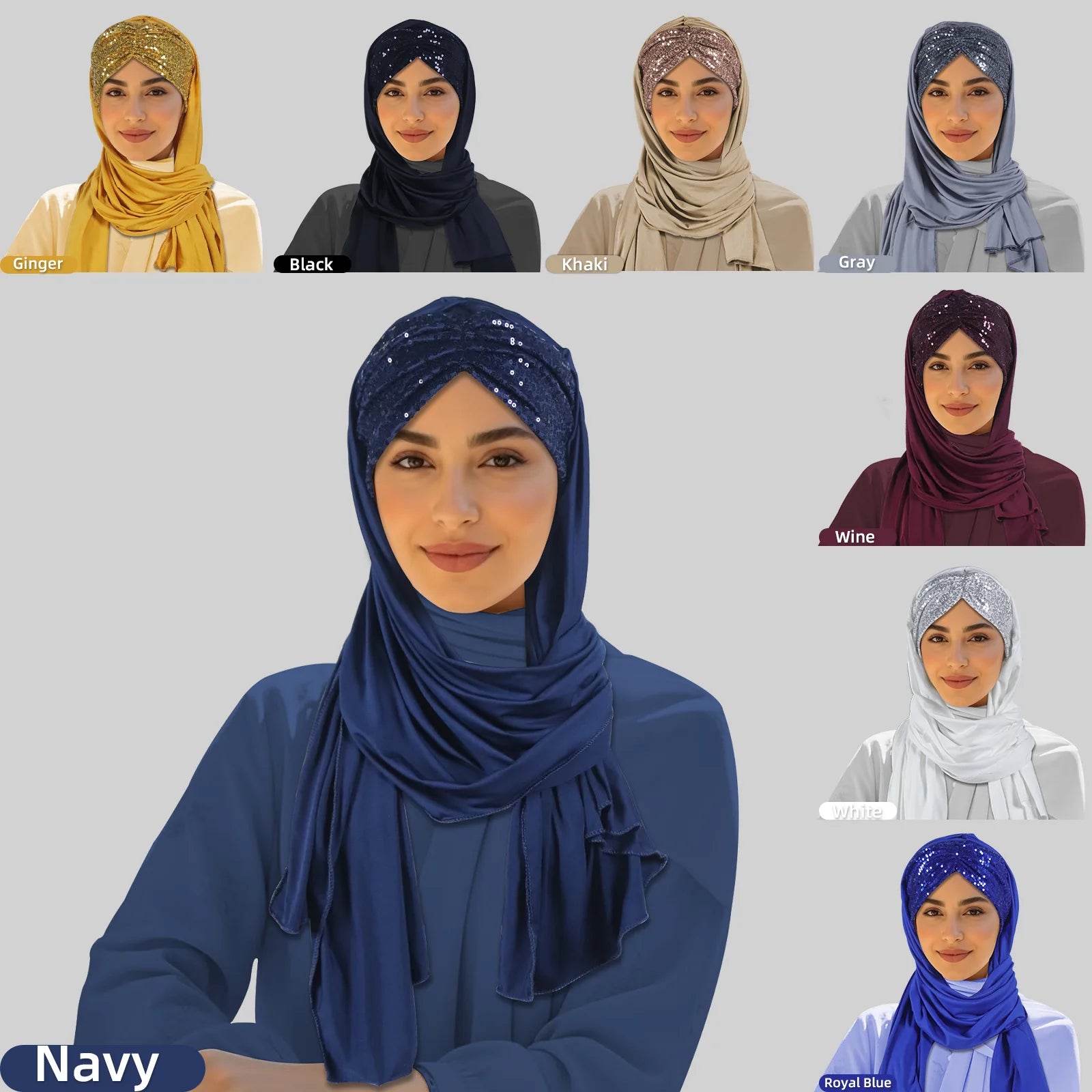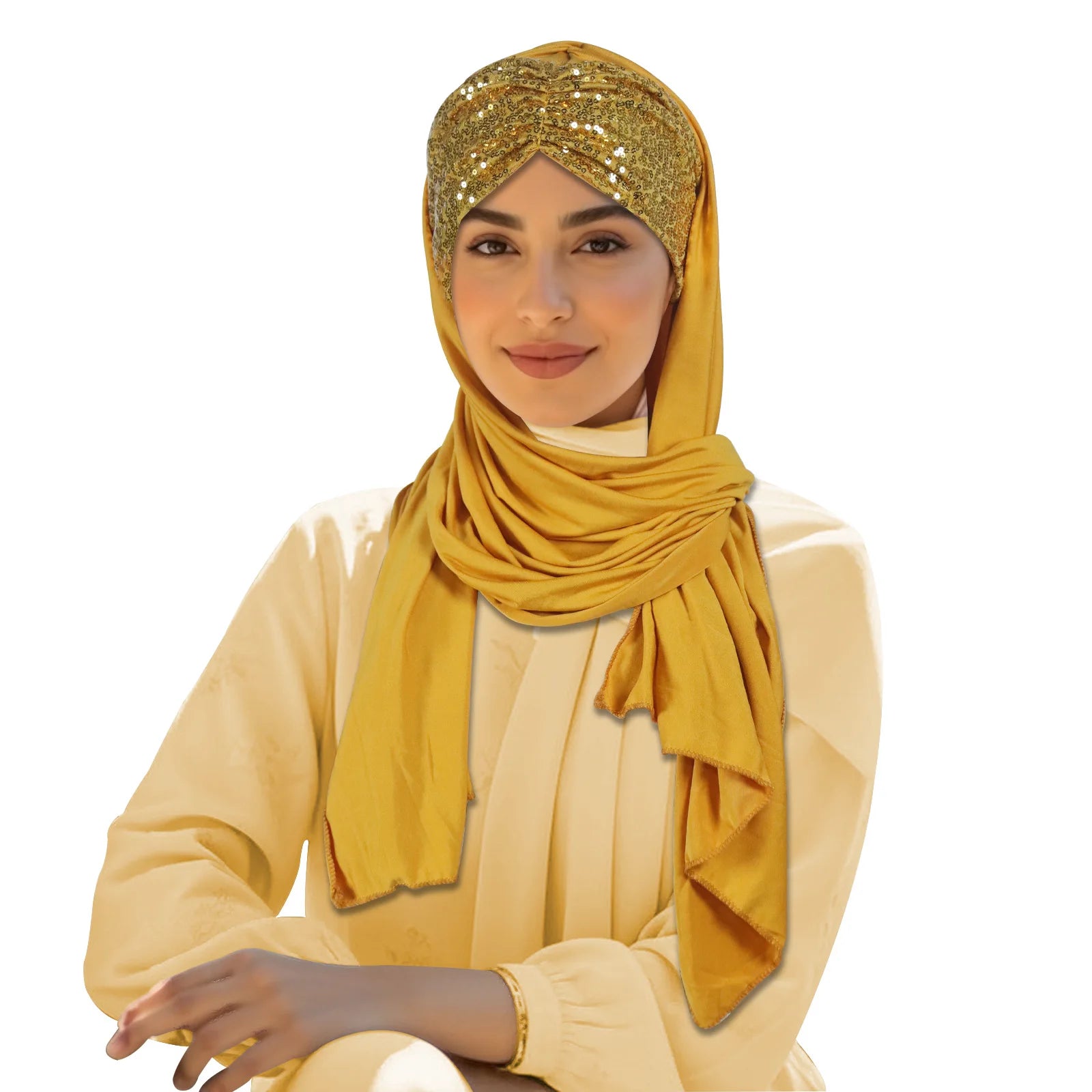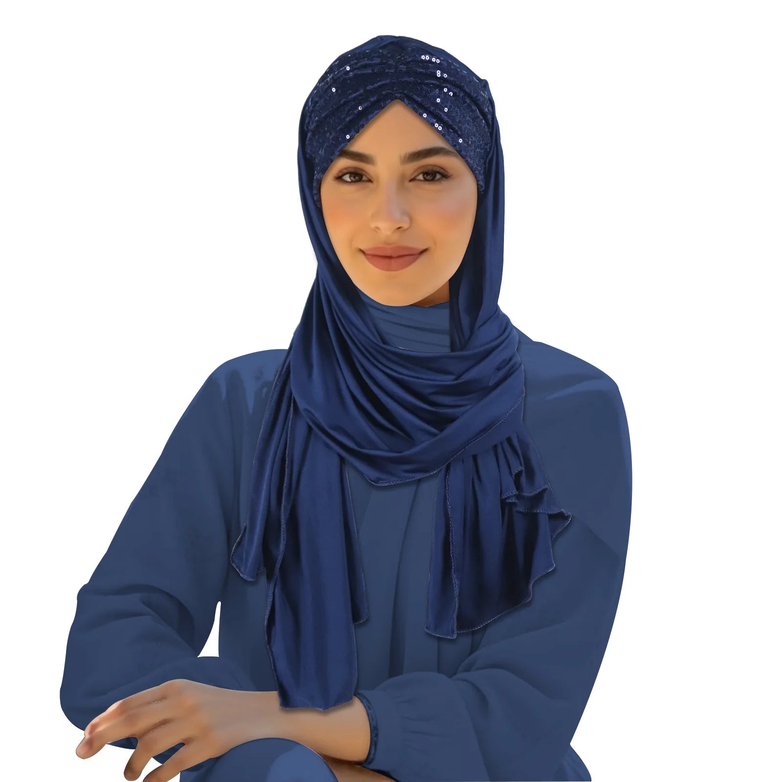 2025 Muslim Women Instant Scarf Sequin Hijab Turban Pull On Headscarf Ramadan Islam Pray Hijabs Niqab Nikab Pull On Head Wrap