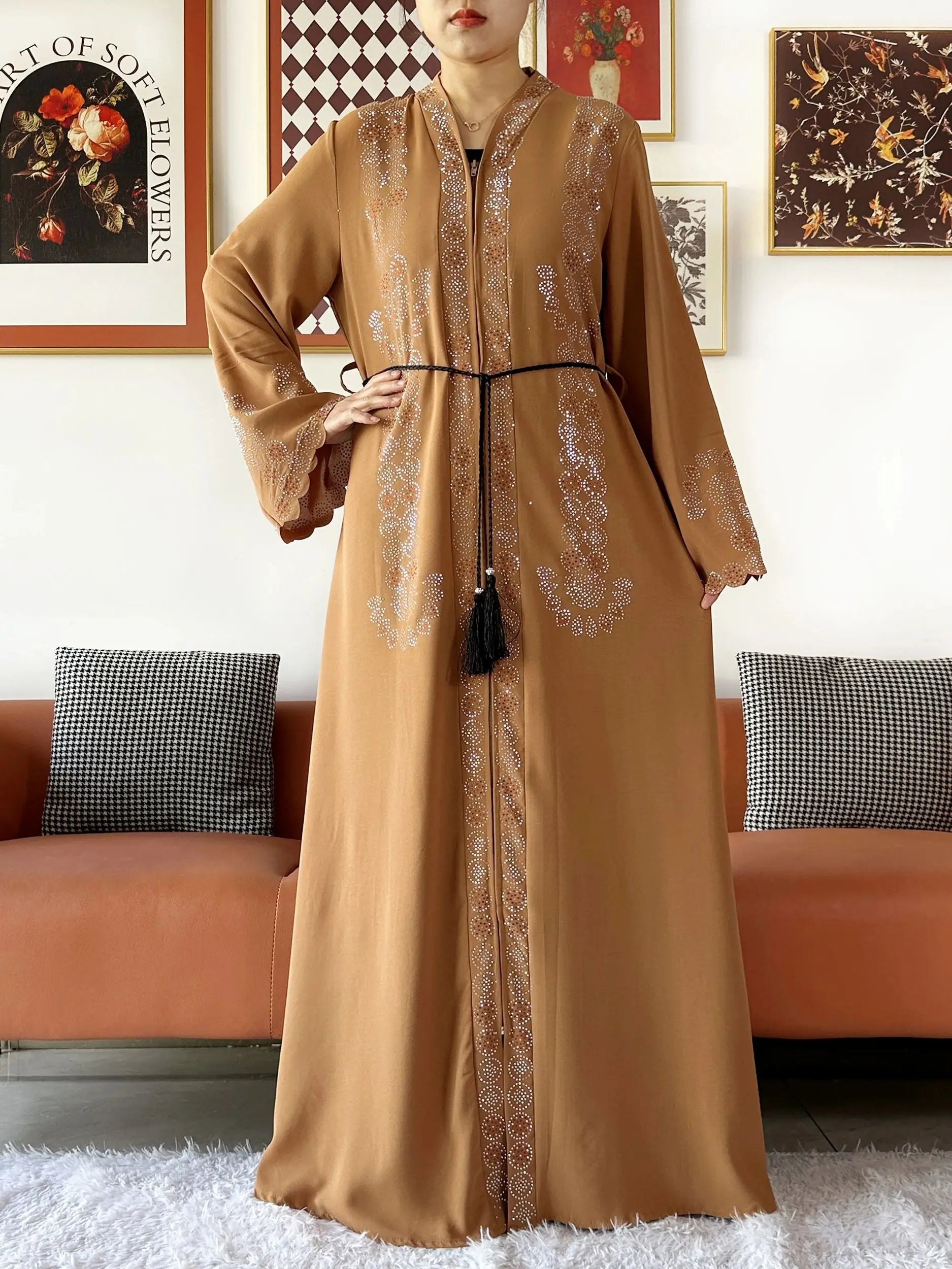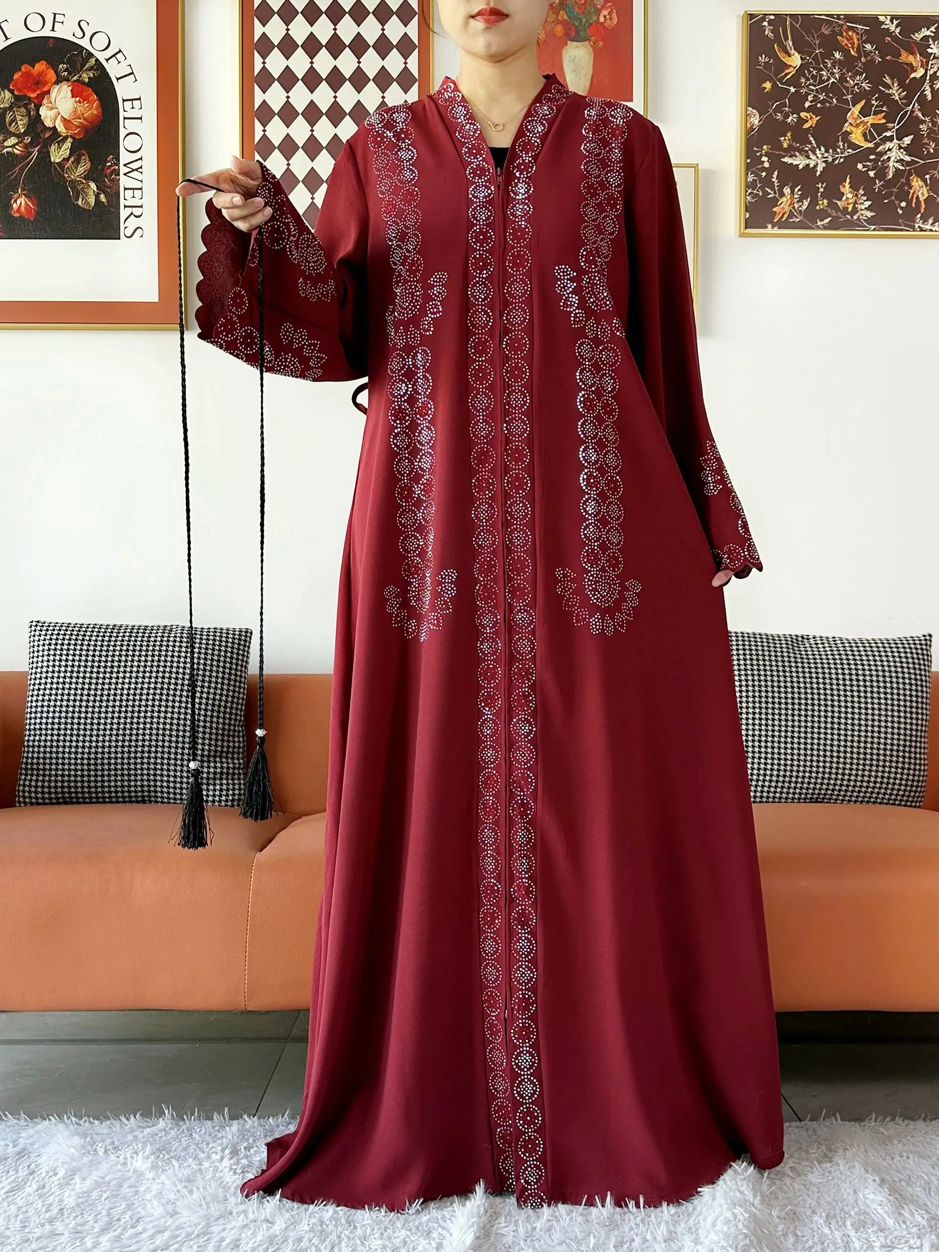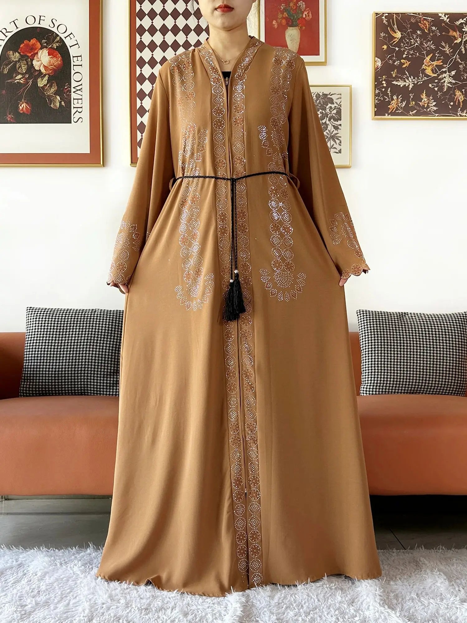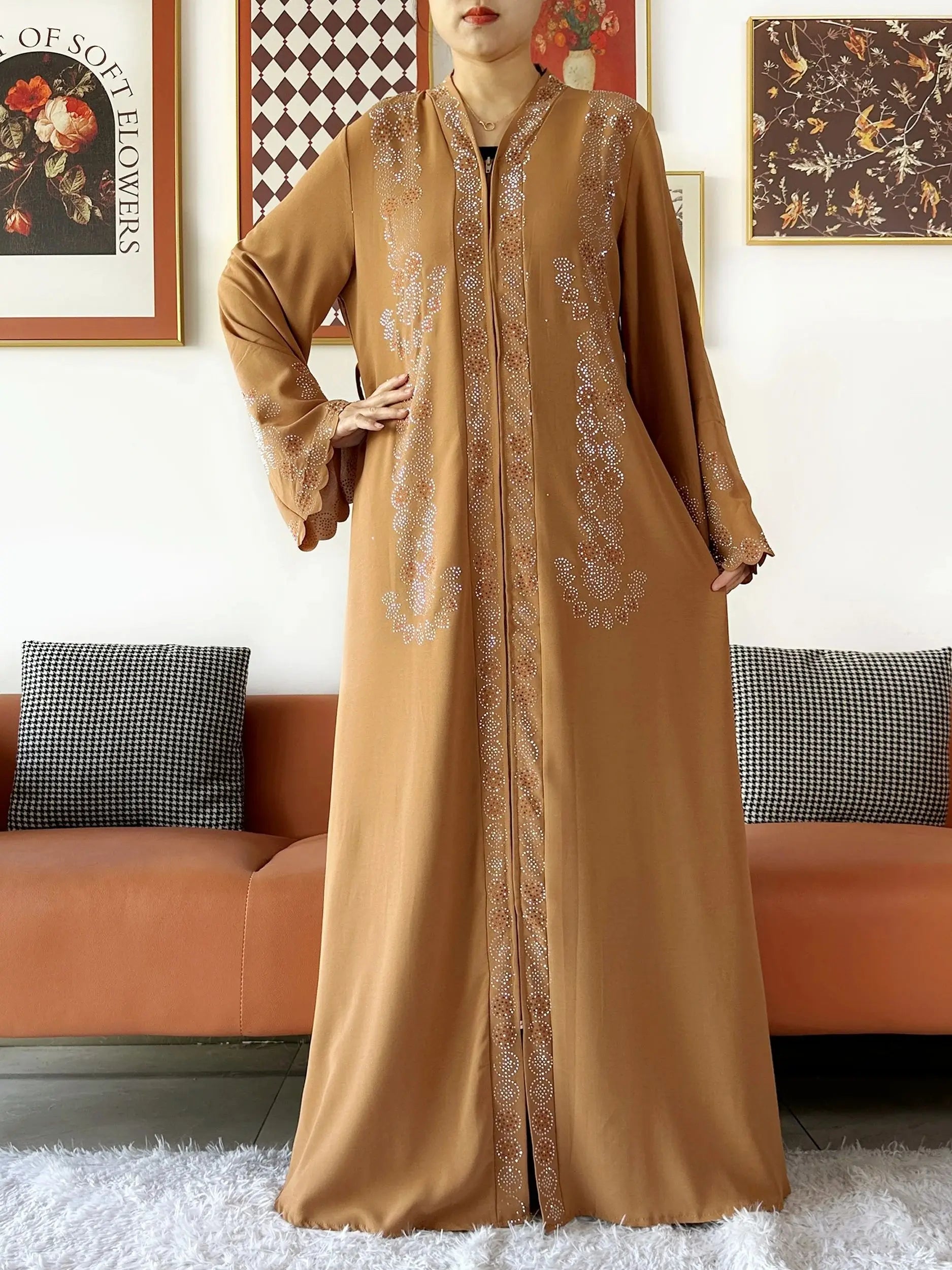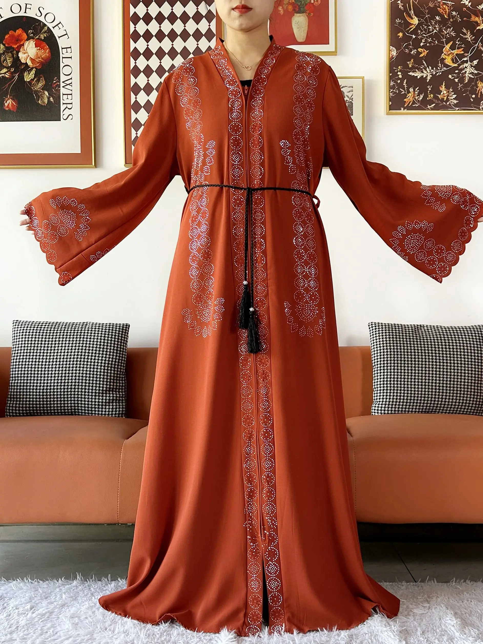 2025 Women Elegant Party Dress Chiffon Open Zipper Loose Abaya Muslim Women Dress Islamic Clothing Cardigan Abaya Muslim Dress