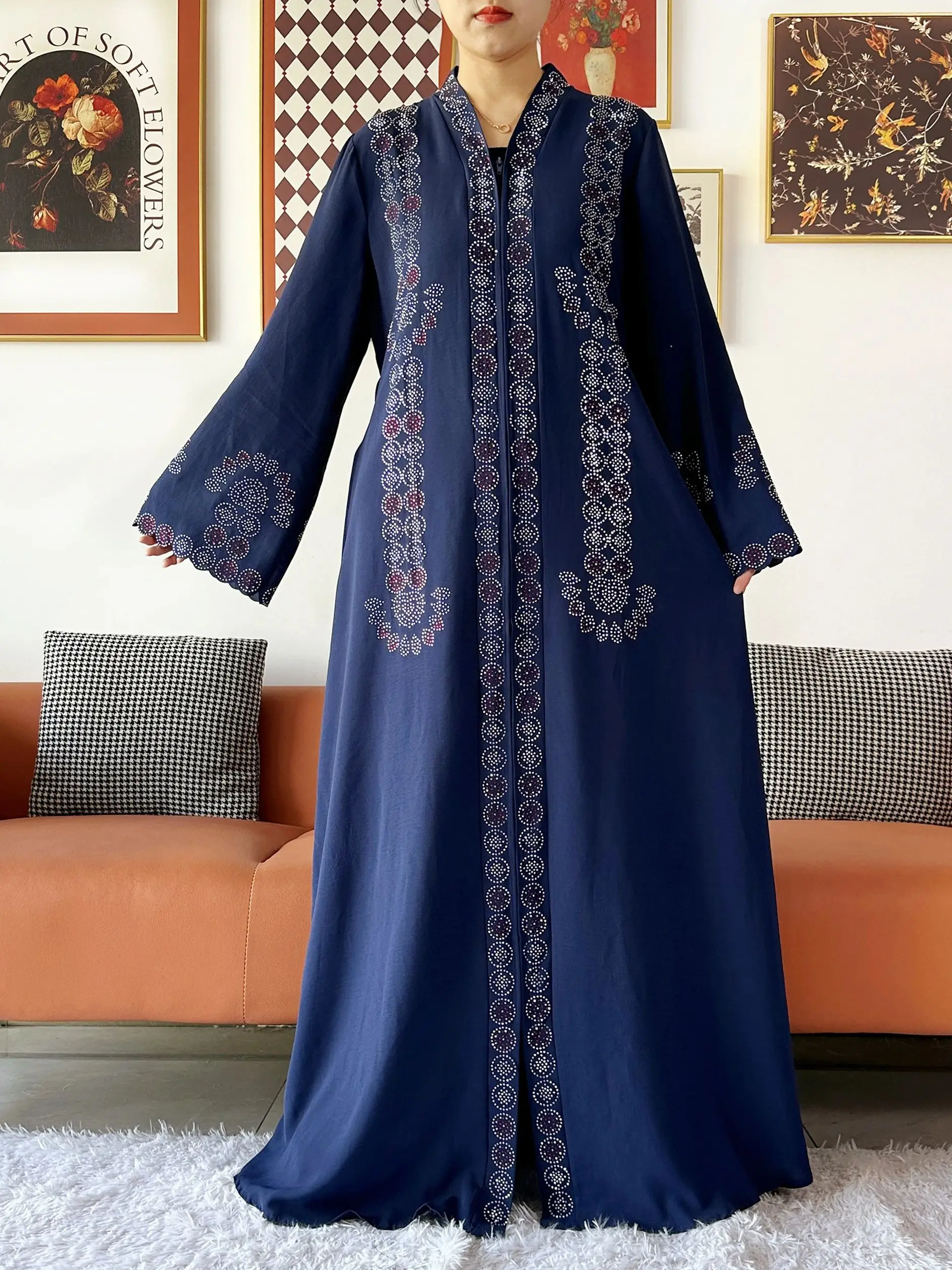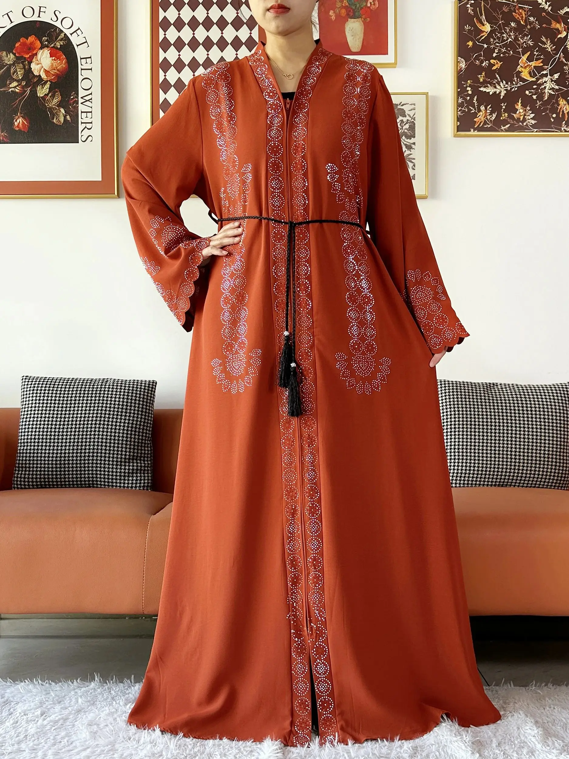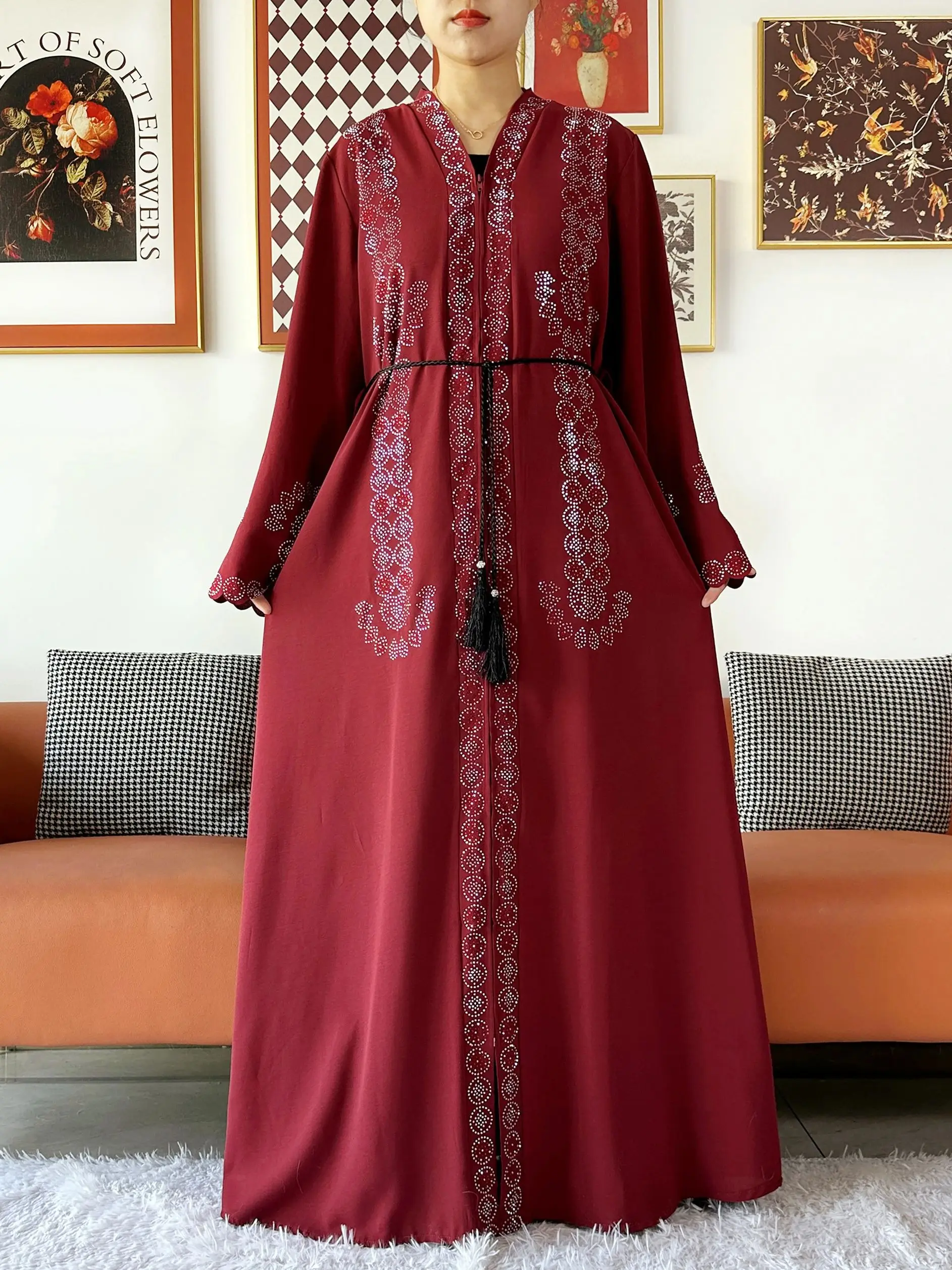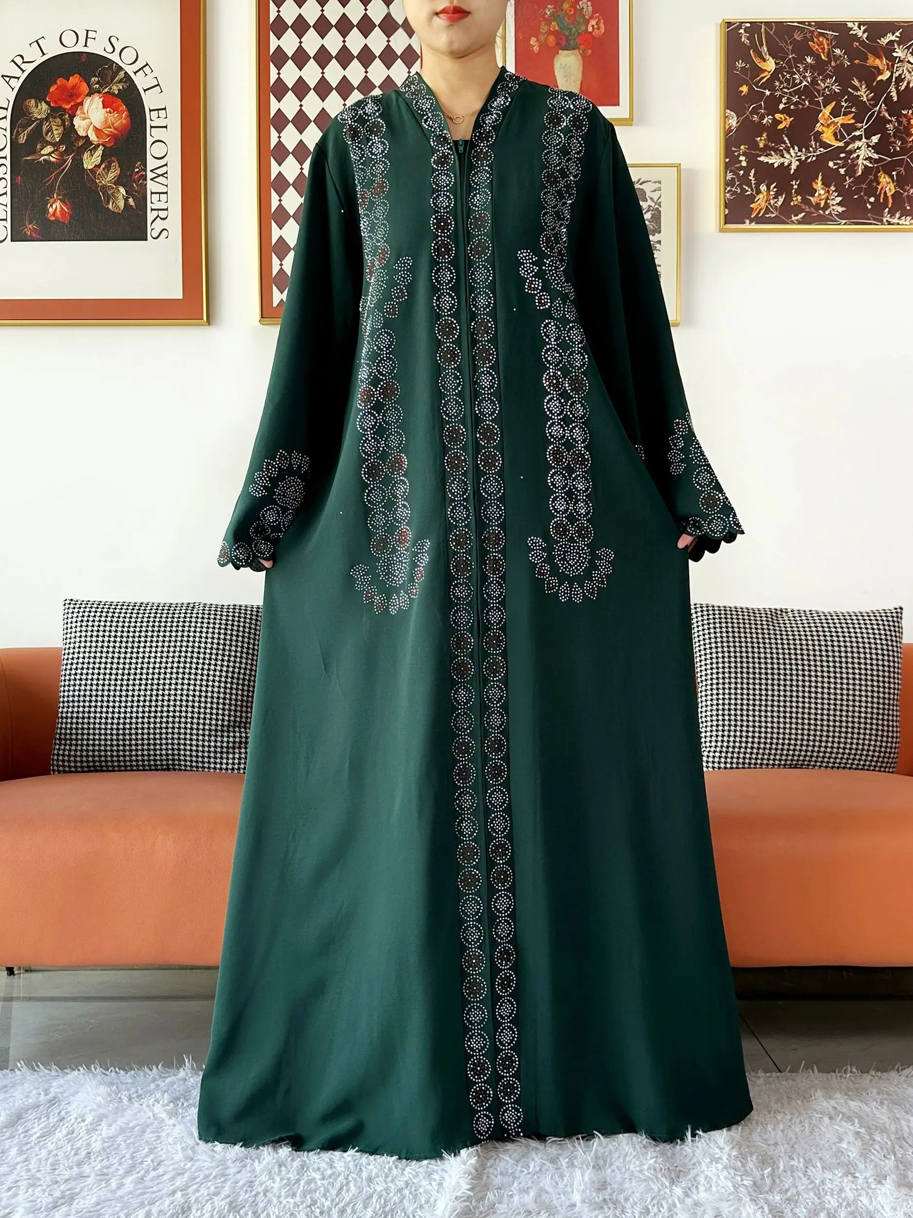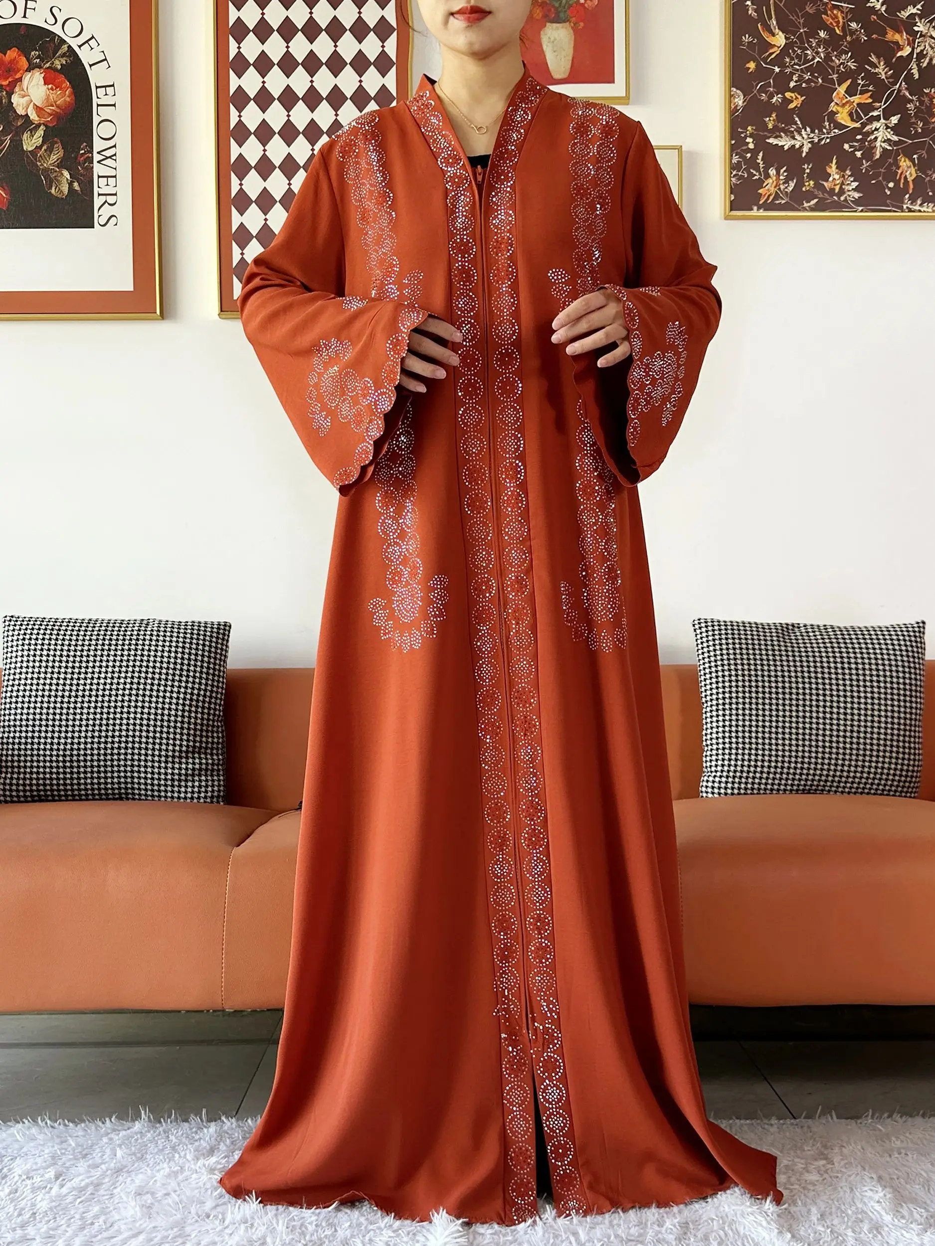 2025 Women Elegant Party Dress Chiffon Open Zipper Loose Abaya Muslim Women Dress Islamic Clothing Cardigan Abaya Muslim Dress