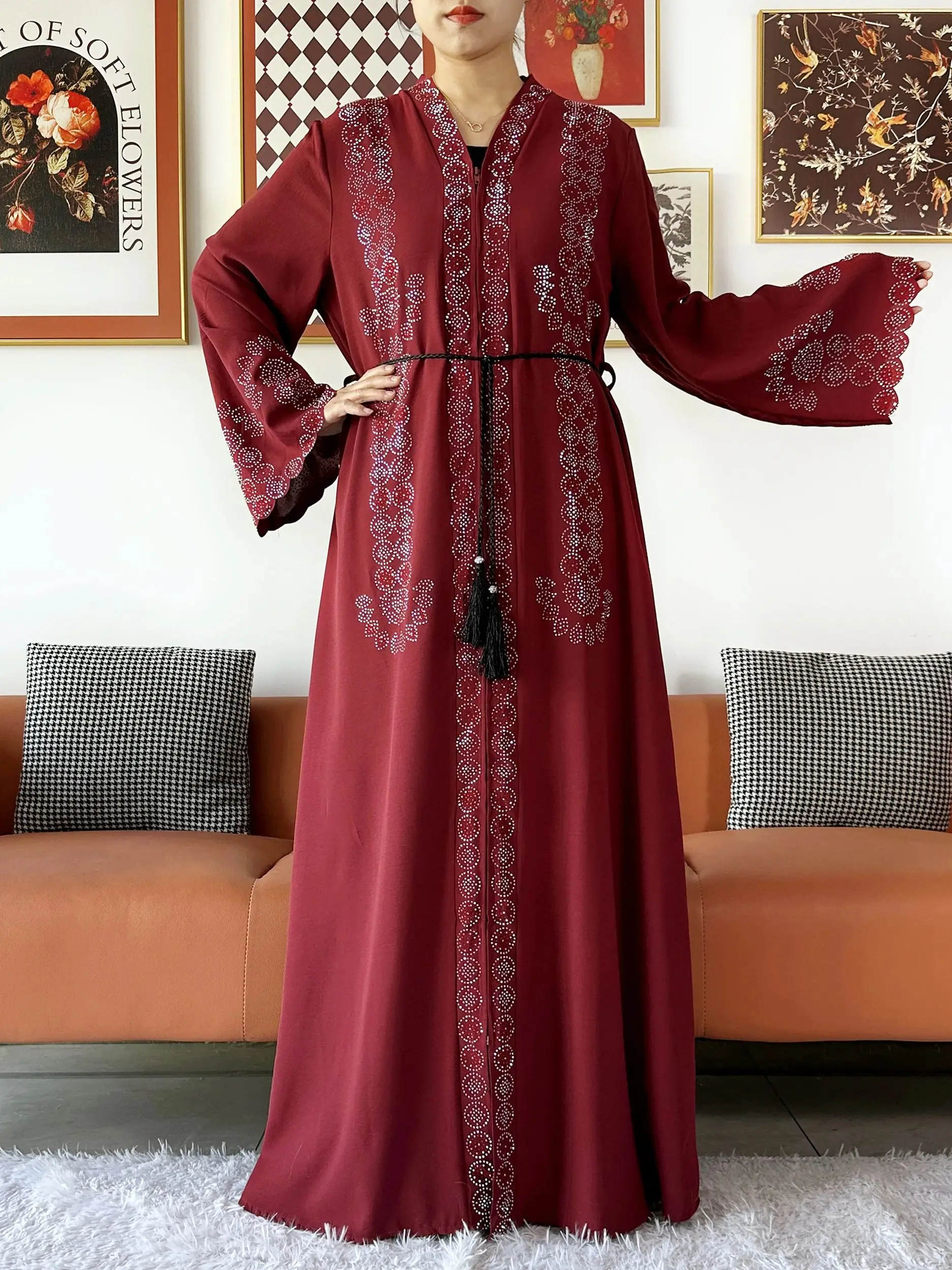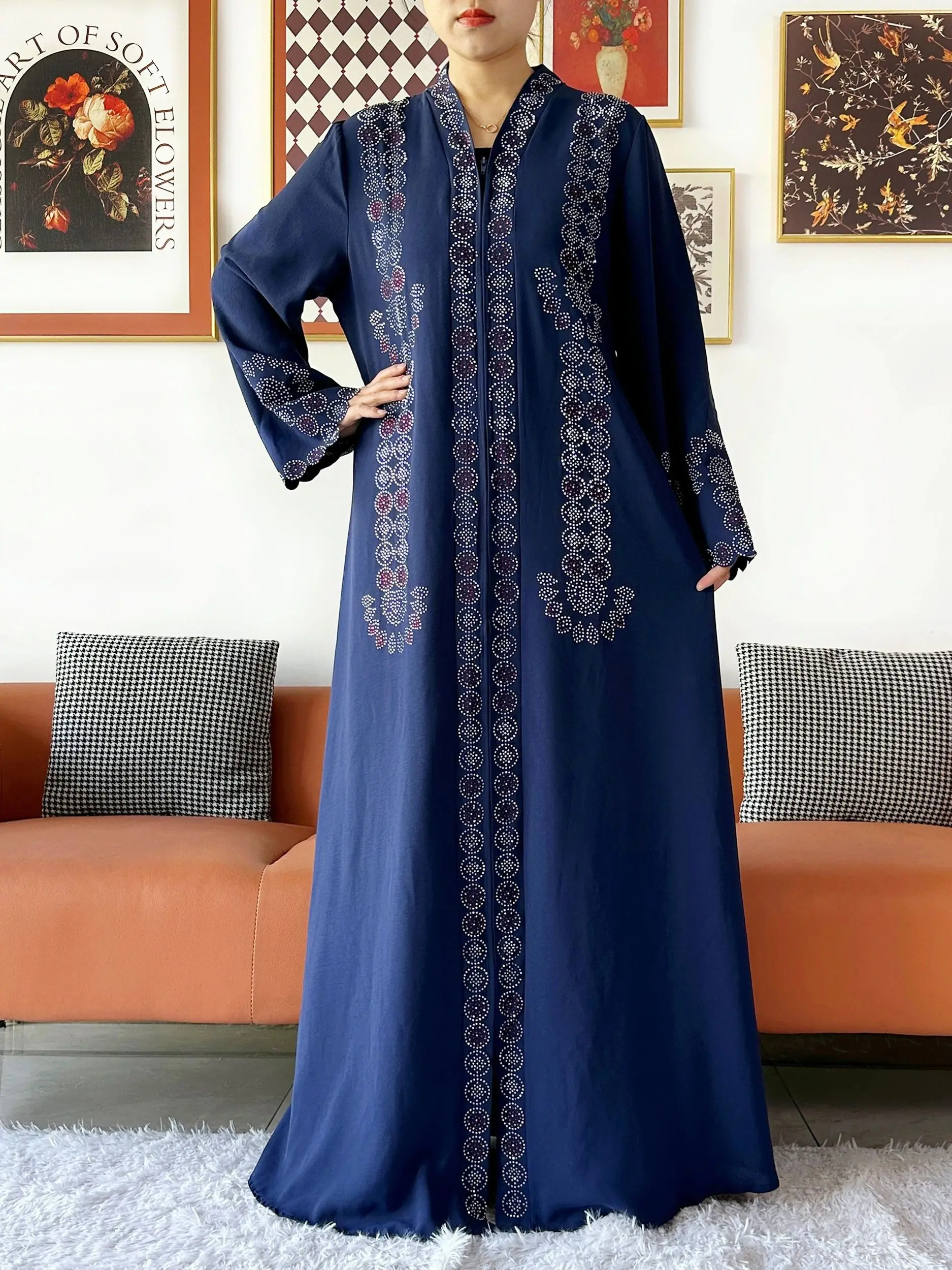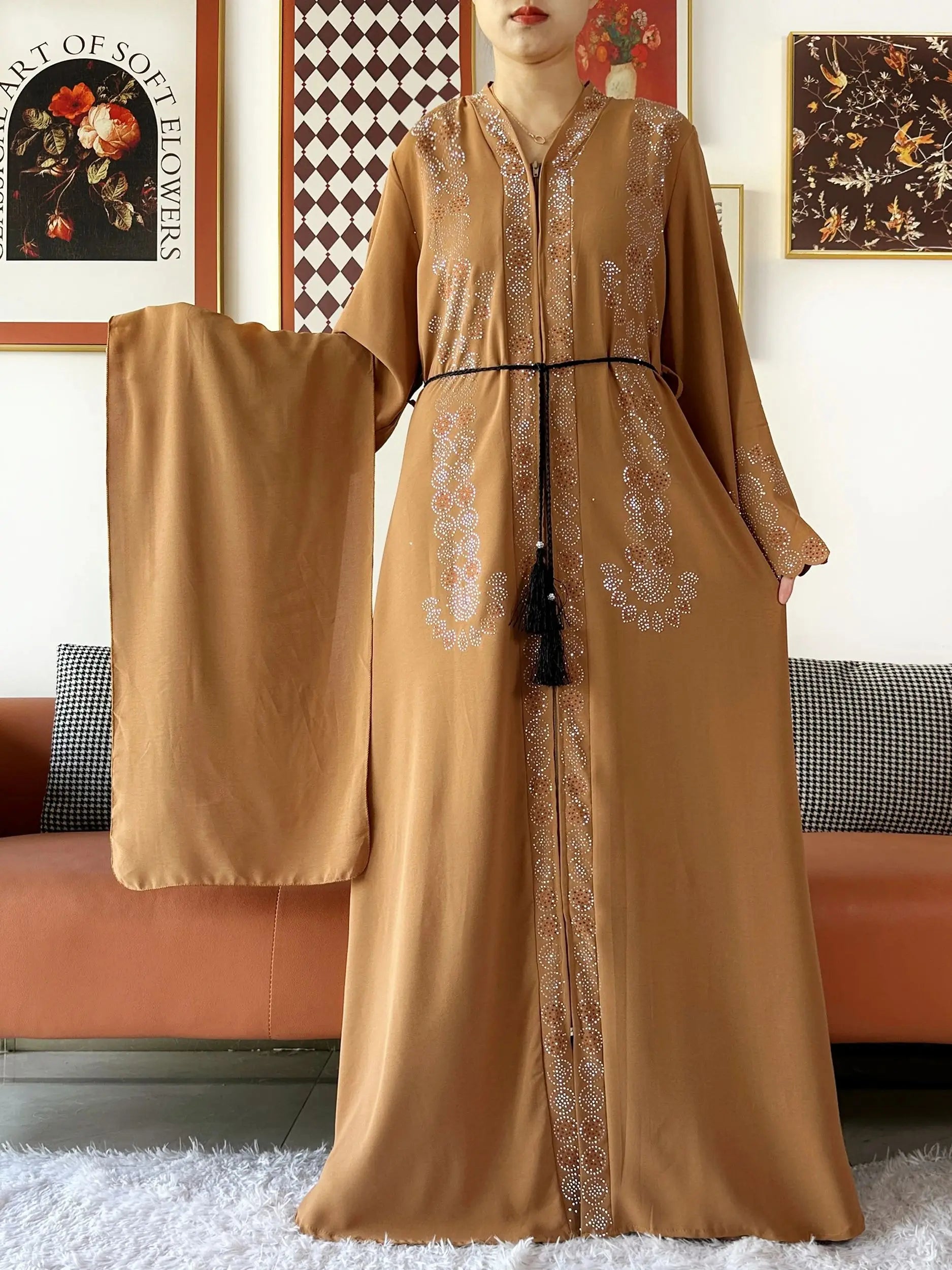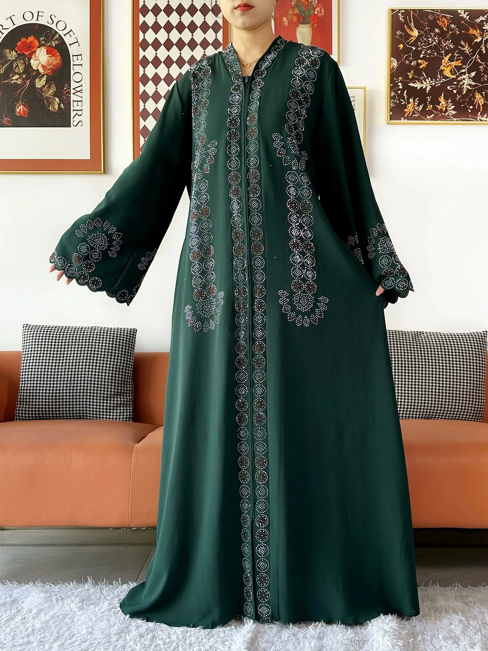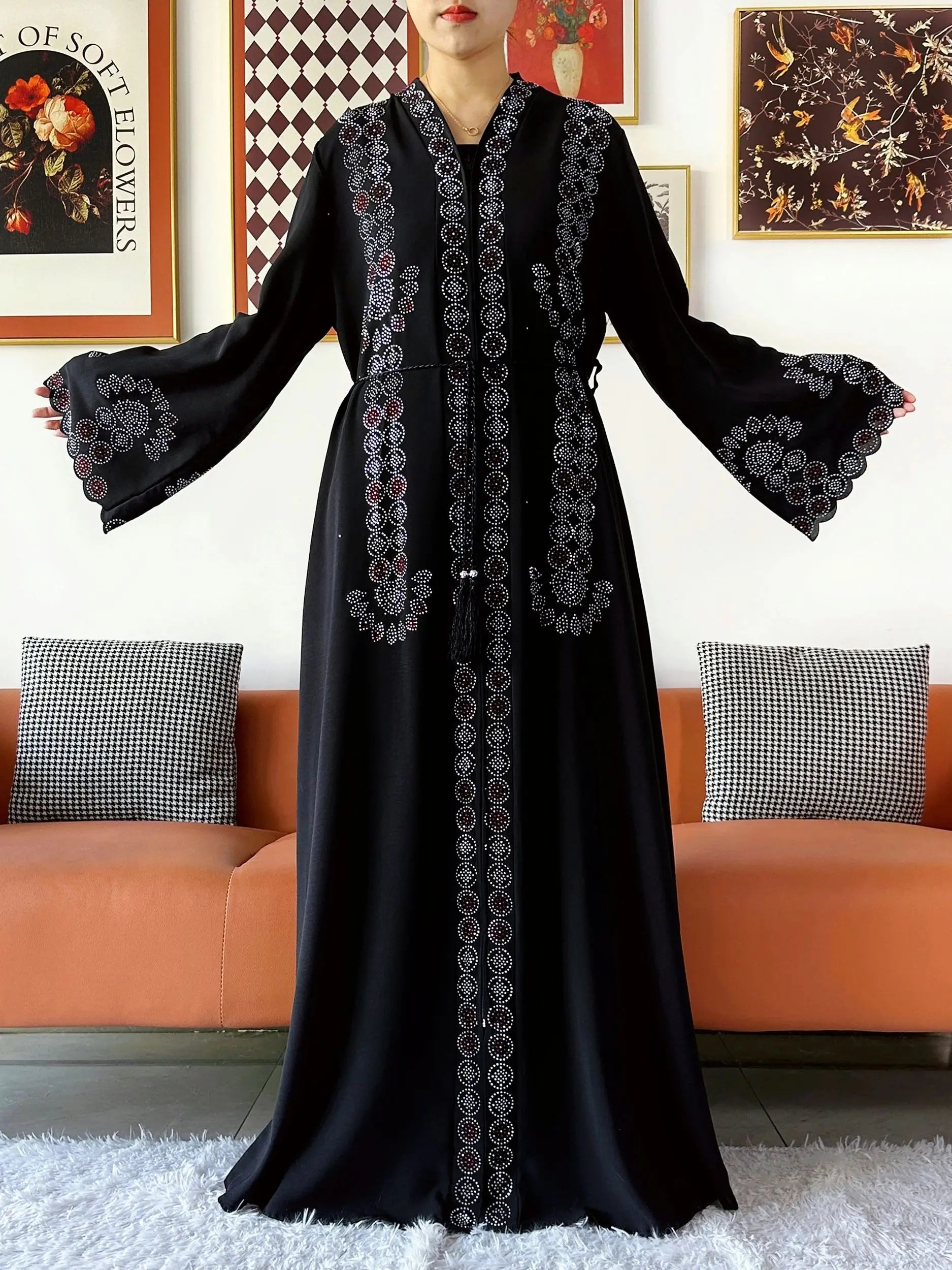 2025 Women Elegant Party Dress Chiffon Open Zipper Loose Abaya Muslim Women Dress Islamic Clothing Cardigan Abaya Muslim Dress