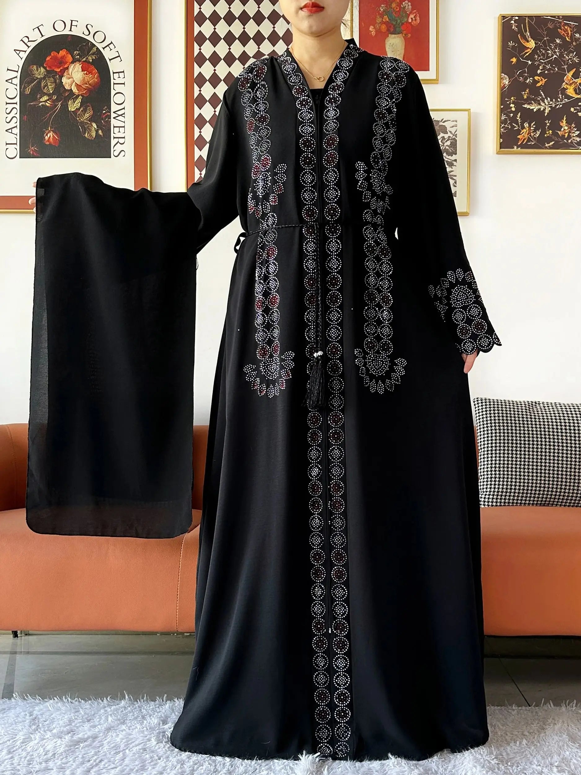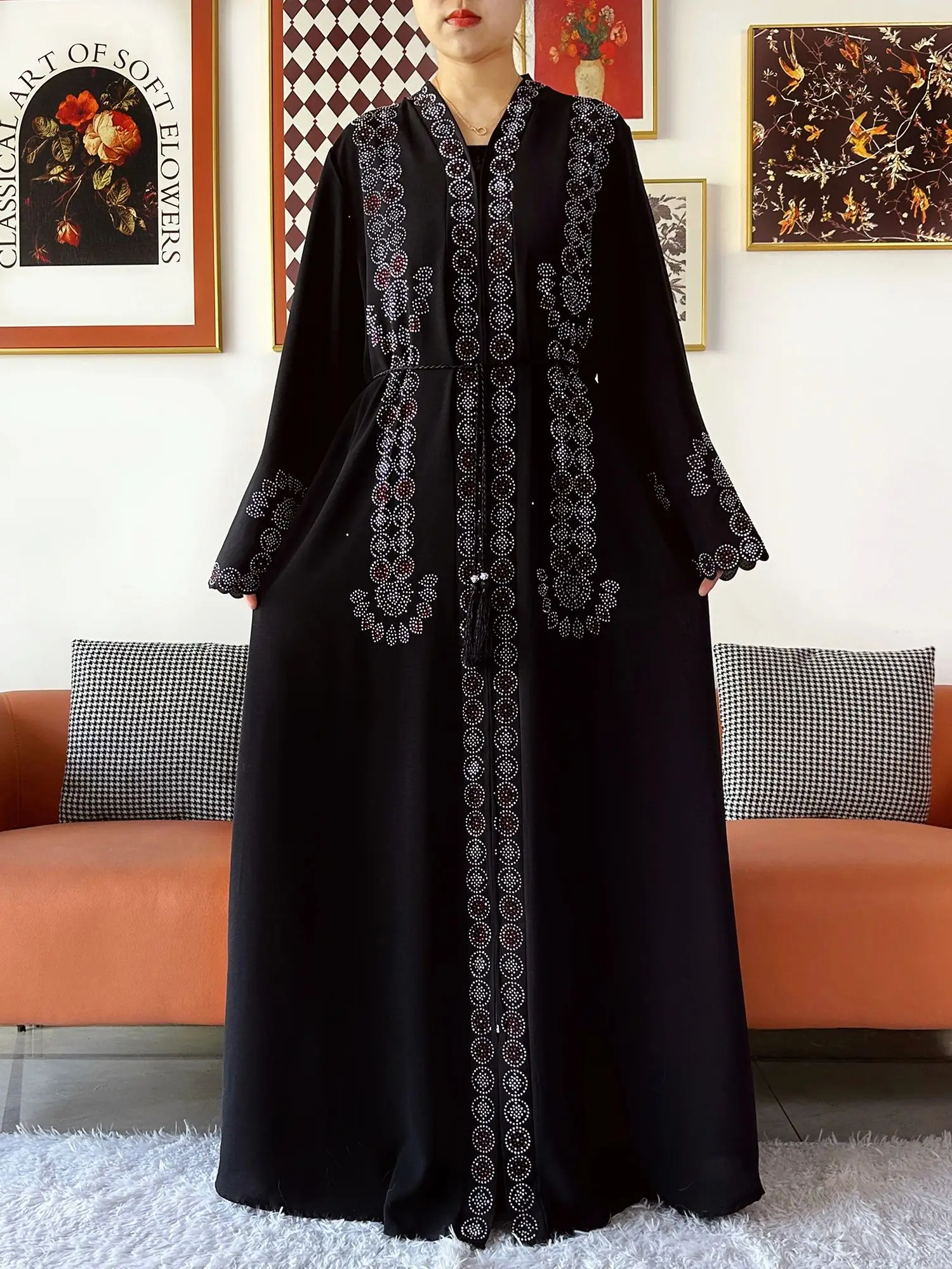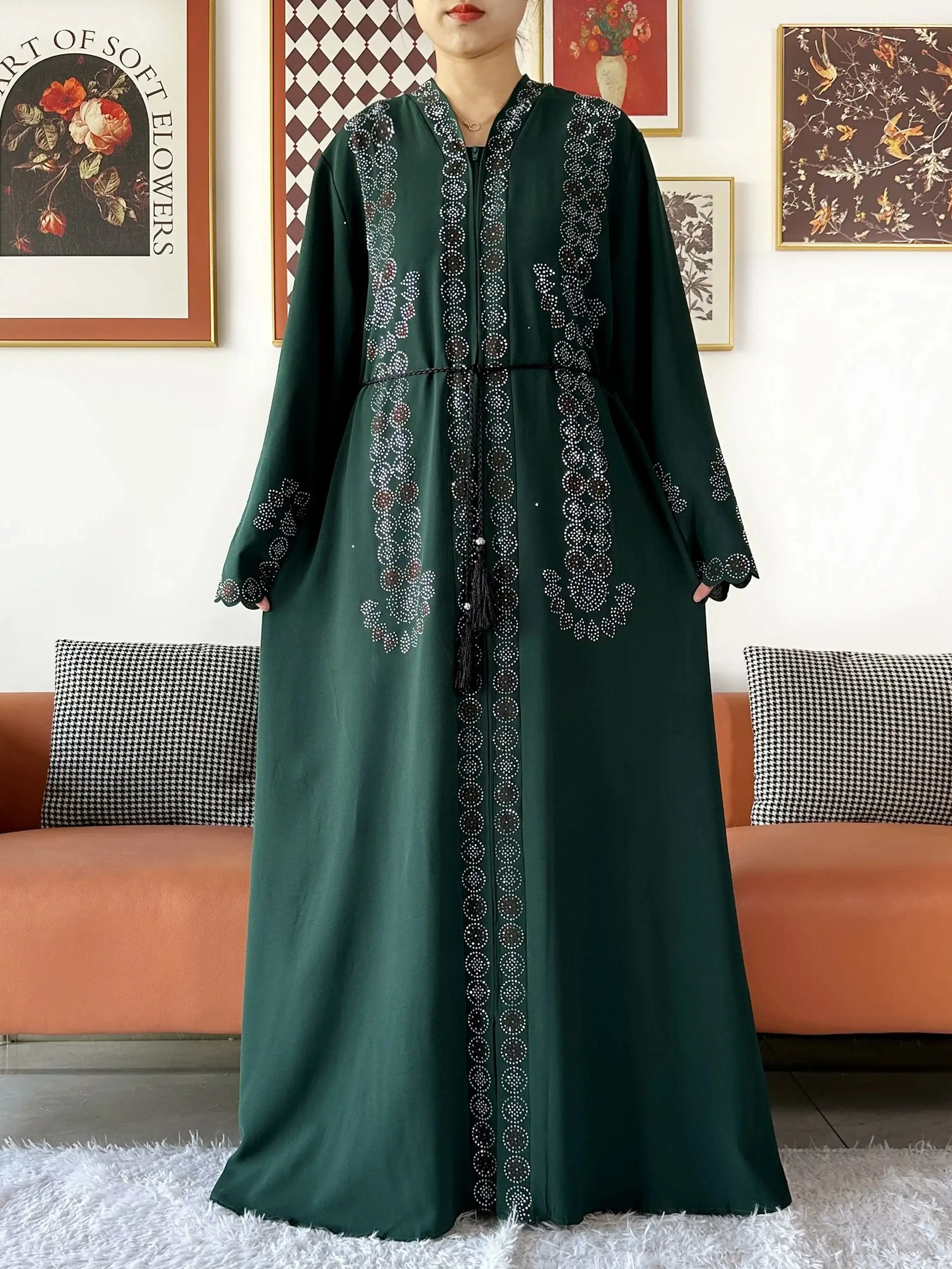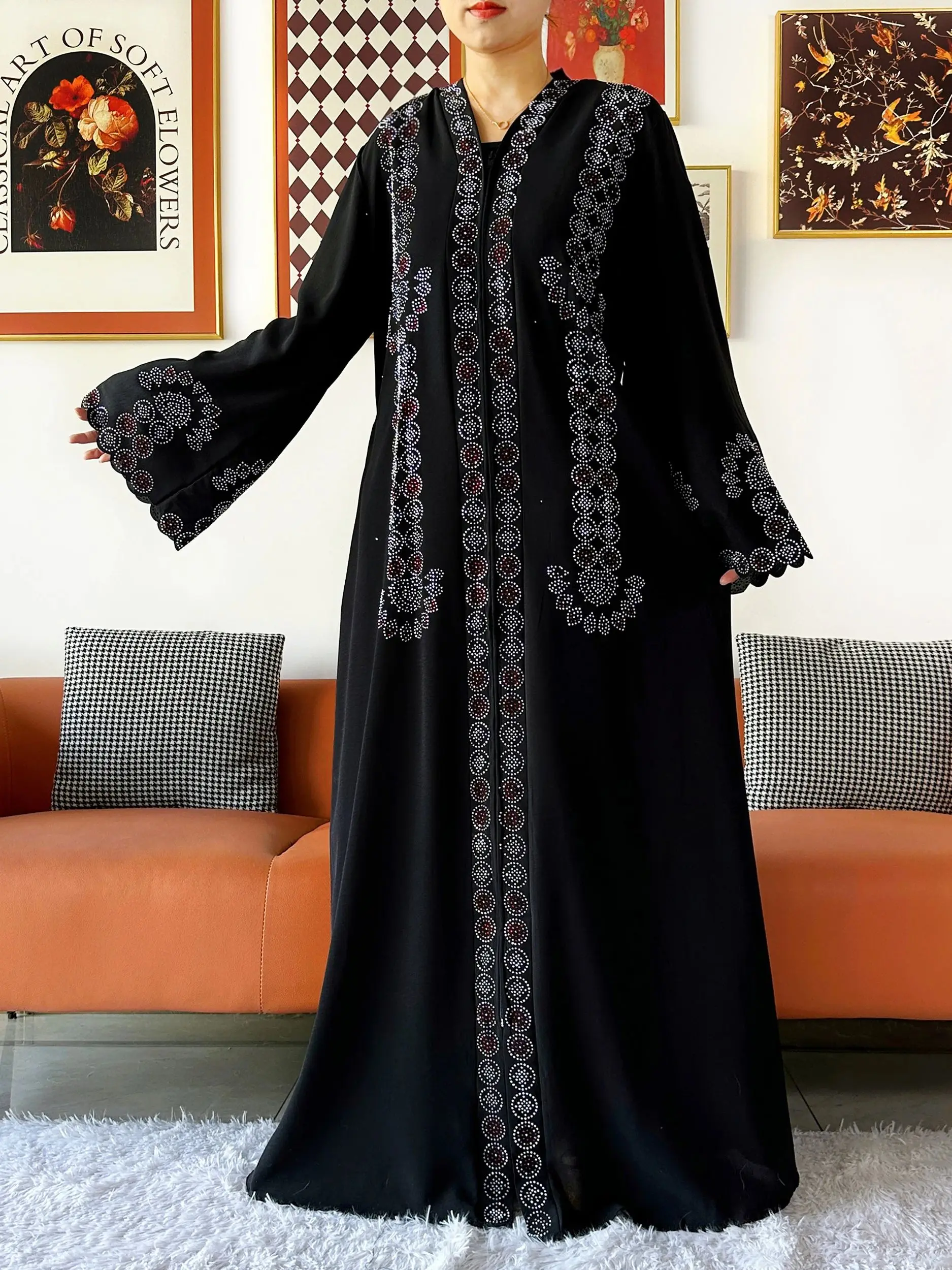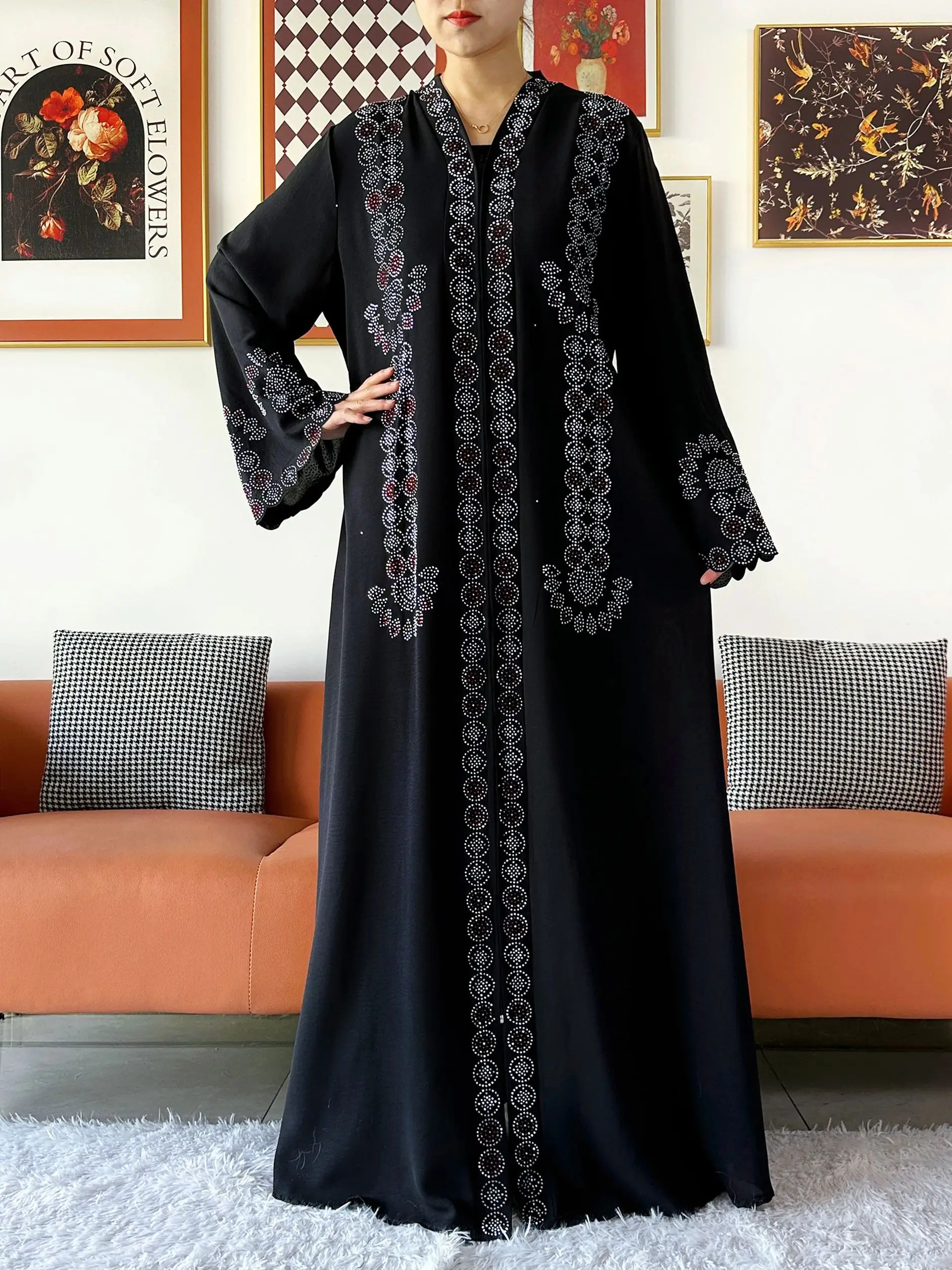 2025 Women Elegant Party Dress Chiffon Open Zipper Loose Abaya Muslim Women Dress Islamic Clothing Cardigan Abaya Muslim Dress