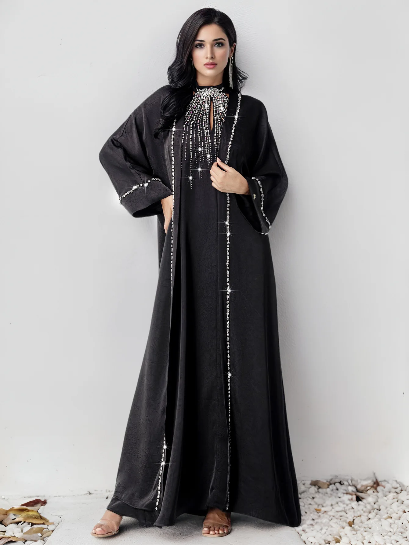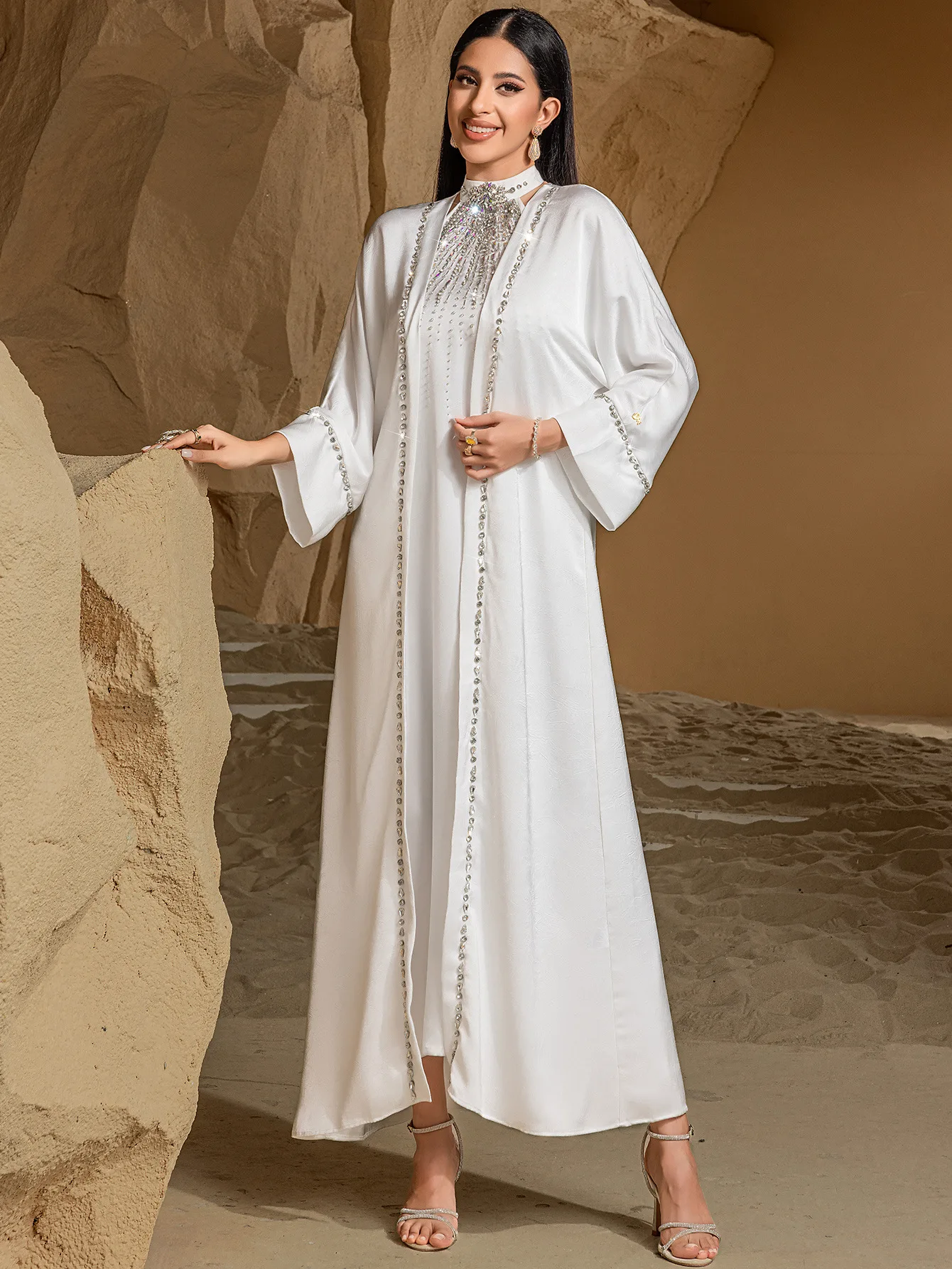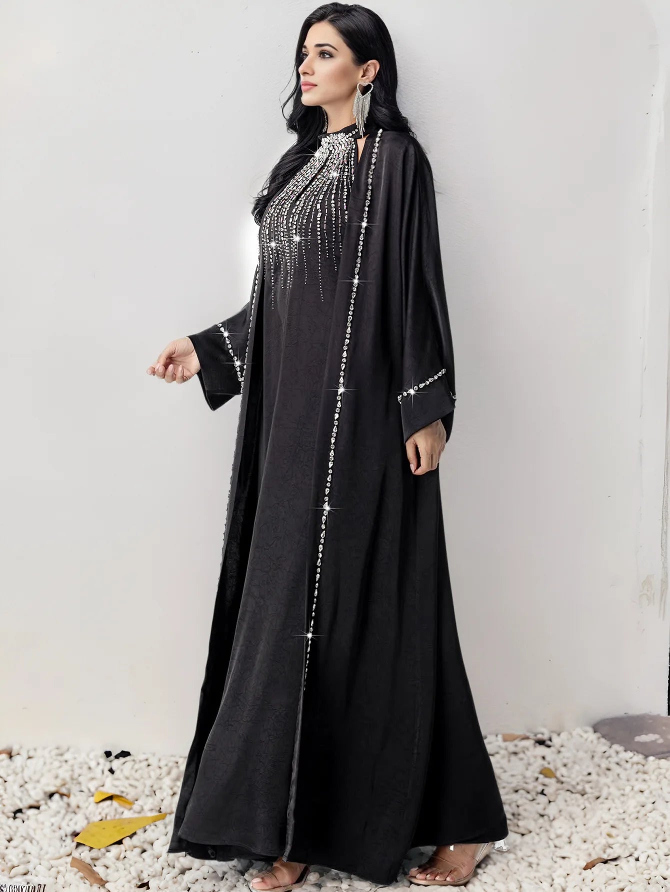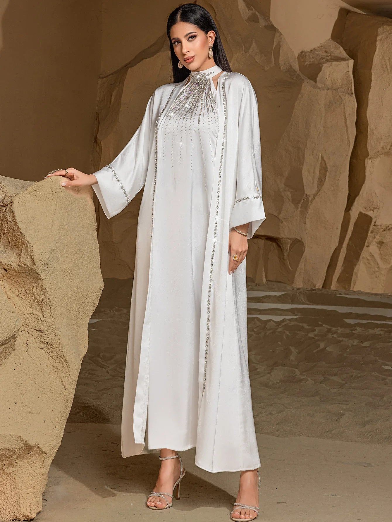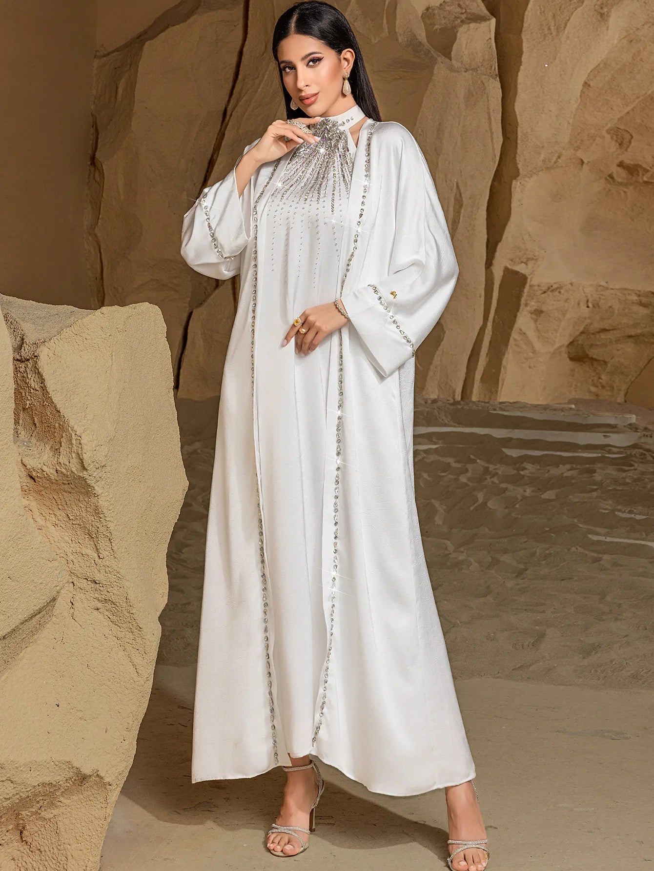 2Pcs Luxury Dubai Abaya Muslim Sets for Women Diamonds Evening Party Dress Kimono Jalabiya Wedding Gown Kebaya Ramadan Caftan