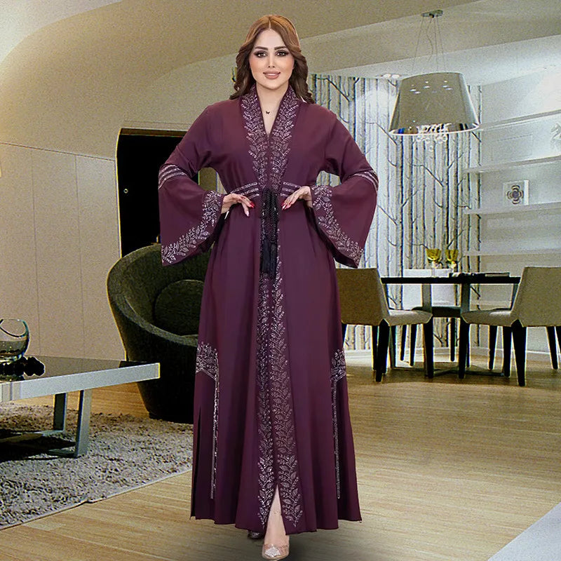 Abaya Dubai Turkey Women Kimono Rhinestones Robe Modest Islamic Cardigan Arab Femme Kaftan Morocco Maxi Eid Muslim Luxury Dress