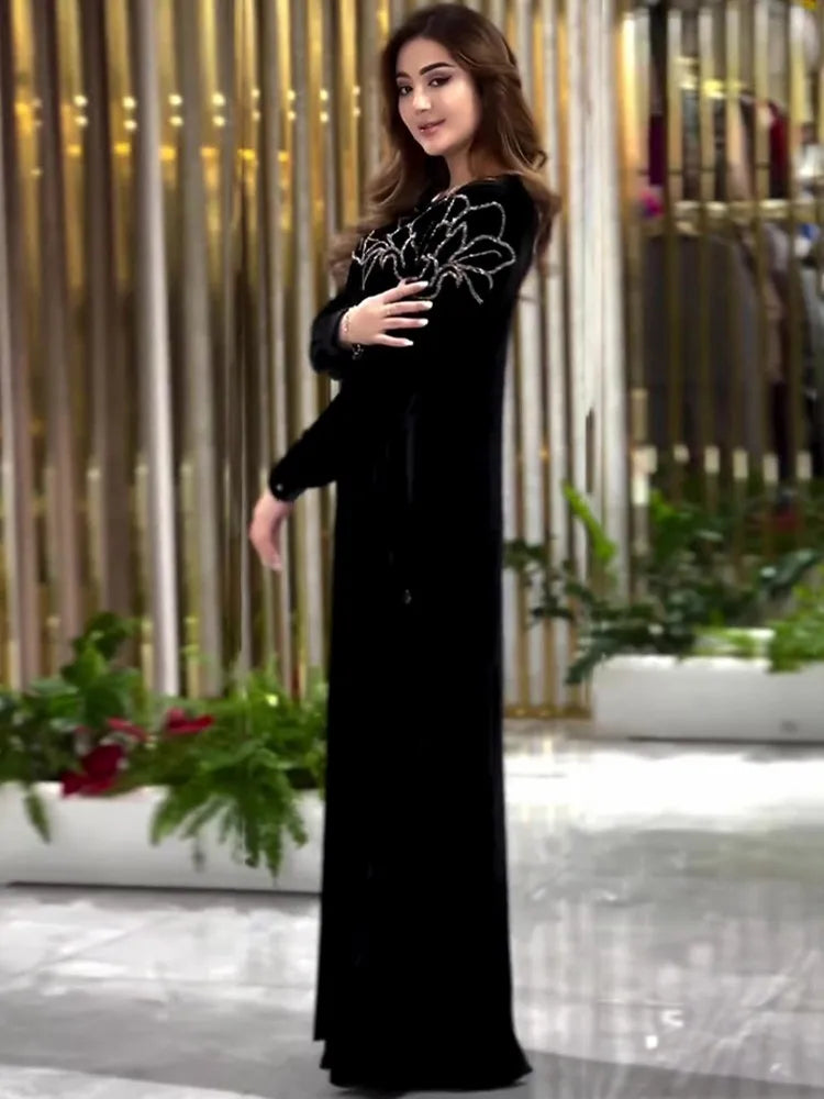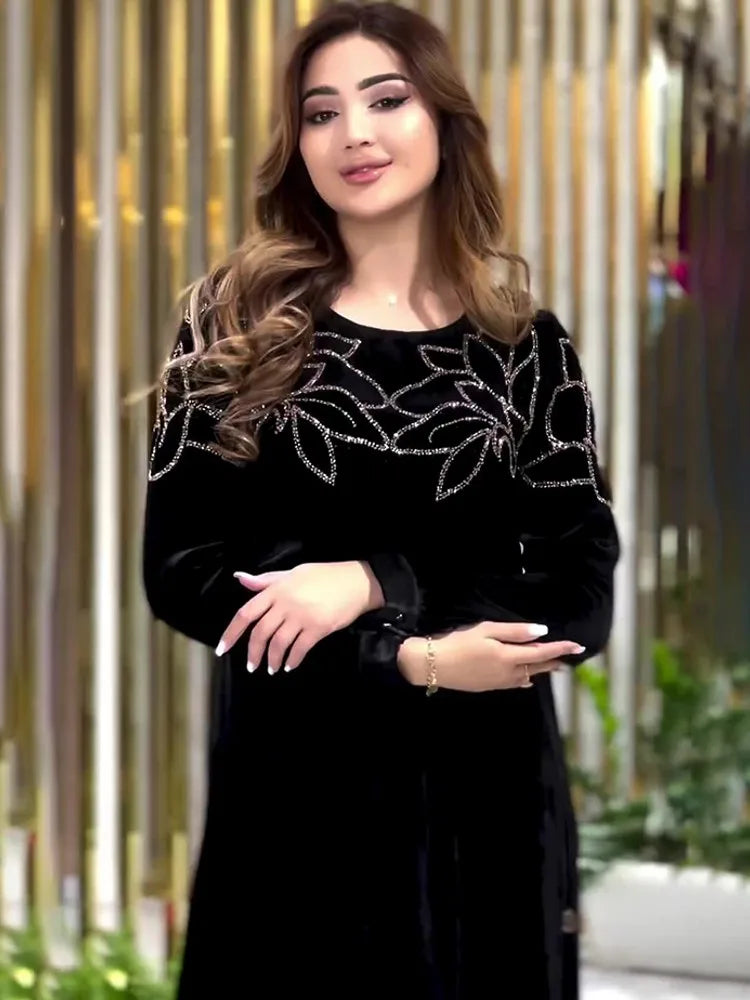 African Dresses For Women Long Sleeve Turkey Diamonds Evening Wedding Party Floor Length Dress Muslim Africa Clothes 2024