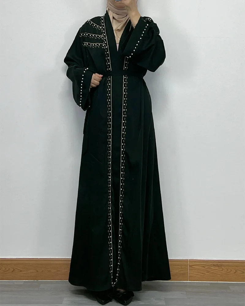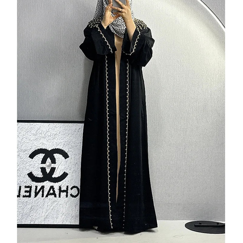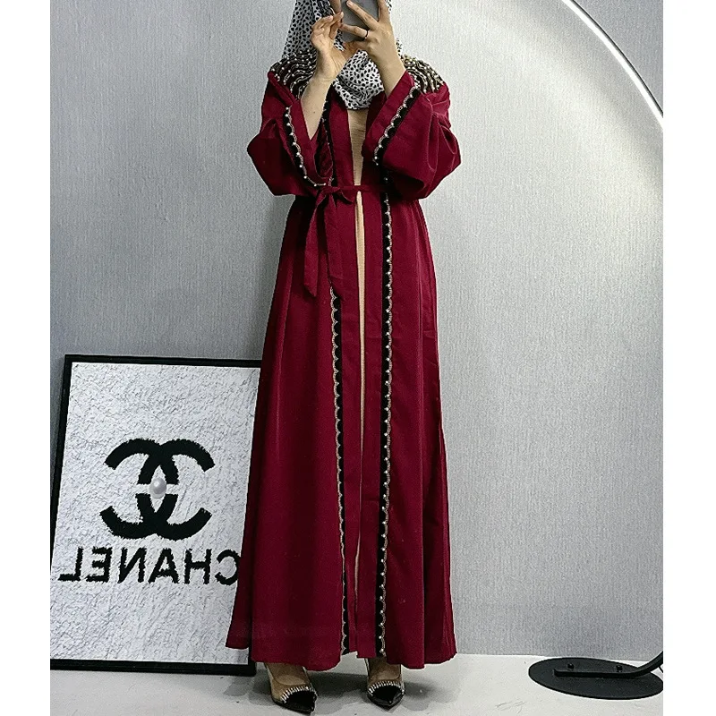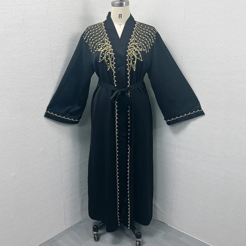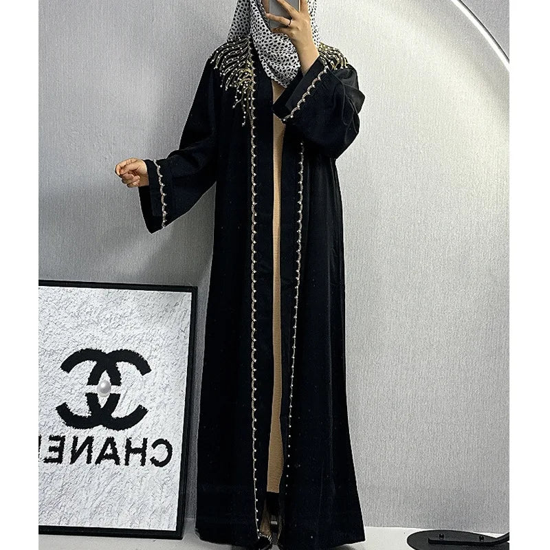 Dubai Abaya Islamic Clothing Women's Dresses Embellished Stone Stylish Burka Muslim Embroidery Beaded Women Front Open Abaya |