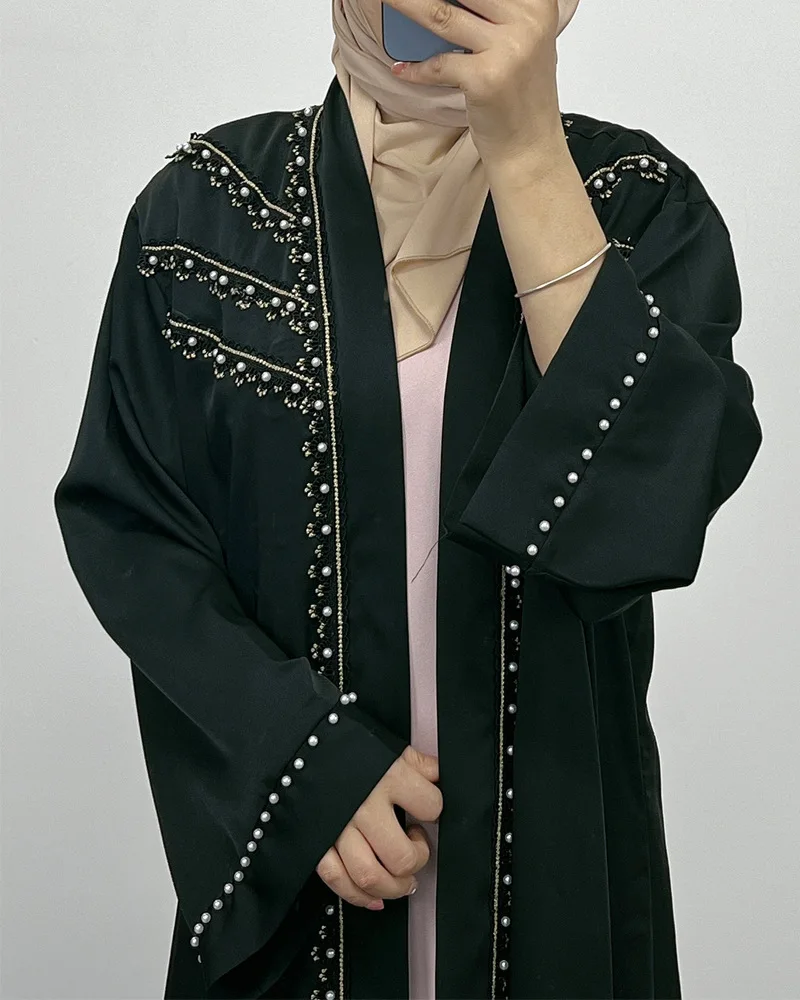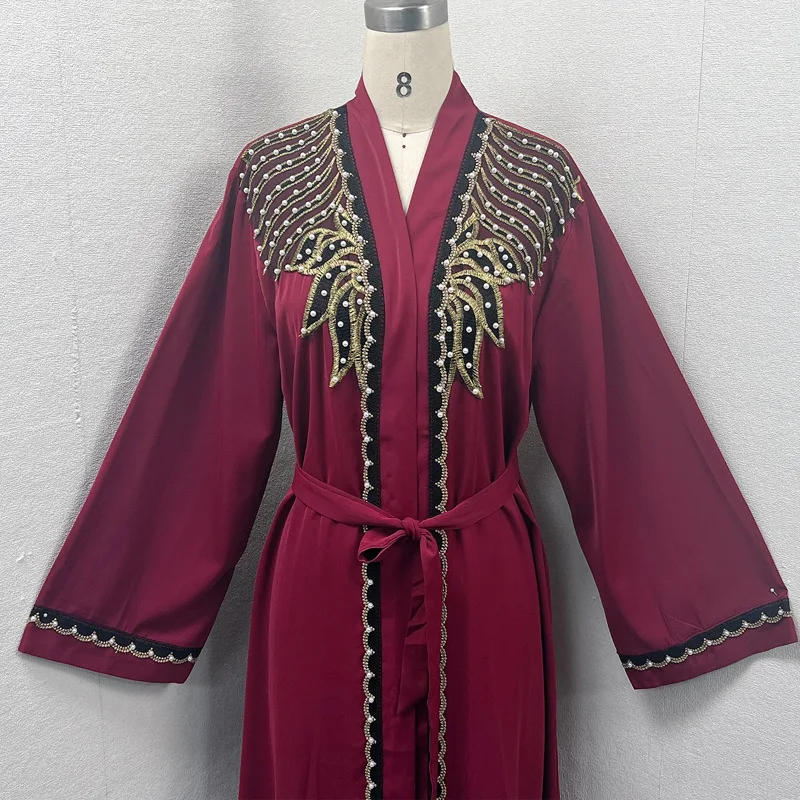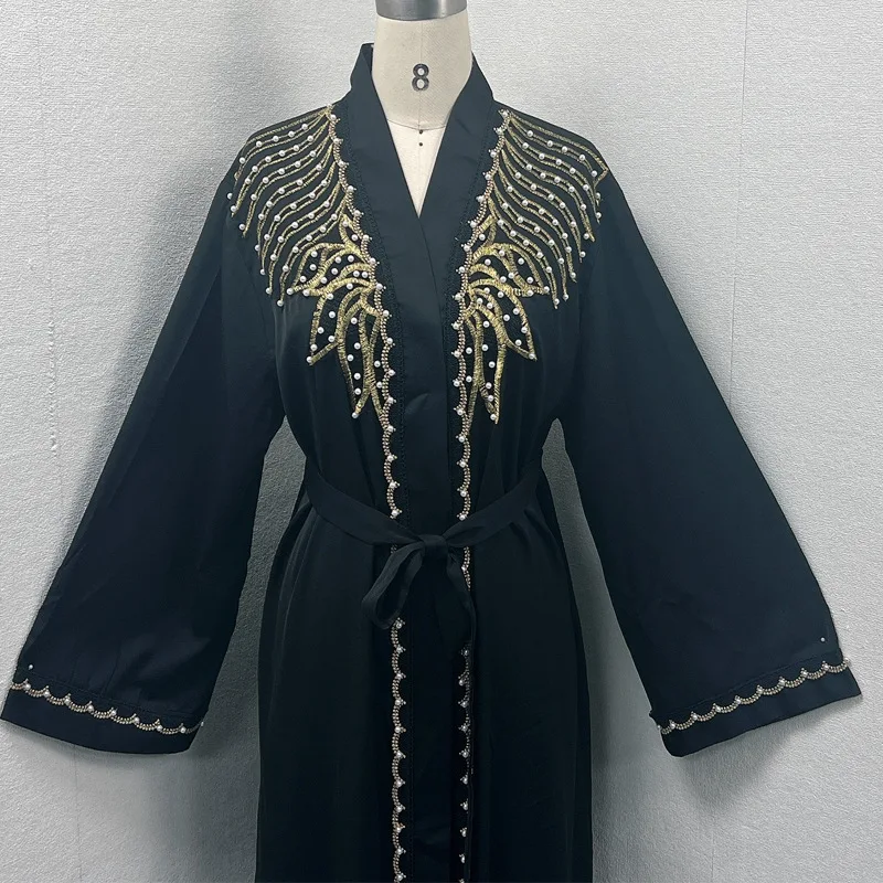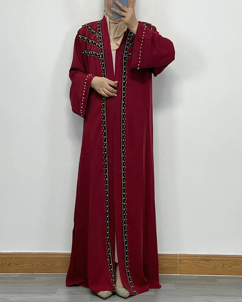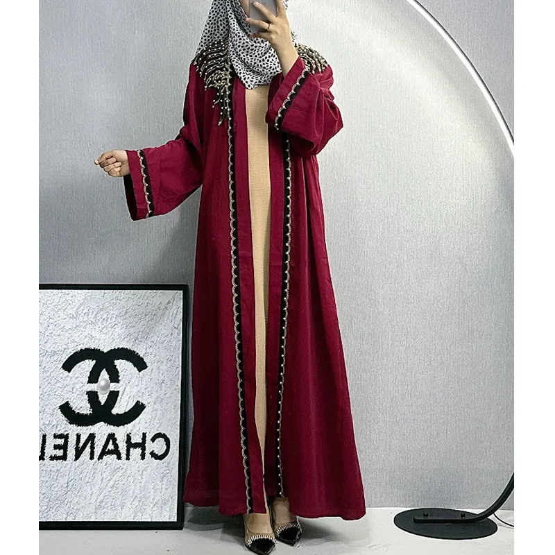 Dubai Abaya Islamic Clothing Women's Dresses Embellished Stone Stylish Burka Muslim Embroidery Beaded Women Front Open Abaya |