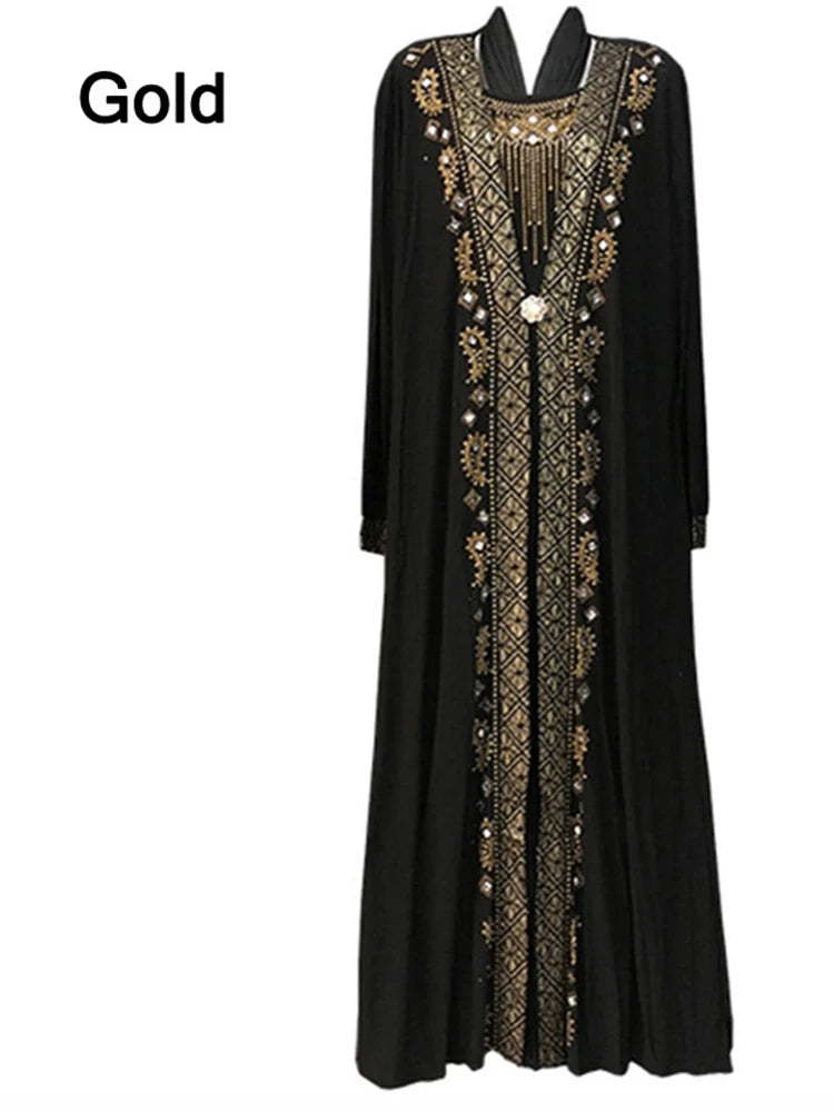 Dubai Arab Islam Abaya Women Muslim Long Dress Sequin Beading Kaftan Robes Elegant Splice Maxi Dresses Islamic Clothing Caftan