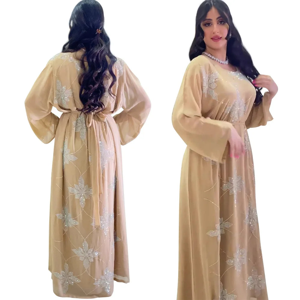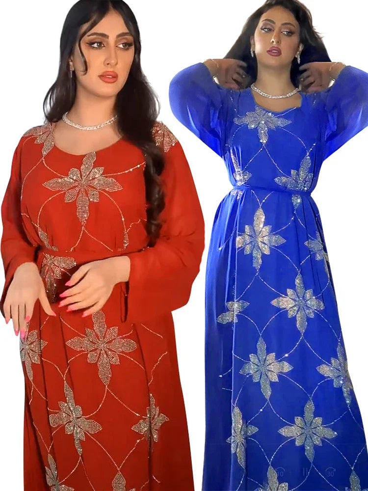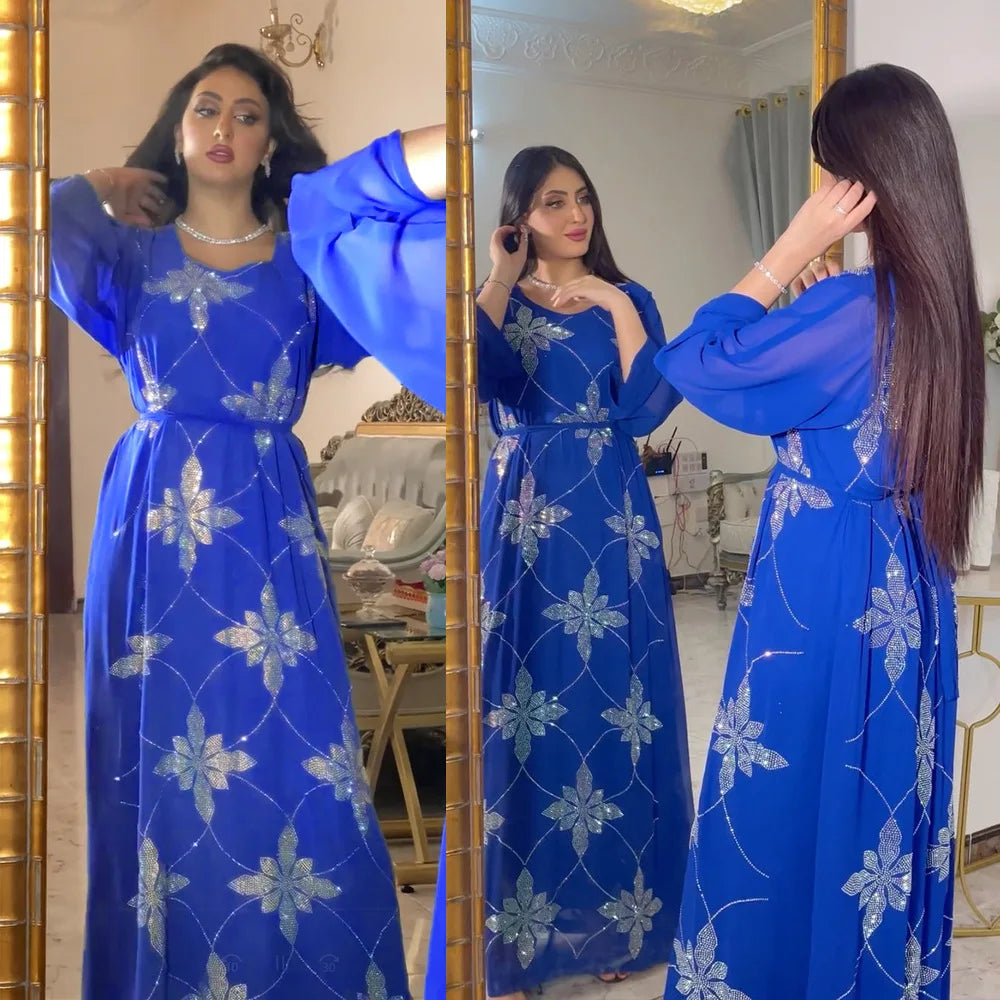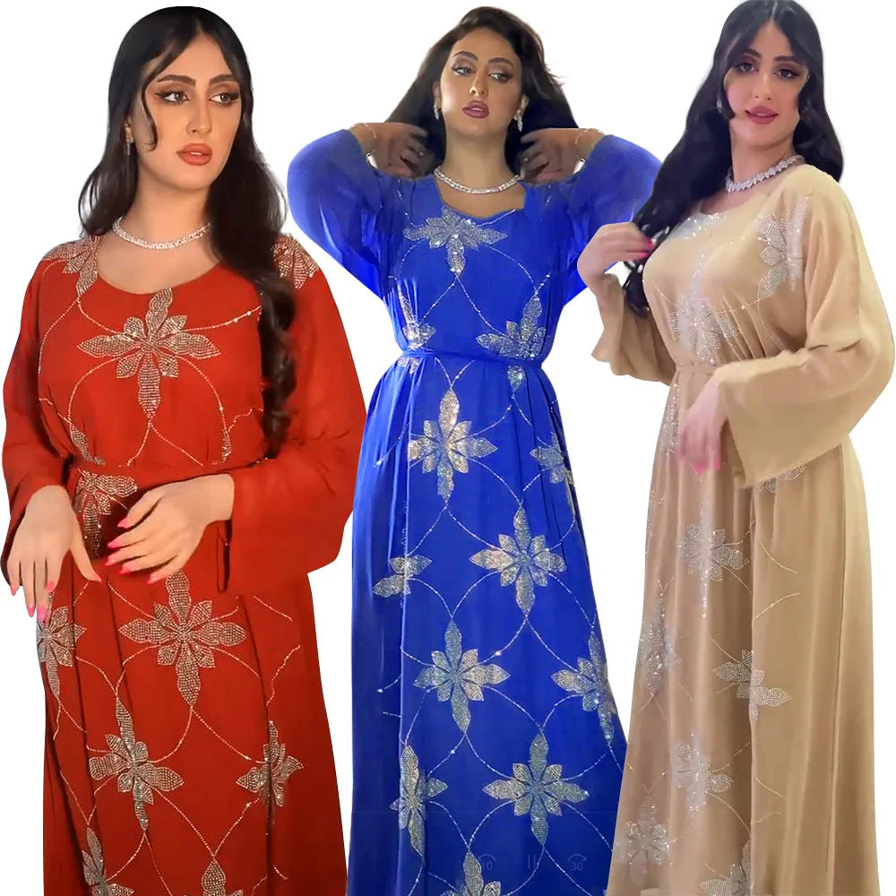 Eid Morocco Party Dress Women Muslim Abaya Diamond Ramadan Chiffon Dubai Abayas Kaftan Elegant Robe Vestidos Turkey Gown 2023