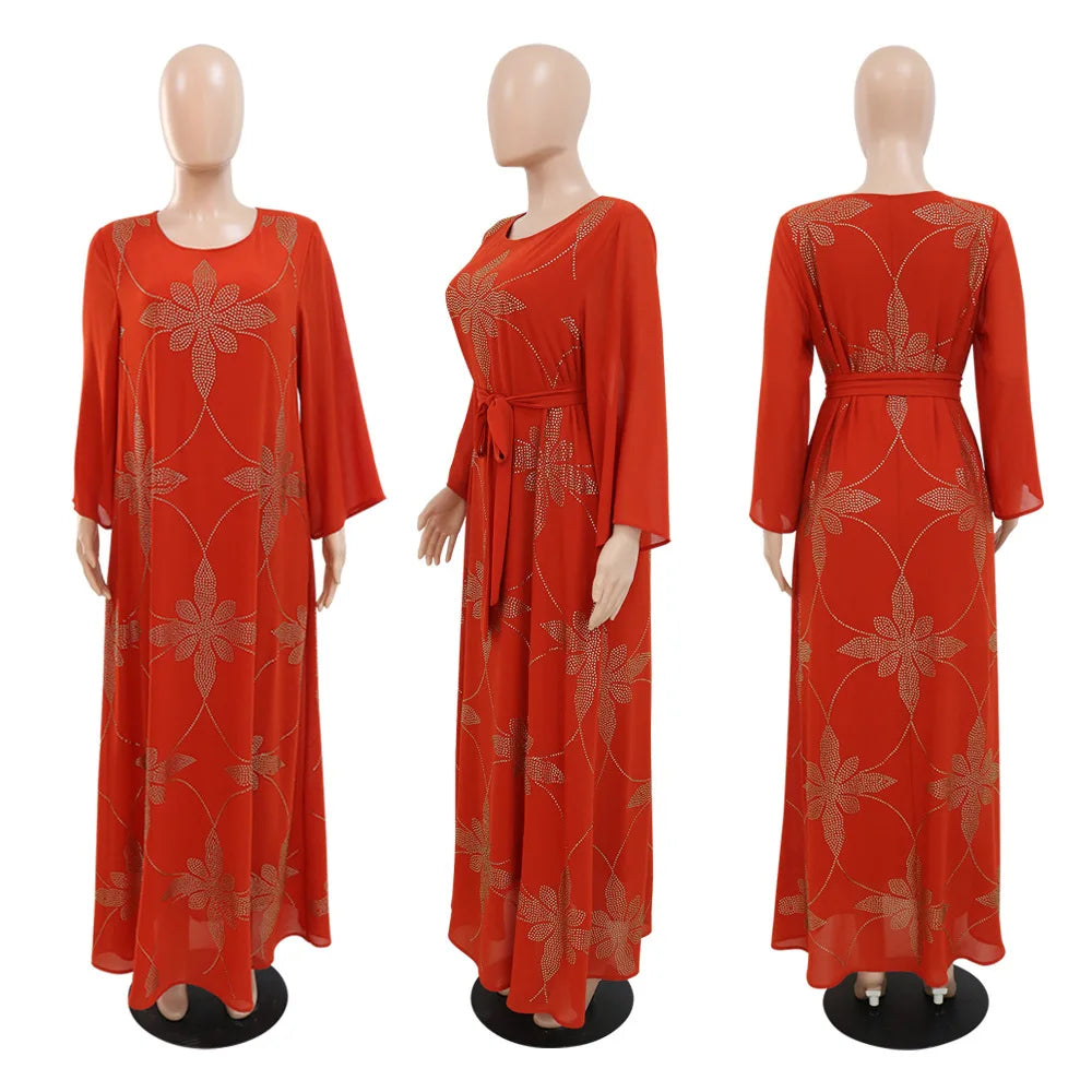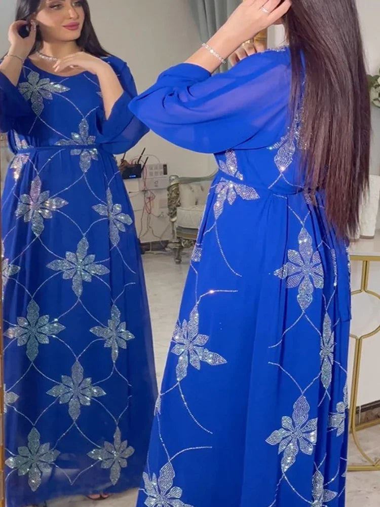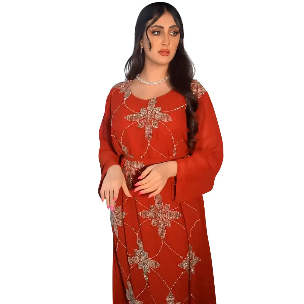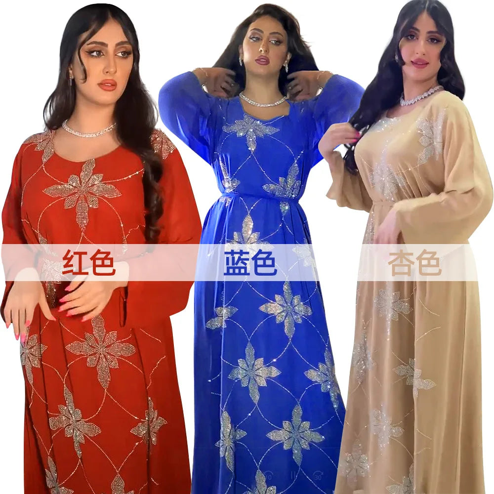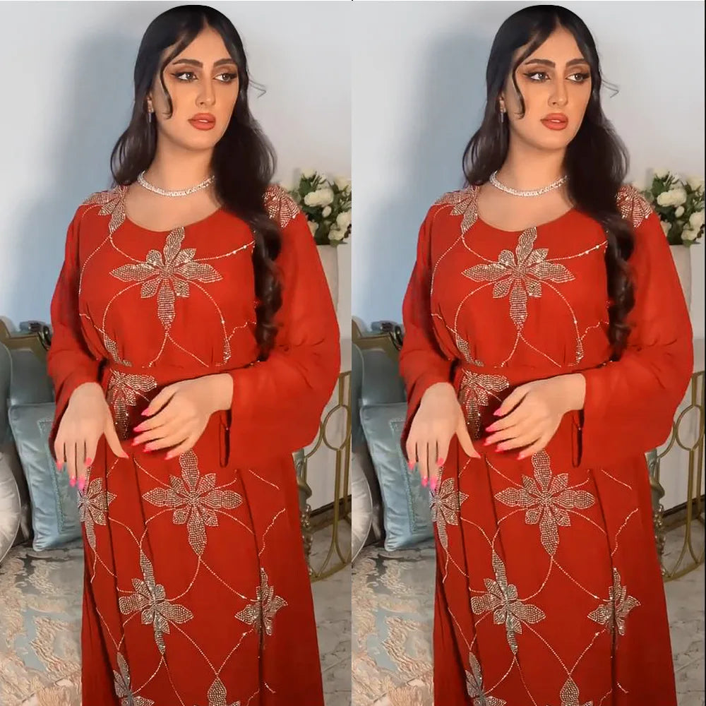 Eid Morocco Party Dress Women Muslim Abaya Diamond Ramadan Chiffon Dubai Abayas Kaftan Elegant Robe Vestidos Turkey Gown 2023