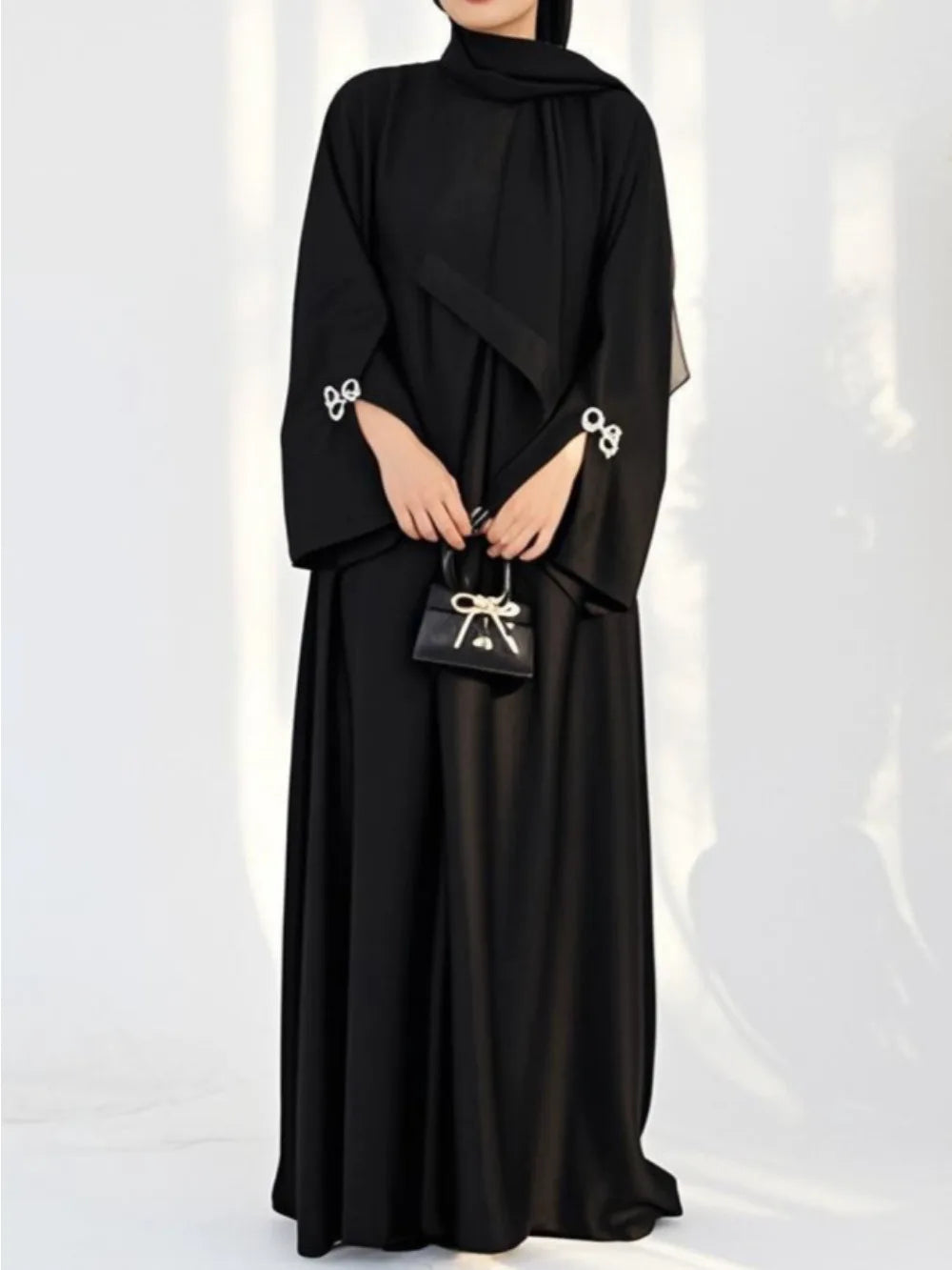 Eid Muslim Abaya for Women Bow Dresses Jalabiya Vestidos Split Sleeve Ramadan Morocco Dubai Long Robe Party Islam Kaftan 2025