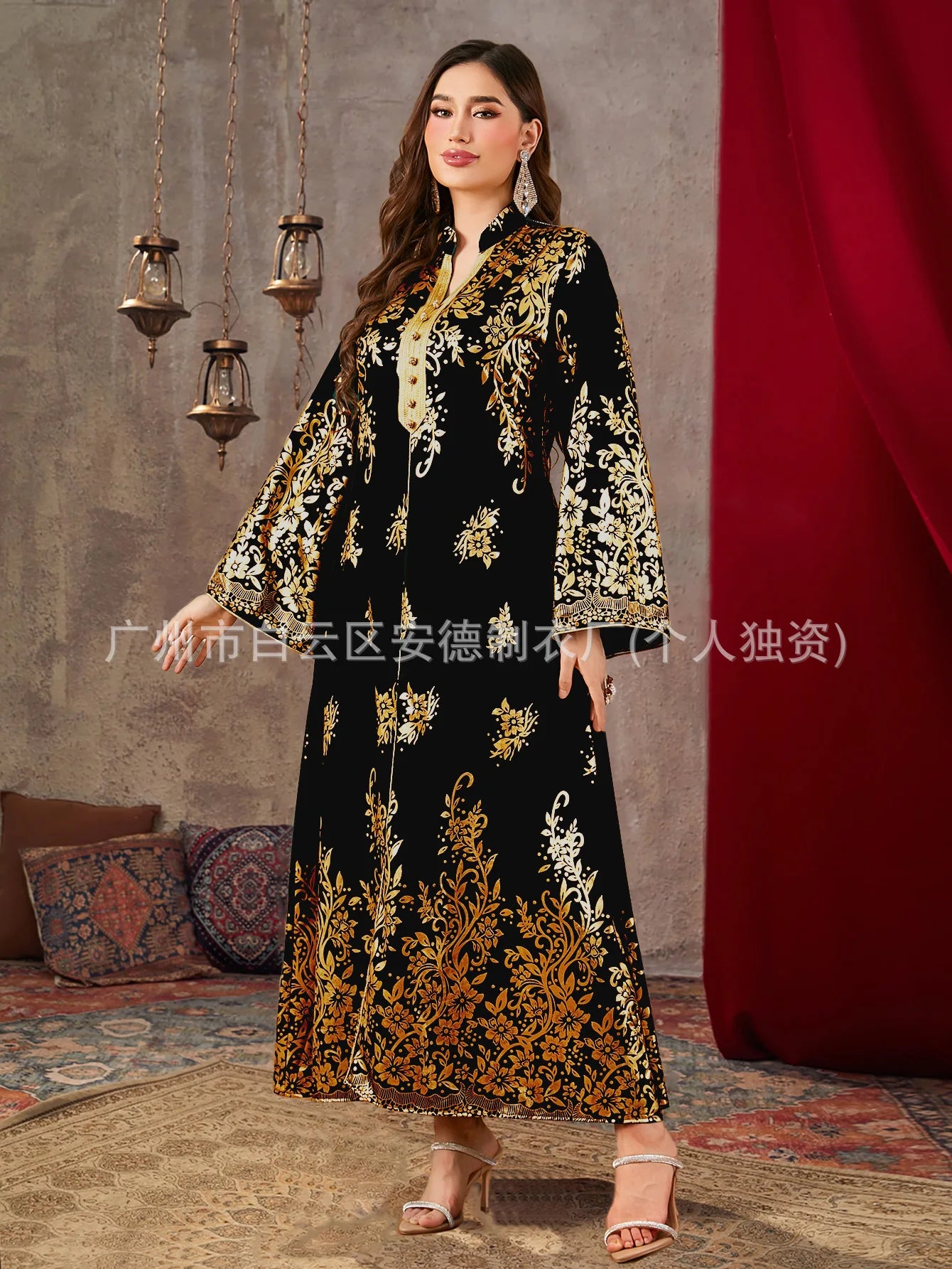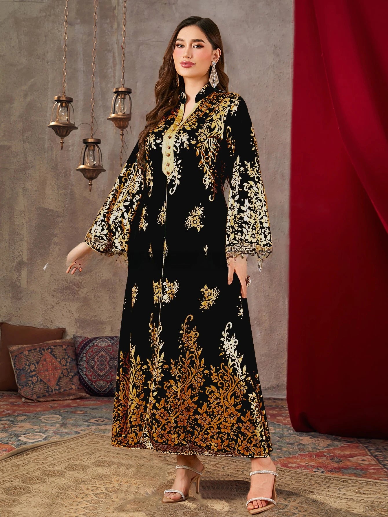 Eid Muslim Dress Women Party Abaya Print Ramadan Dresses Arab Long Robe Morocco Dubai Kaftan Islam Vestidos Jalabiya 2025