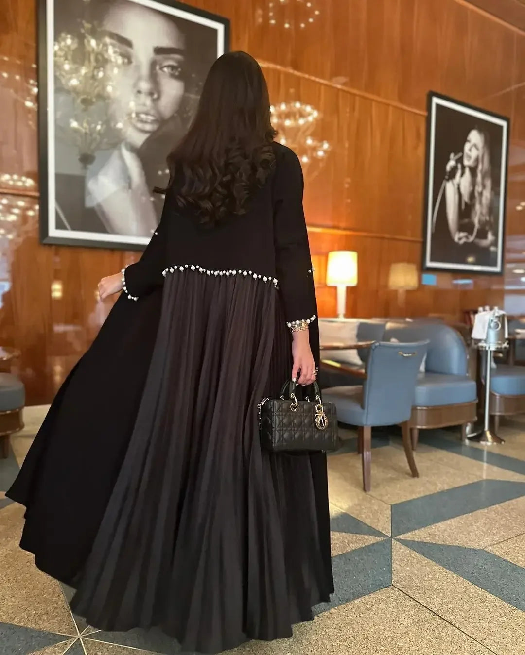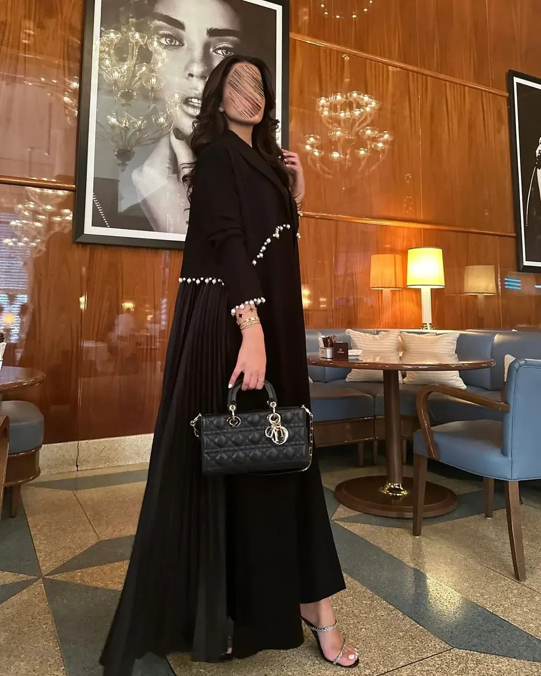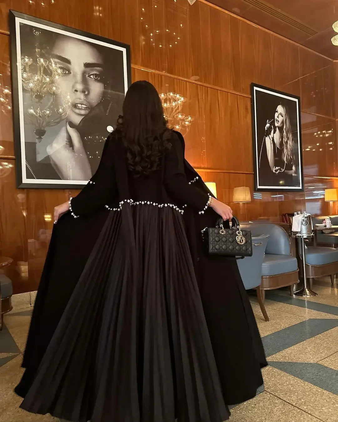 Eid Muslim Pearl Abaya for Women Beading Ramadan Cardigan Pleated Long Dress Morocco Kaftan Long Abayas Dubai Robe Jalabiya 2024