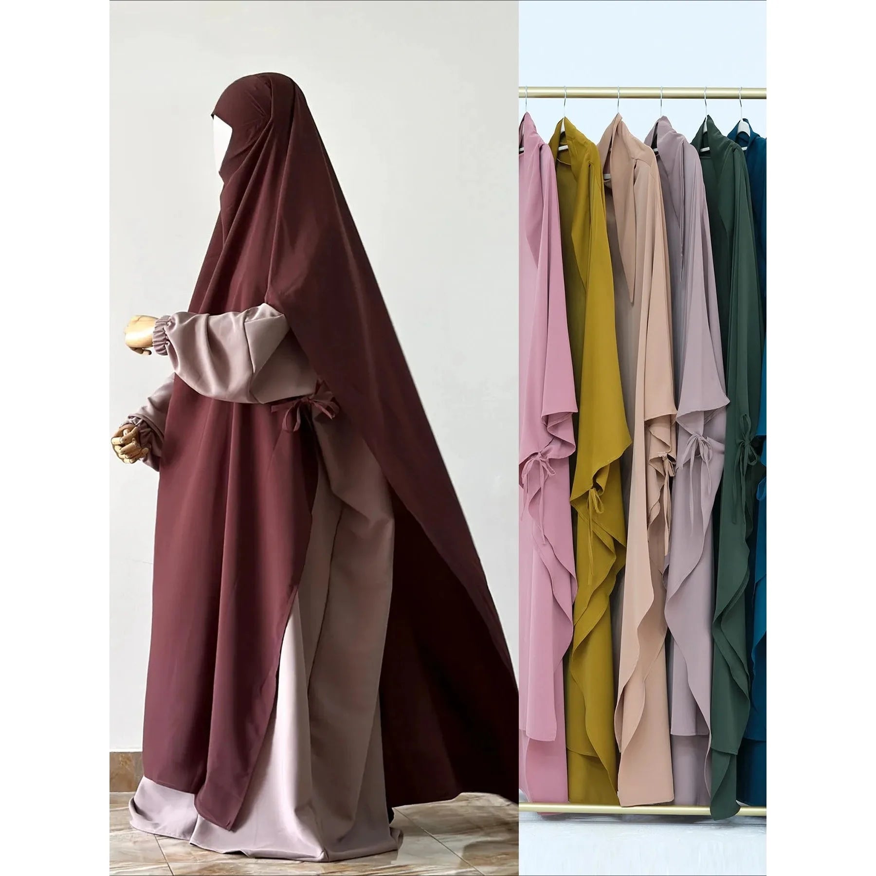 Eid Muslim Women Khimar Hijab Islamic Dubai Solid Color Scarves Turban Arab Ladies Praying Headdress Ramadan Long Headscarf 2025
