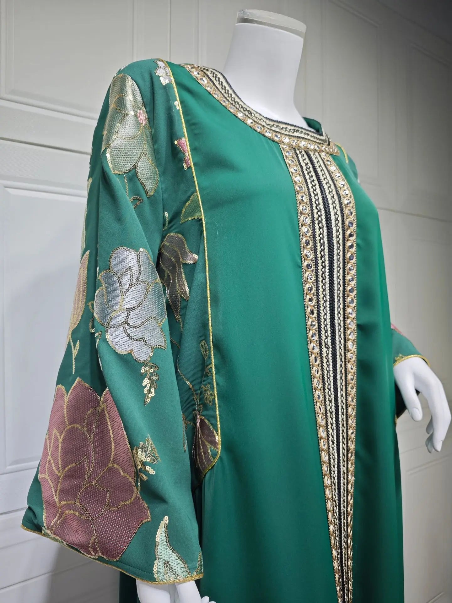 Eid Sequins Muslim Dress for Women Embroidery Party Long Dresses Robe Ramadan Dubai Kaftan Islam Vestidos Jalabiya Dresses 2025