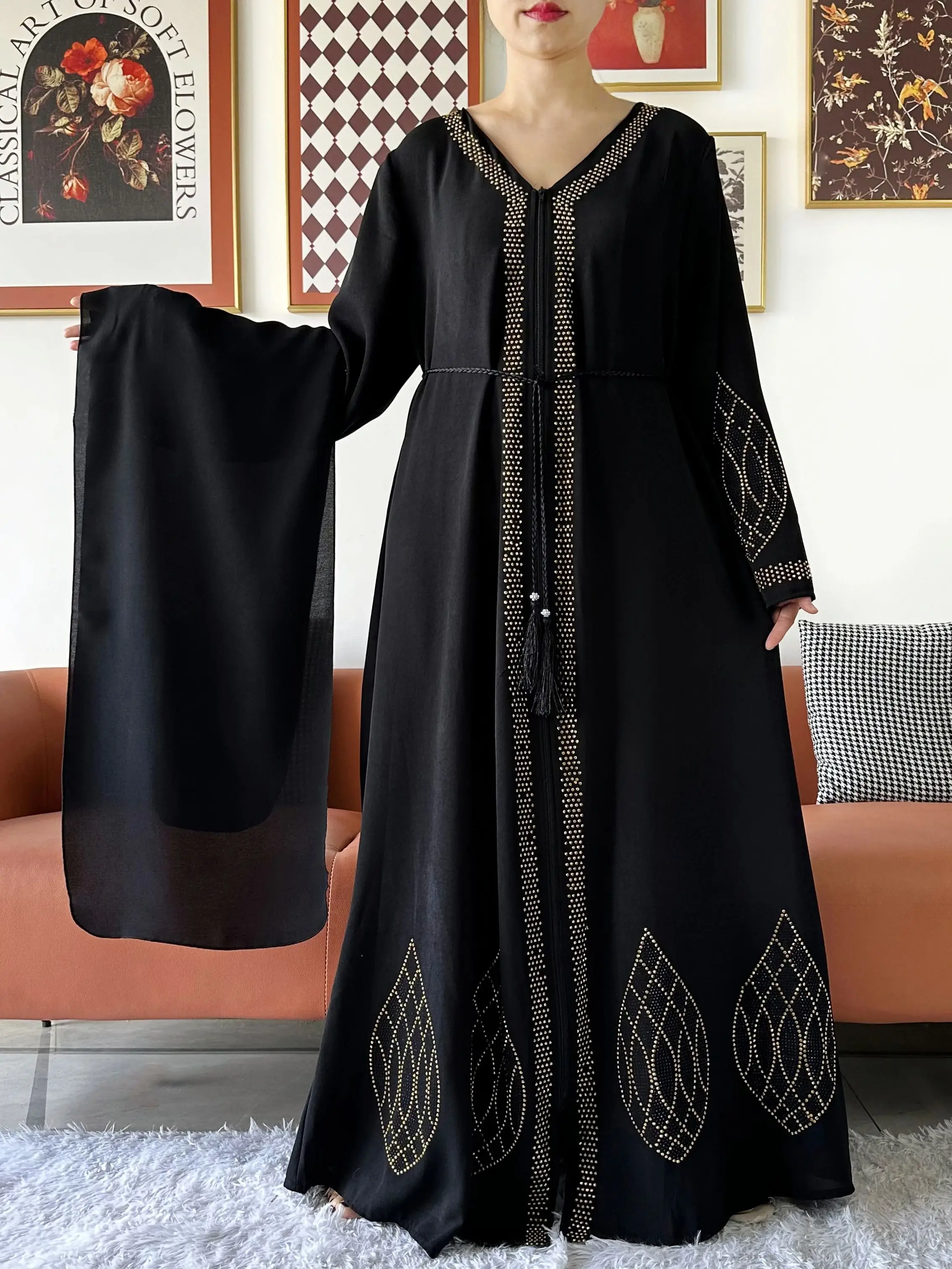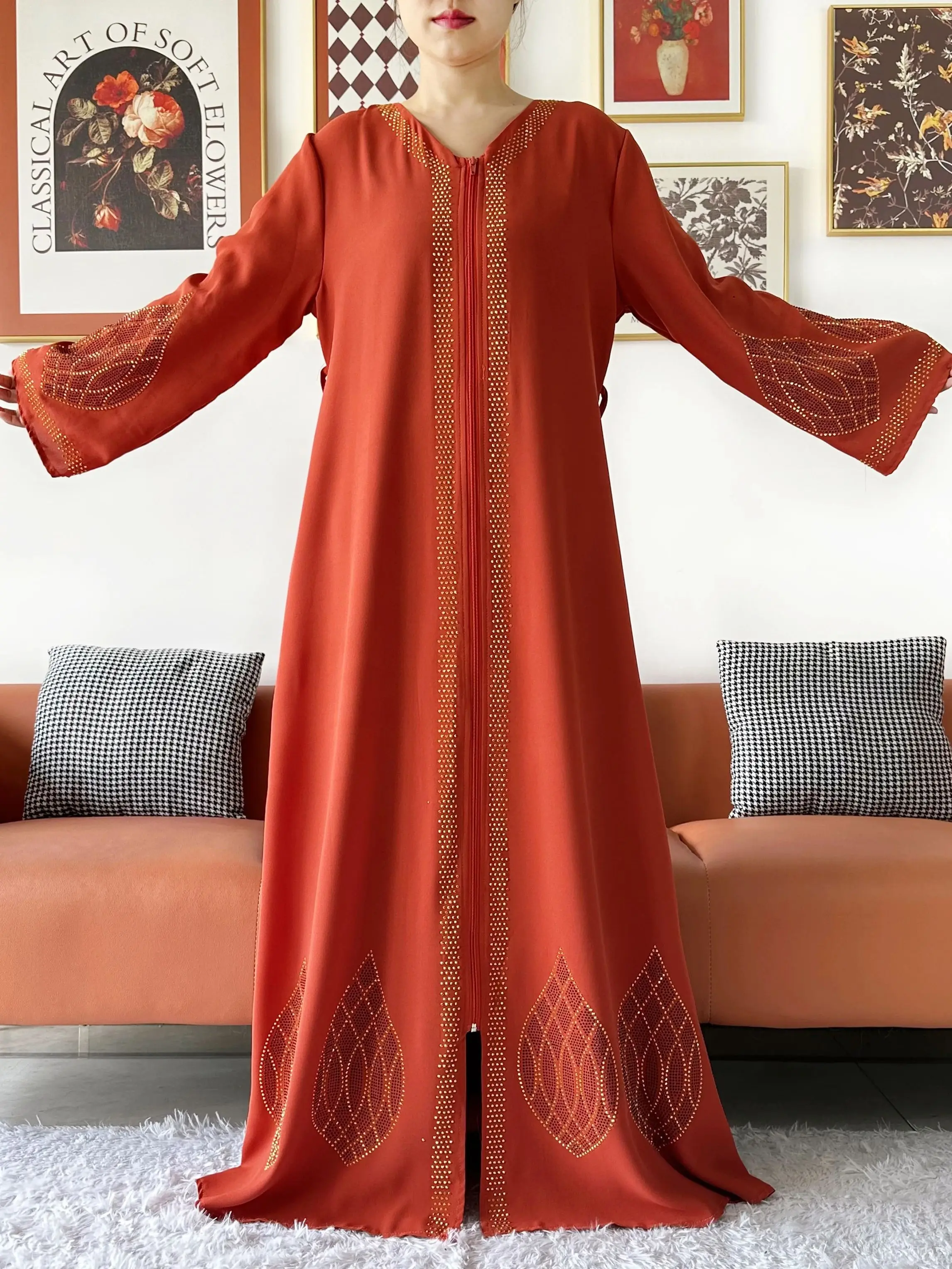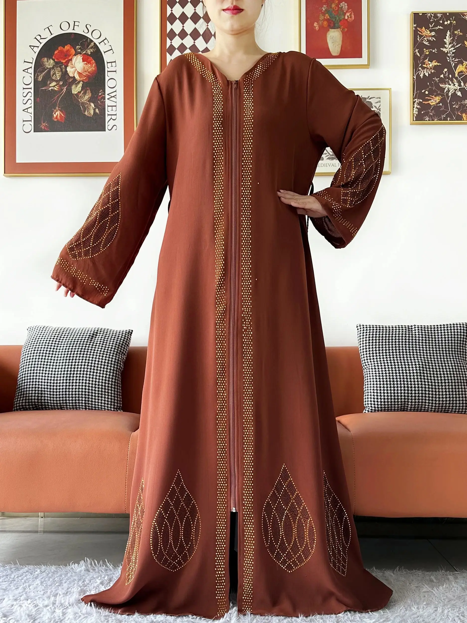 Elegant Women's Party Dress Chiffon Loose Open Zipper Abaya Muslim Islamic Clothing Cardigan Style for Special Occasions