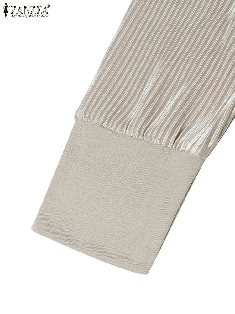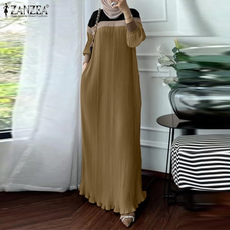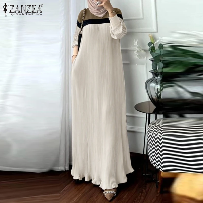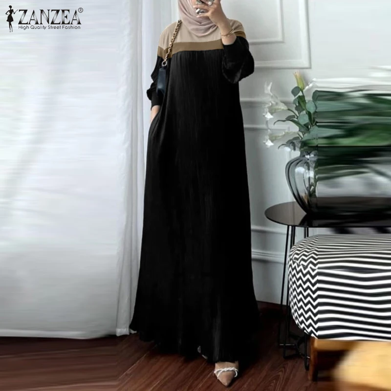 Fashion Autumn Long Sleeve Pleated Sundress 2024 ZANZEA Muslim Abaya Robe Femmme Women Patchwork Maxi Dresses Casual Vestidos