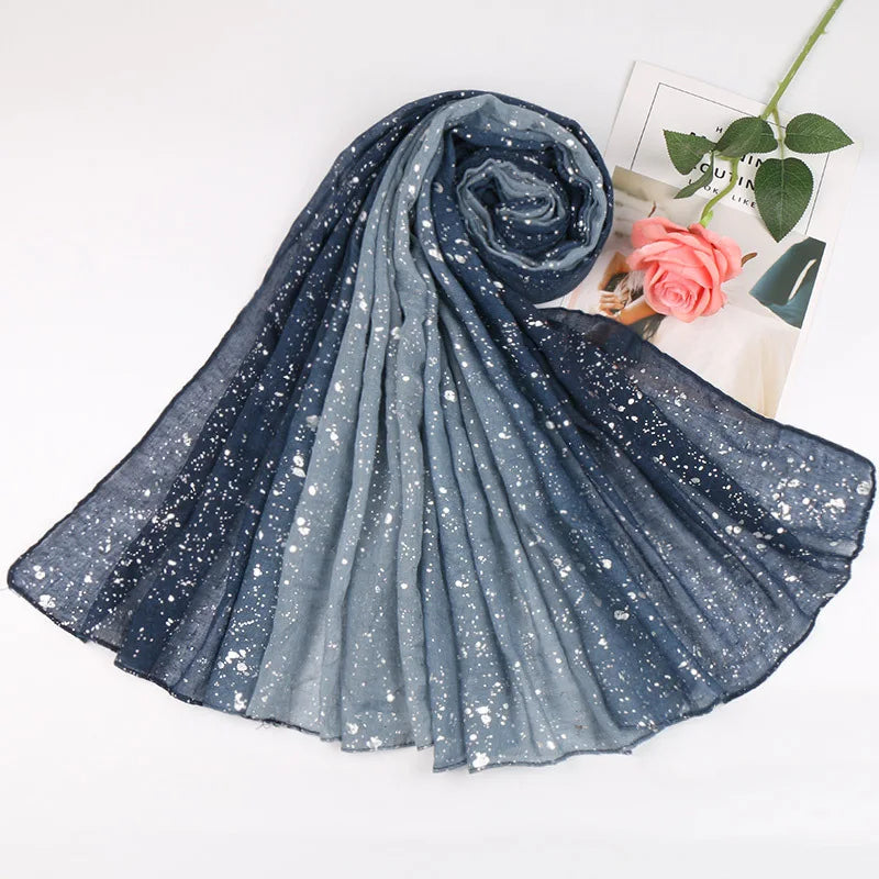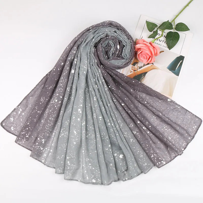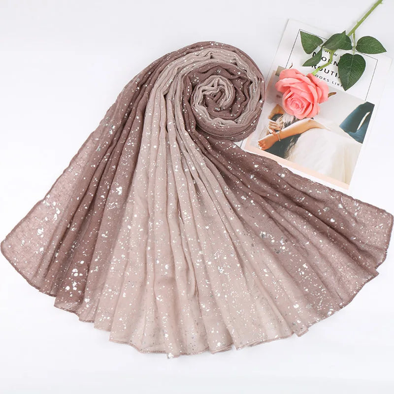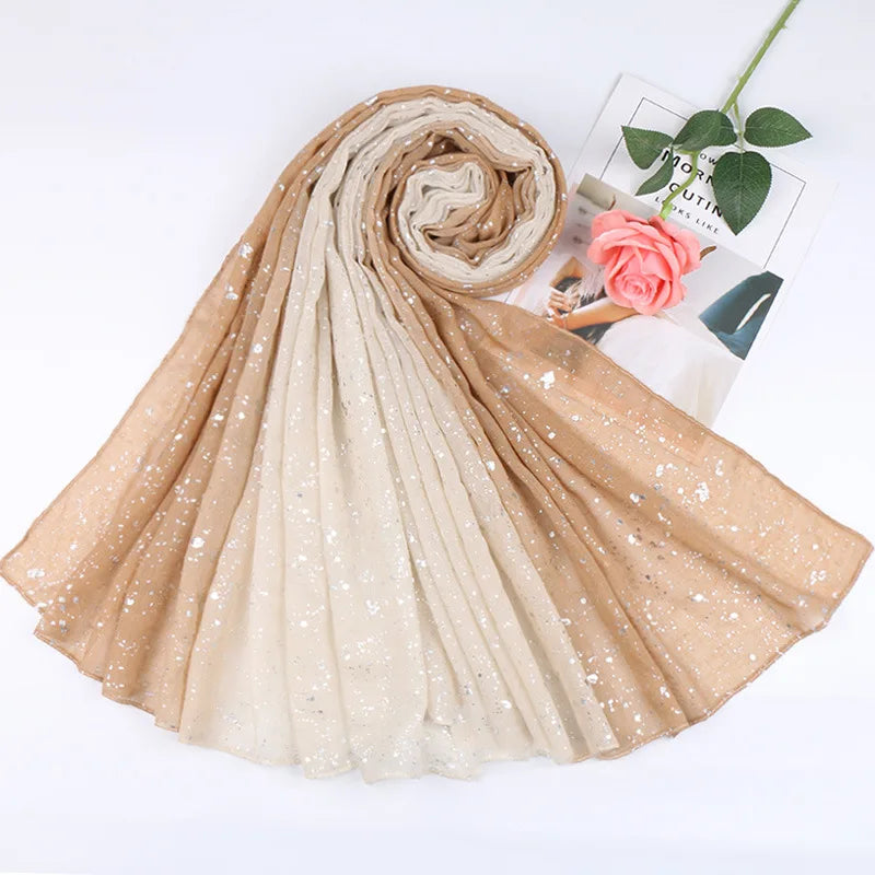 Fashion Ombre Two-tone Glitter Gradient Viscose Shawl Scarf Women Shimmer Bling Wrap Pashmina Stole Bufandas Muslim Hijab Snood