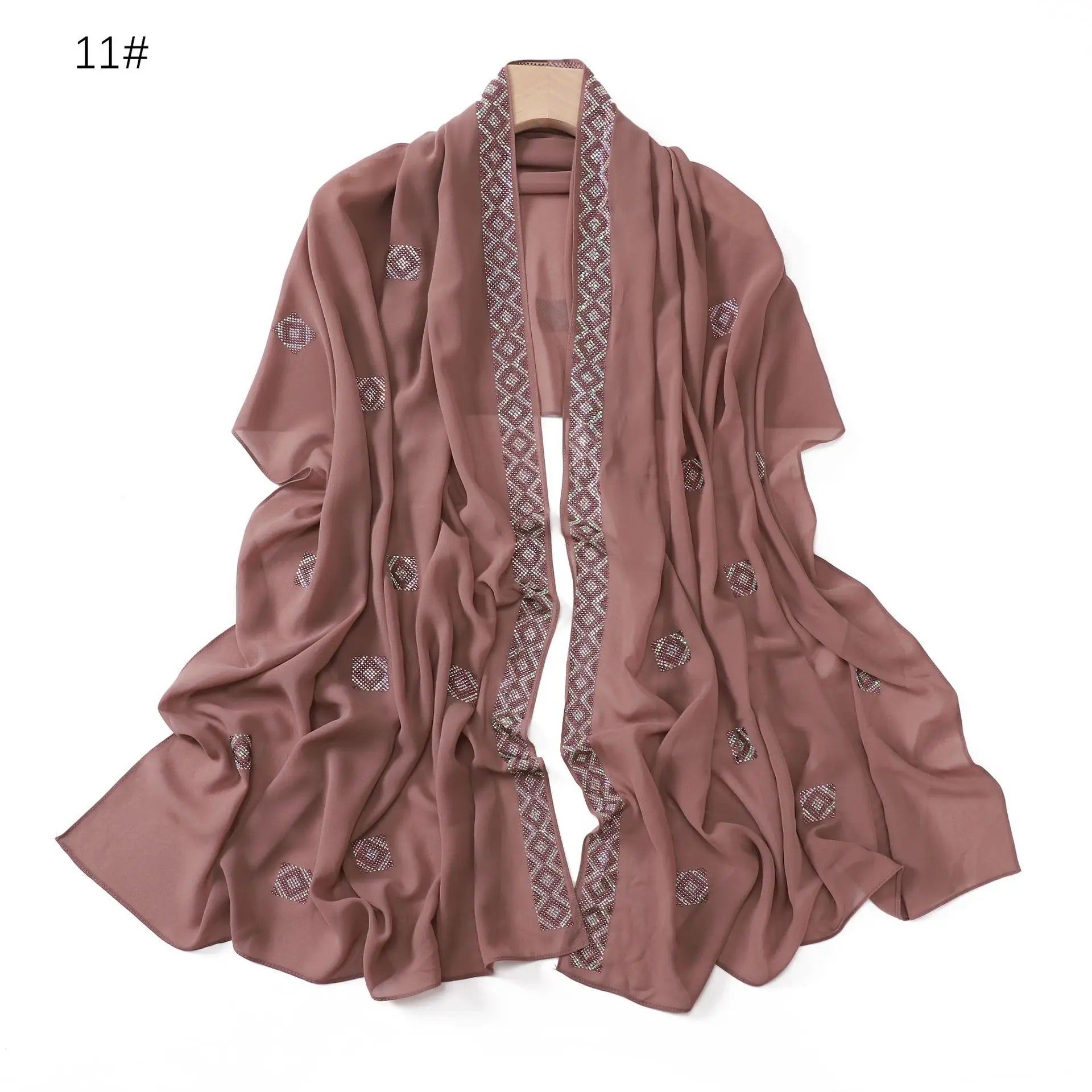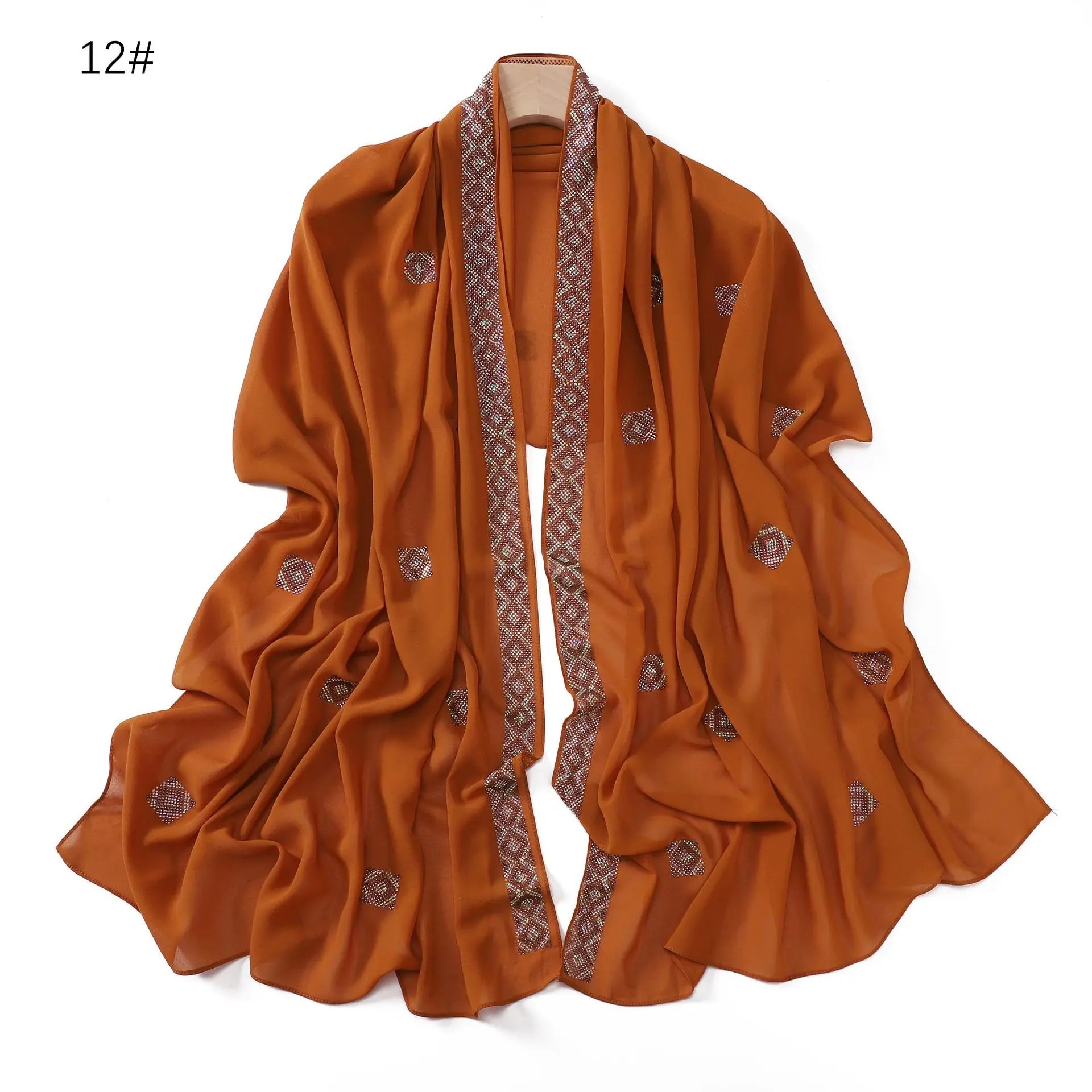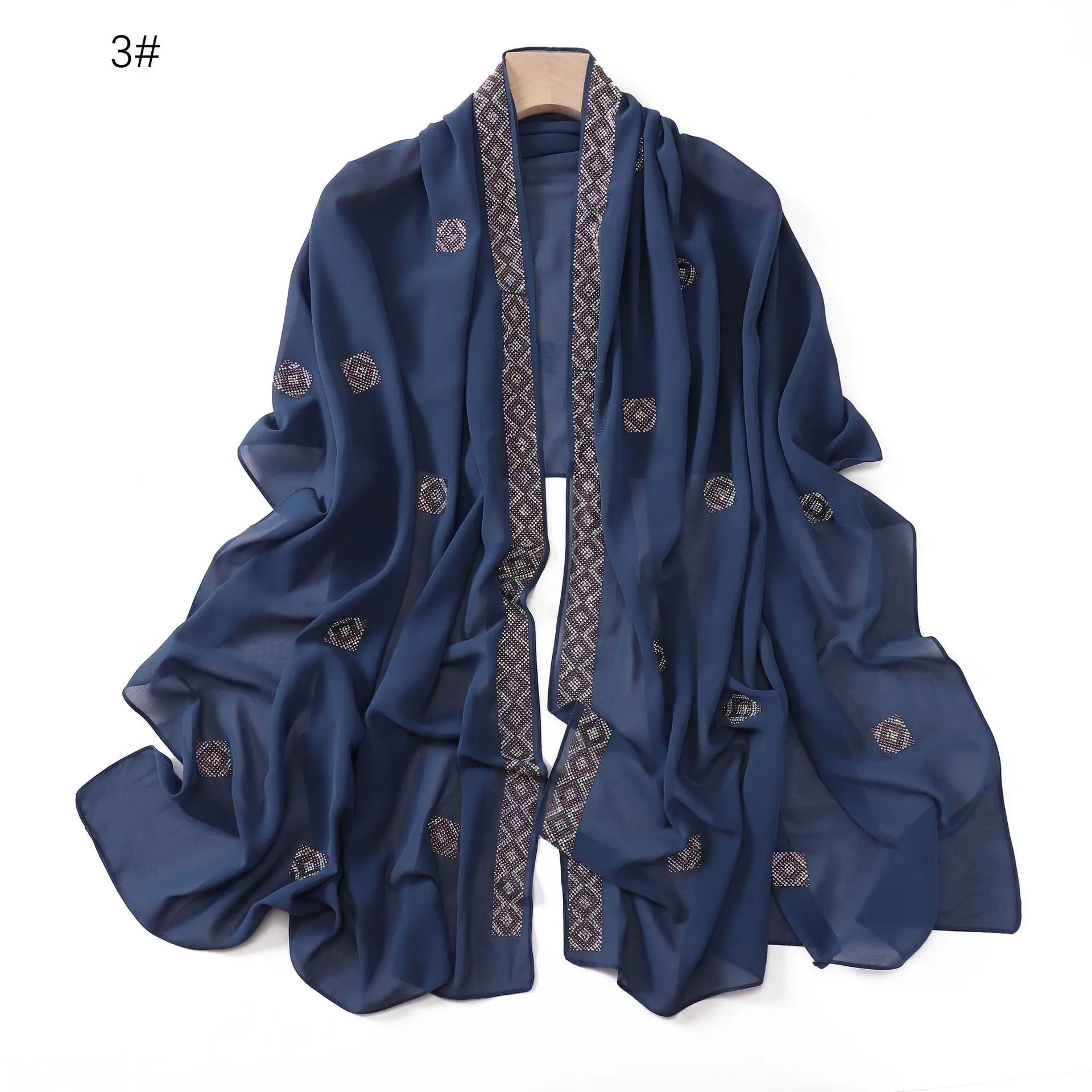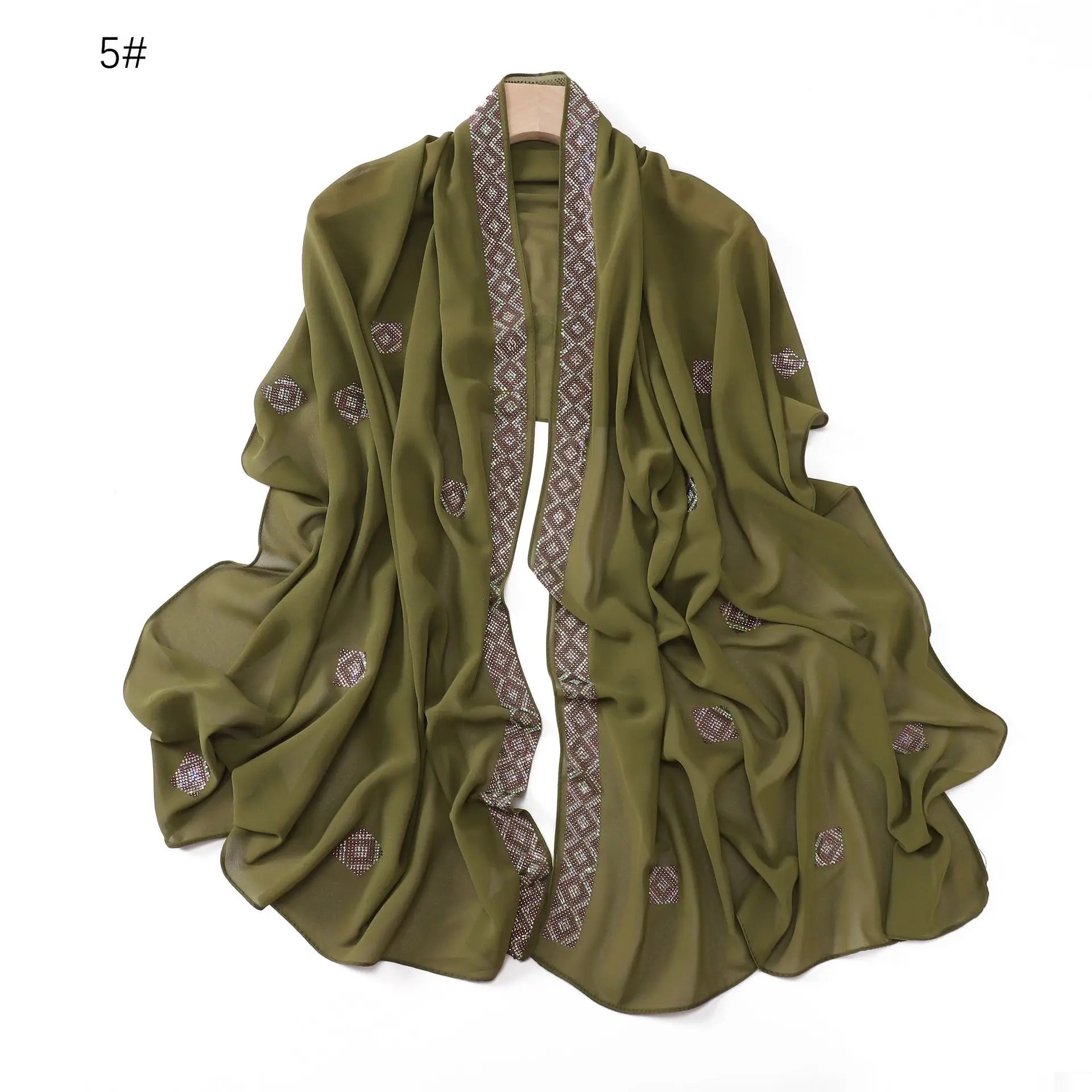 Fashion Rhinestone Chiffon Long Scarf Shawl for Women Head Wrap Hijab Turban Islam Veil Bandanas Bufanda Foulard Turbante Mujer