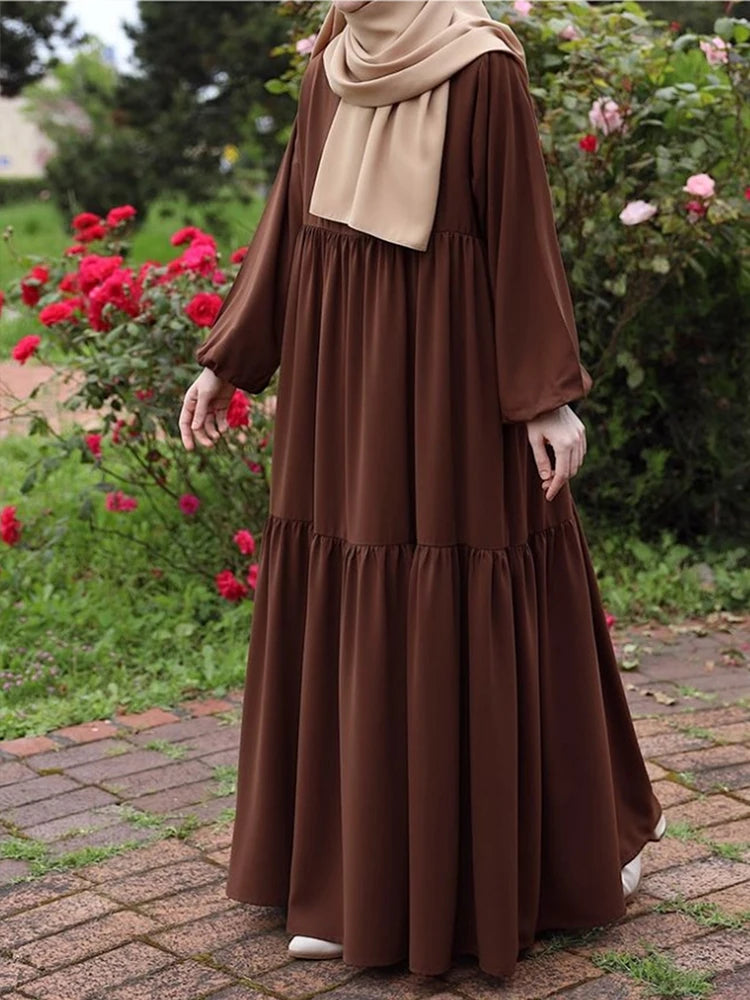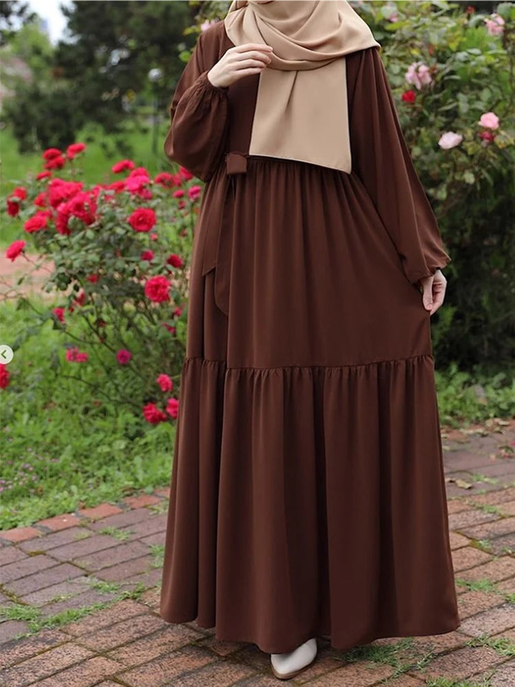Fashionable Muslim women's loose long sleeved retro elegant dress