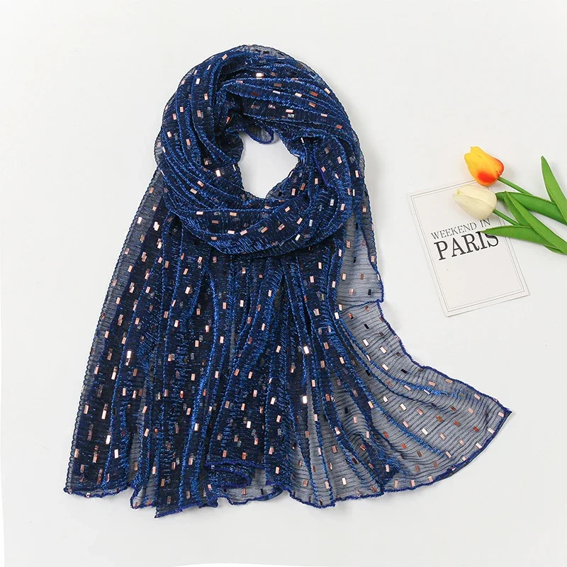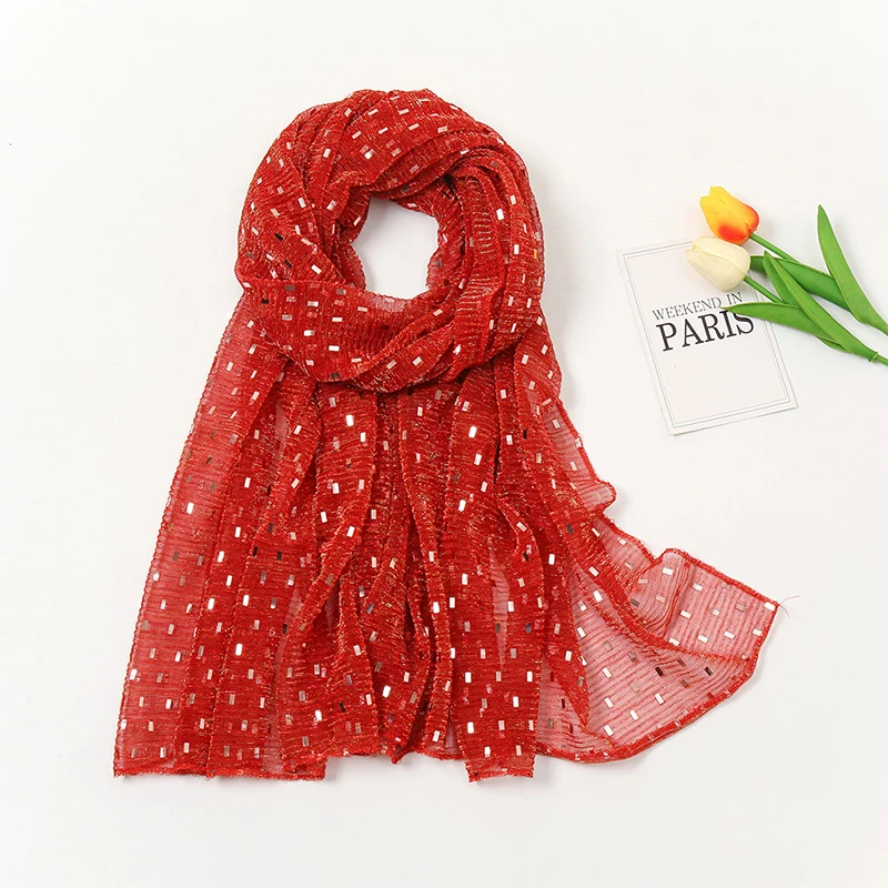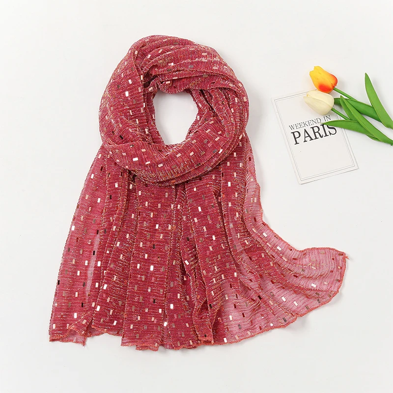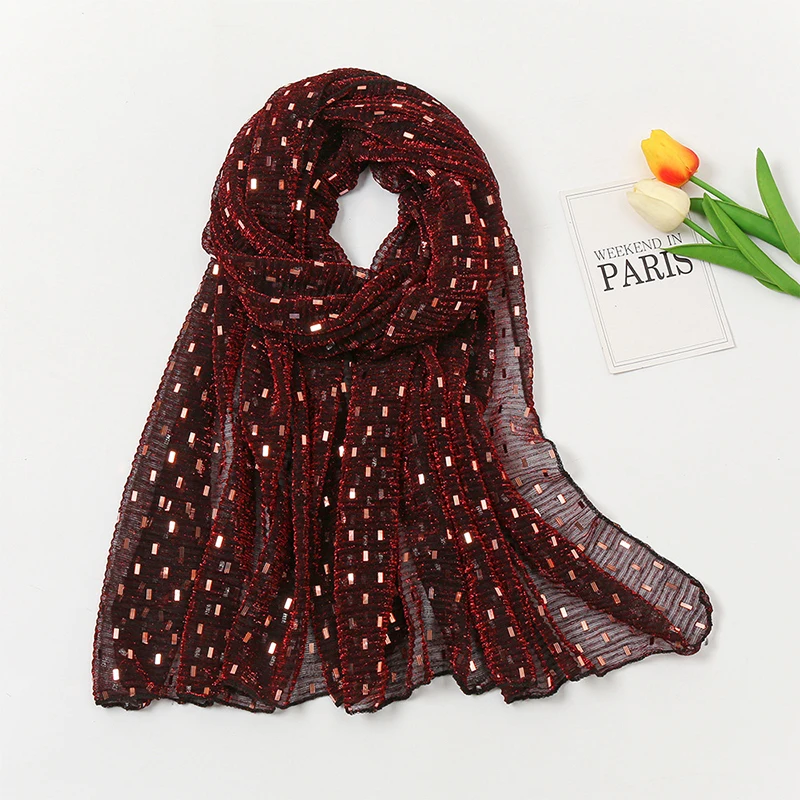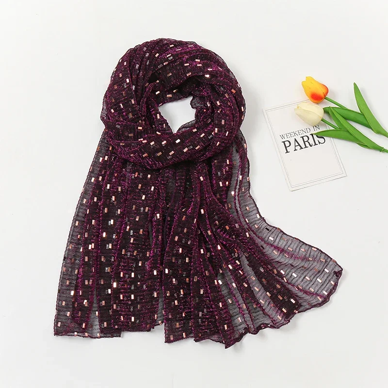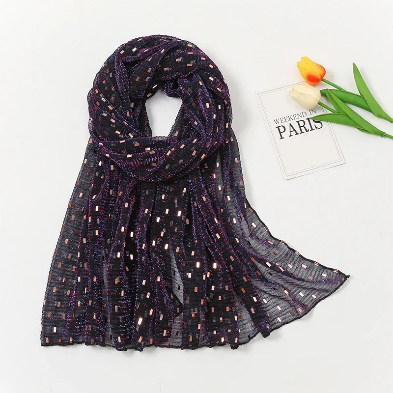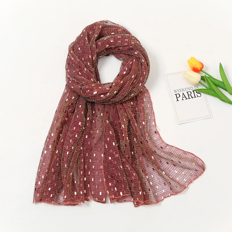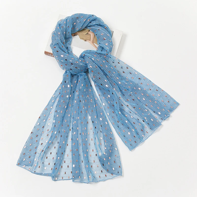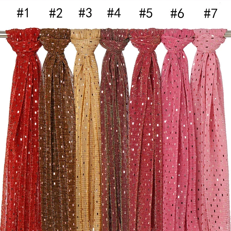 Glitter Shimmer Muslim Hijabs Fashion Solid Bubble Chiffon Scarf High Quality Shawl Scarves Silver Crinkle Woman Headscarf