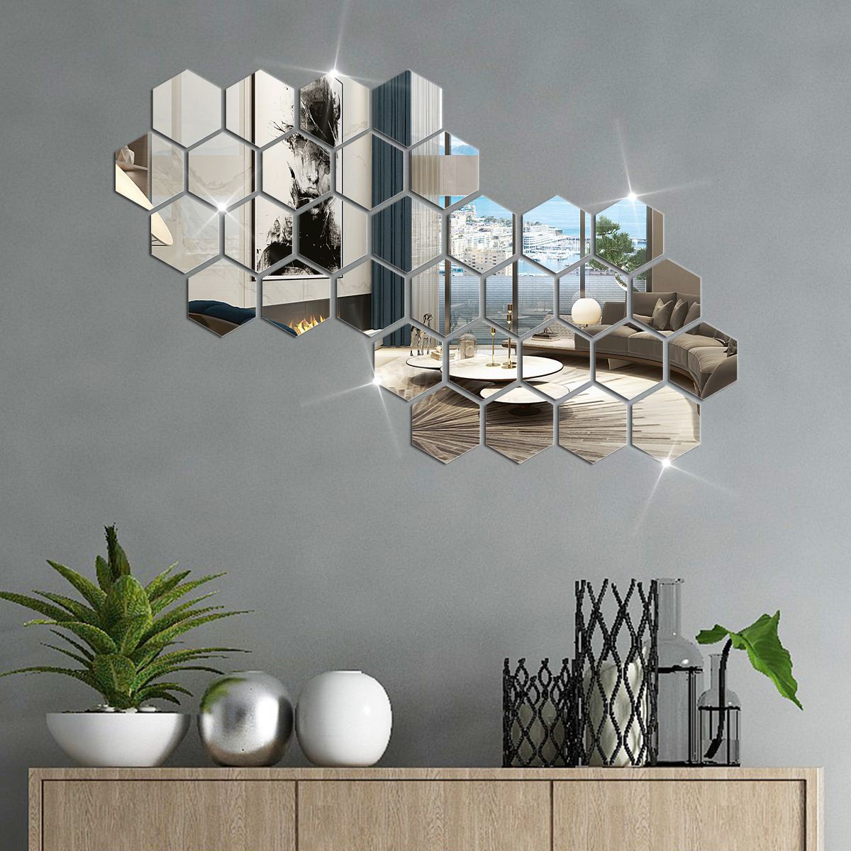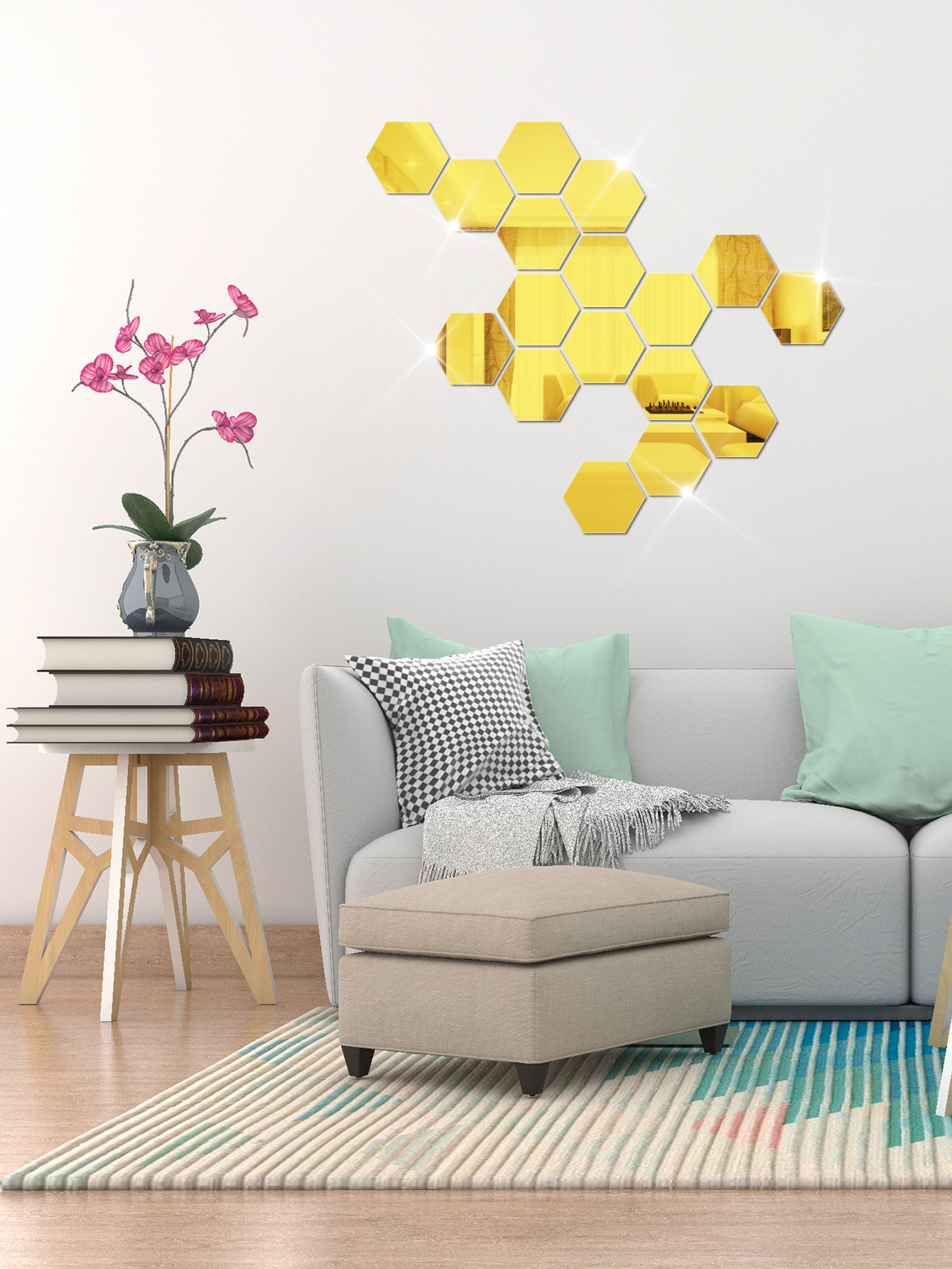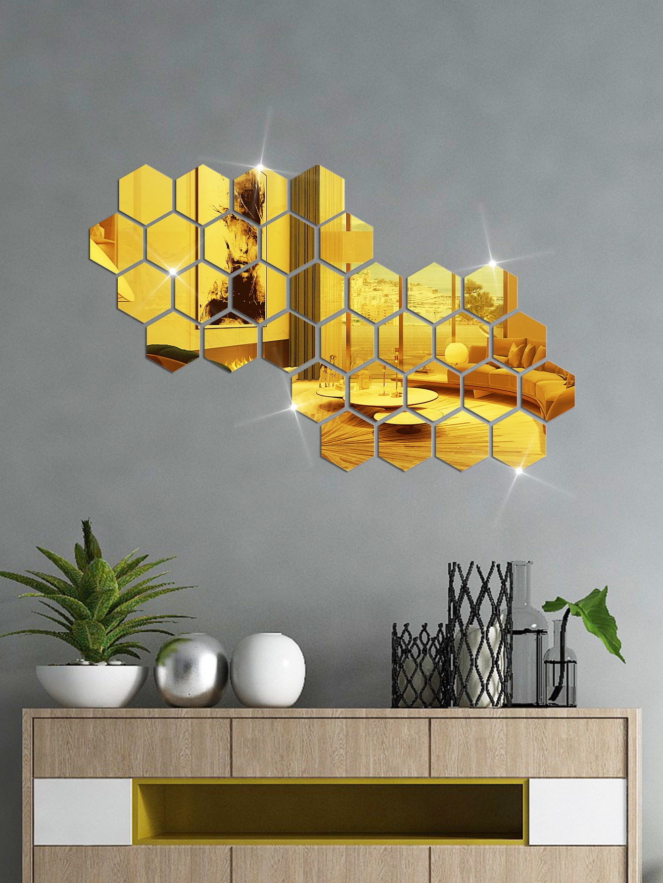 Hexagonal acrylic mirror wall sticker
