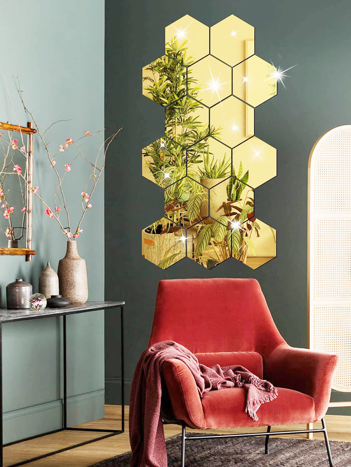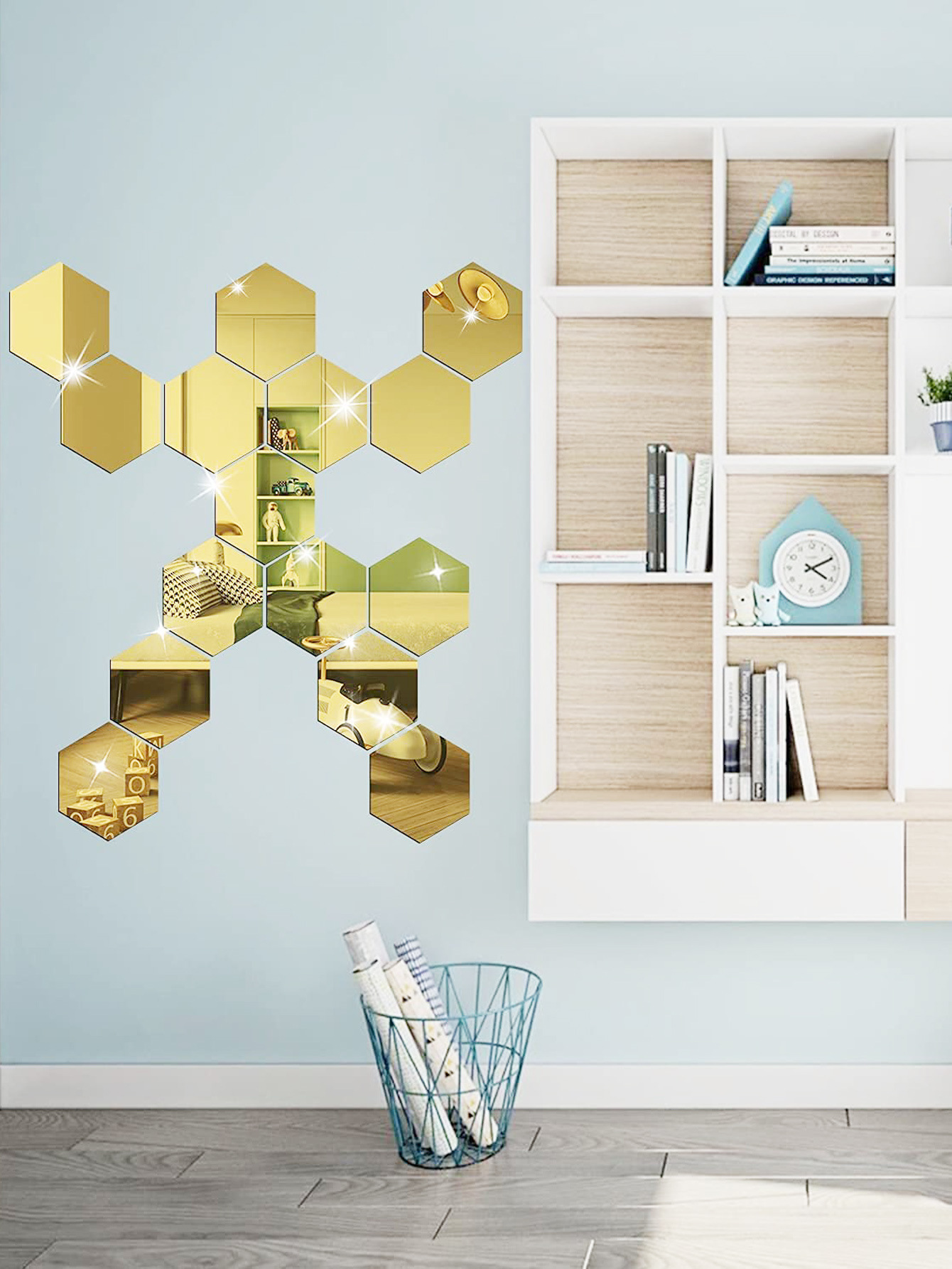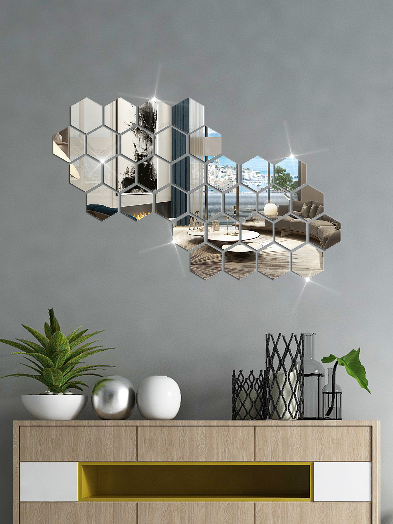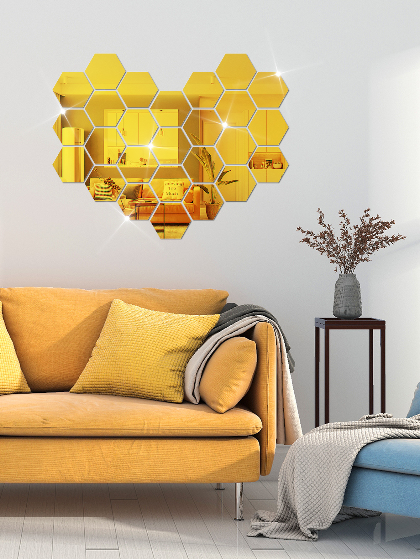 Hexagonal acrylic mirror wall sticker
