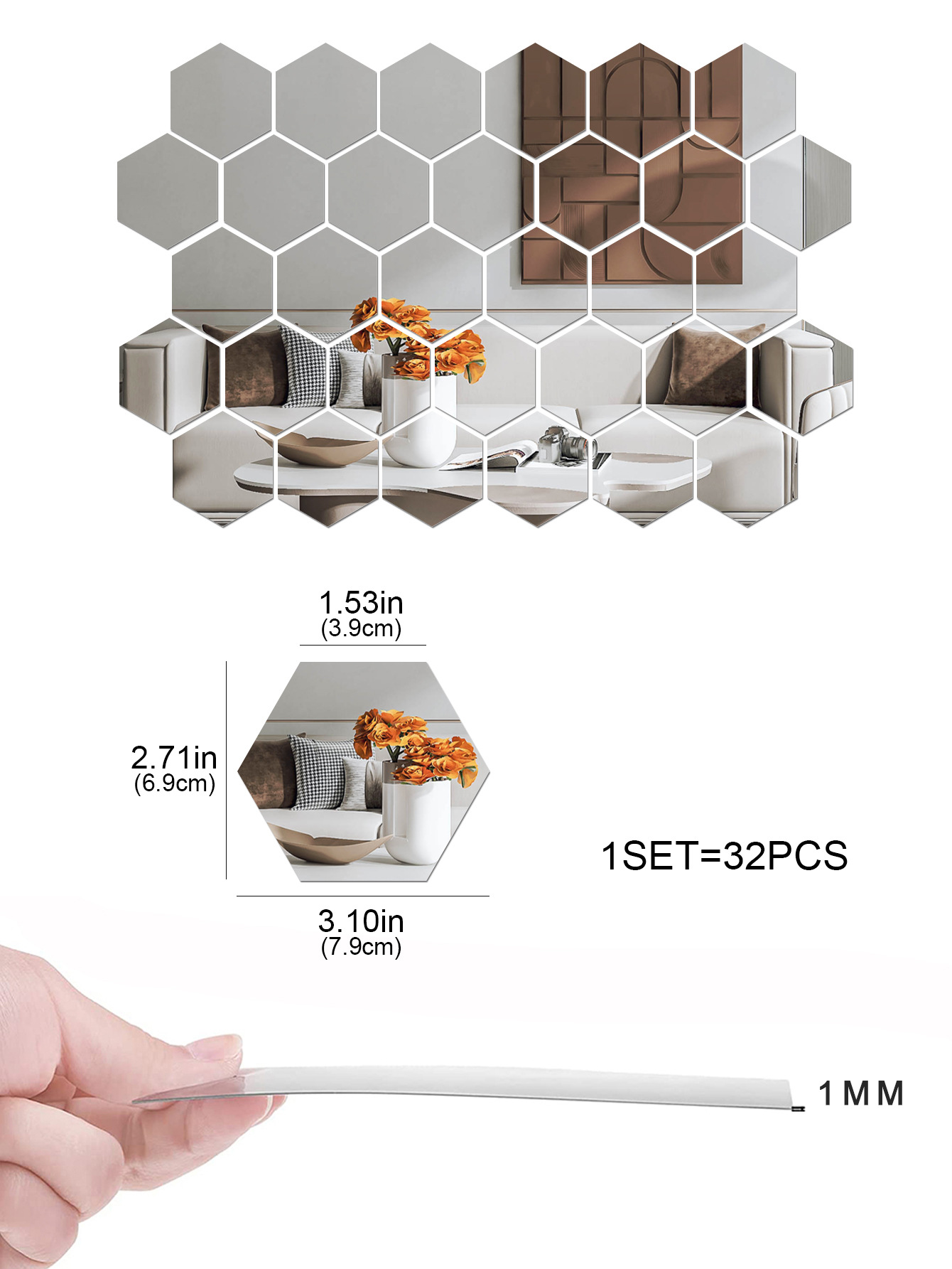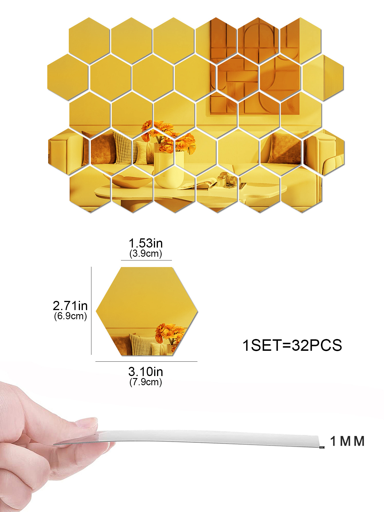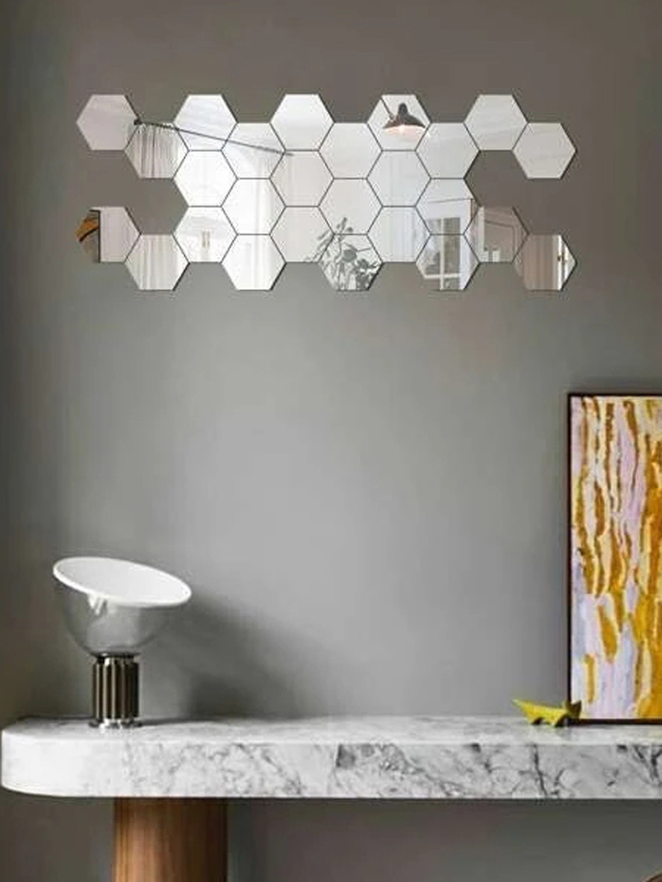OverviewHexagonal Design - Modern geometric shape for stylish wall decorationSelf-Adhesive Backing - Easy peel-and-stick installation without toolsAcrylic Material - Durable... Read more