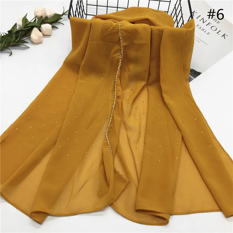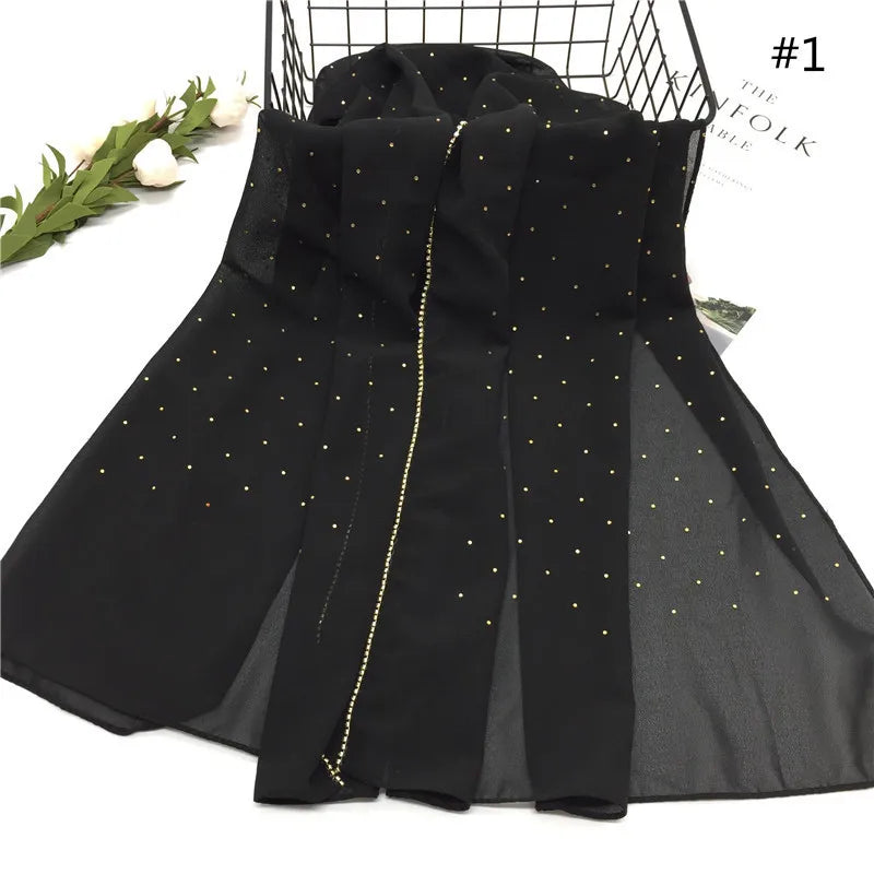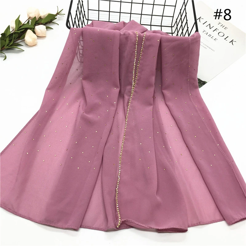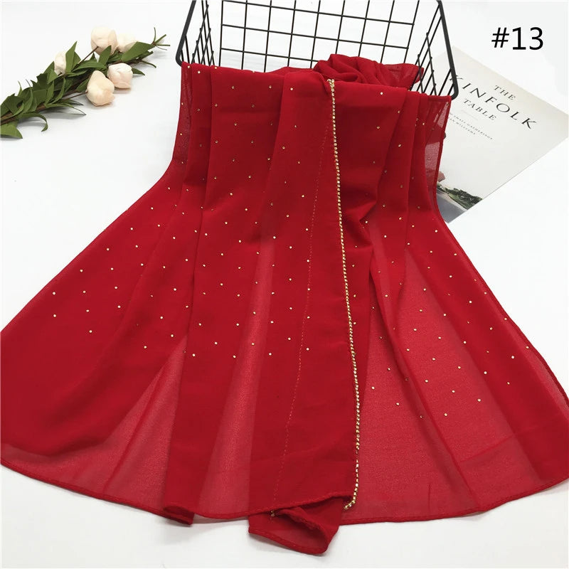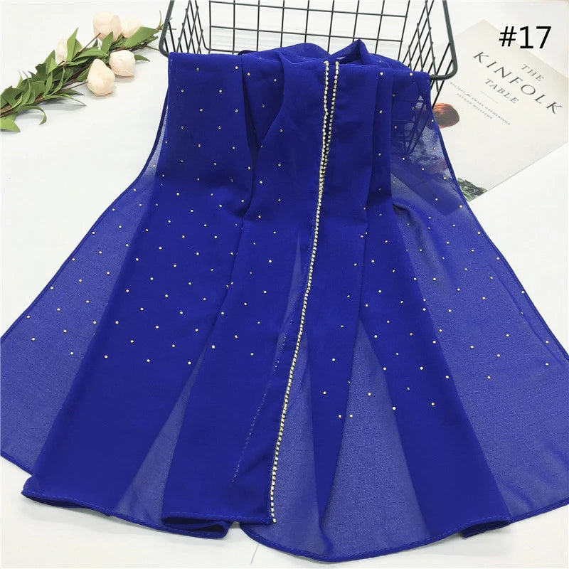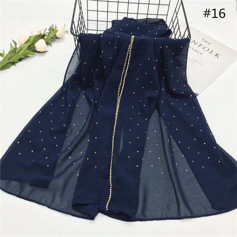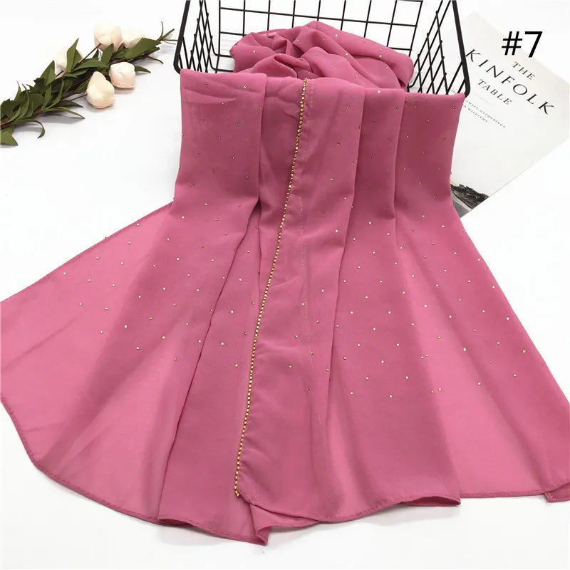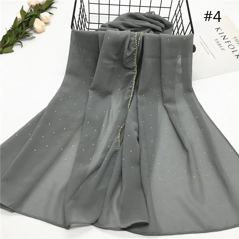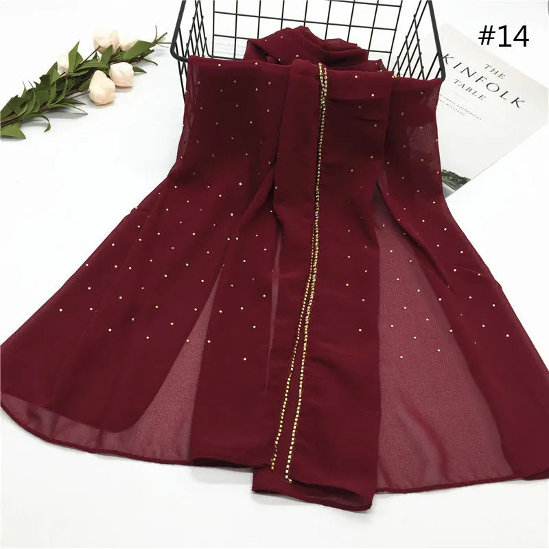 High Quality Rhinestone Chain Pearl Chiffon Long Scarf Hijabs Elegant Dubai Muslim Womens Party Wrapped Turban Shawls Headwear