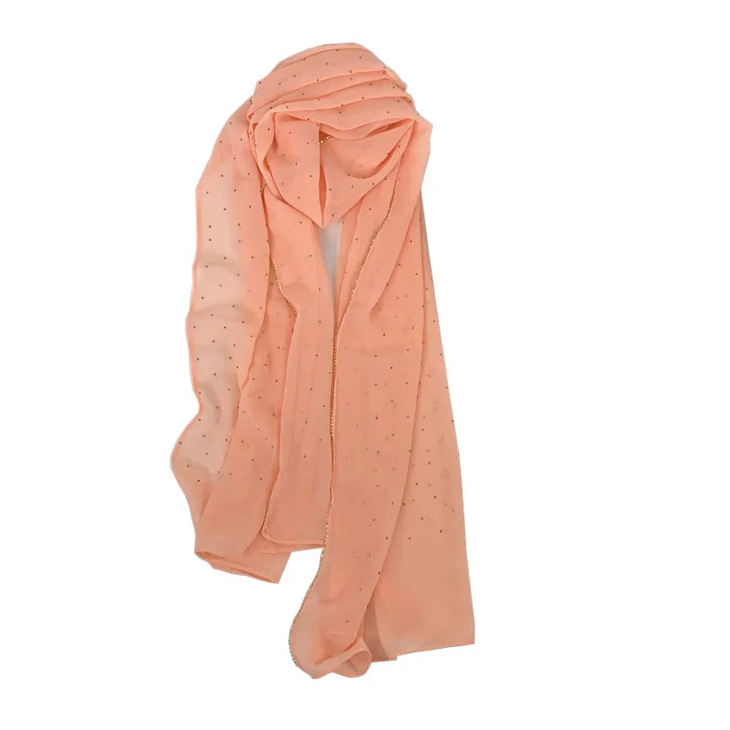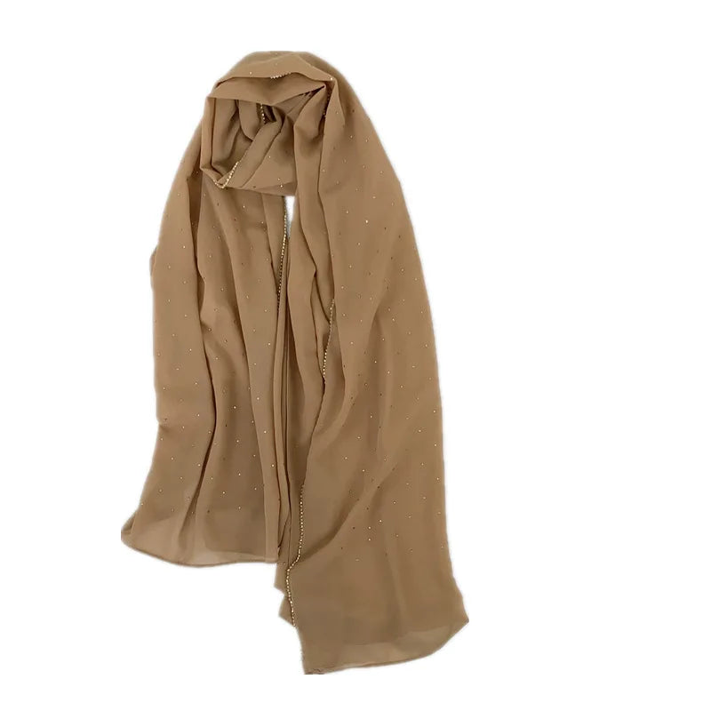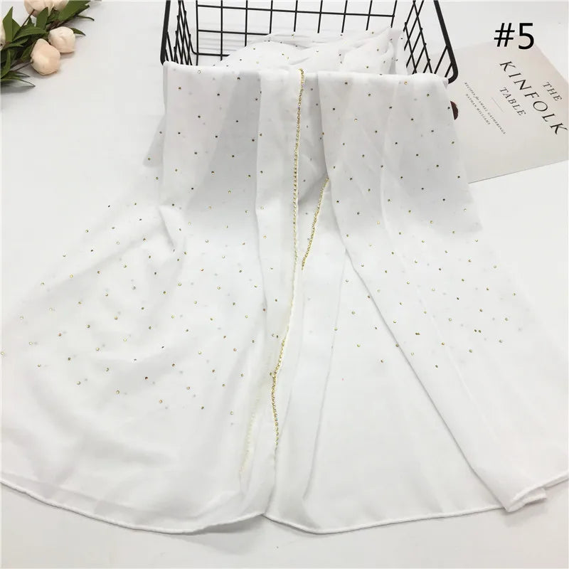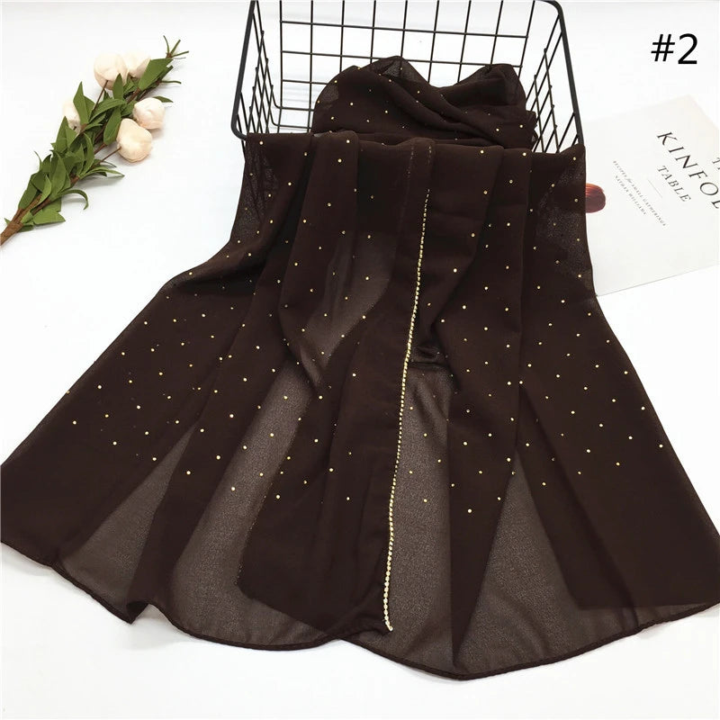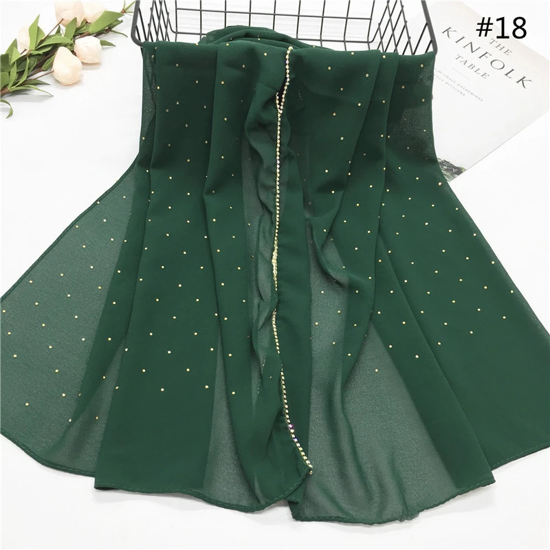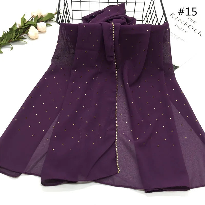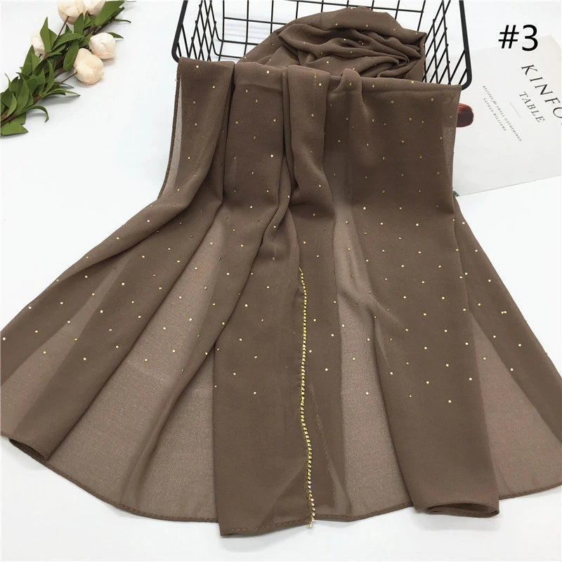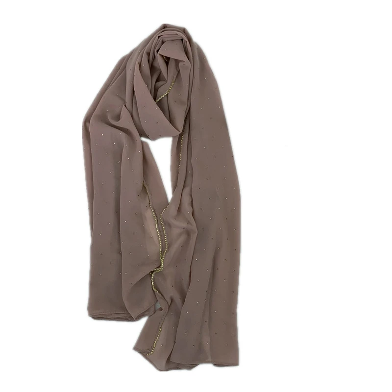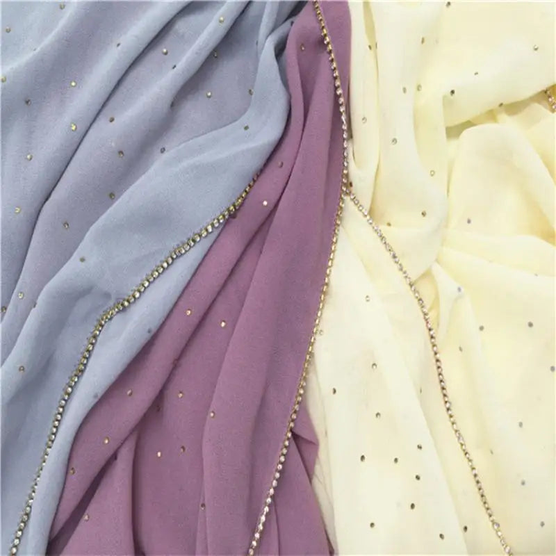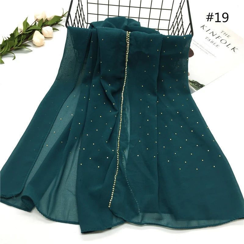 High Quality Rhinestone Chain Pearl Chiffon Long Scarf Hijabs Elegant Dubai Muslim Womens Party Wrapped Turban Shawls Headwear