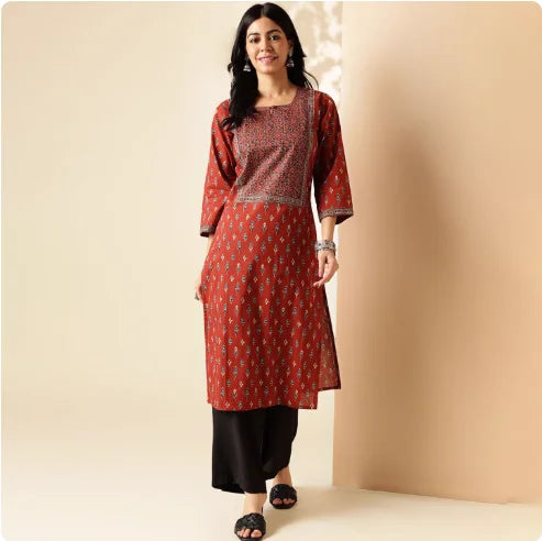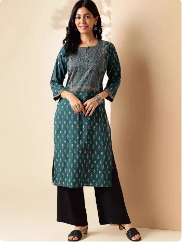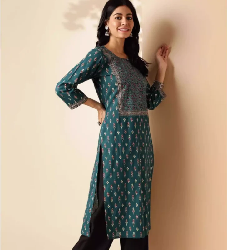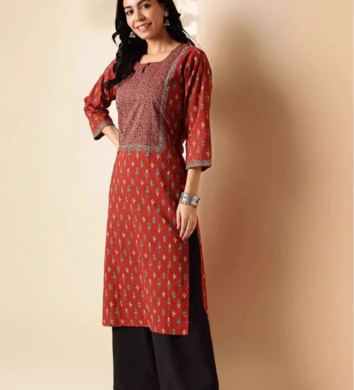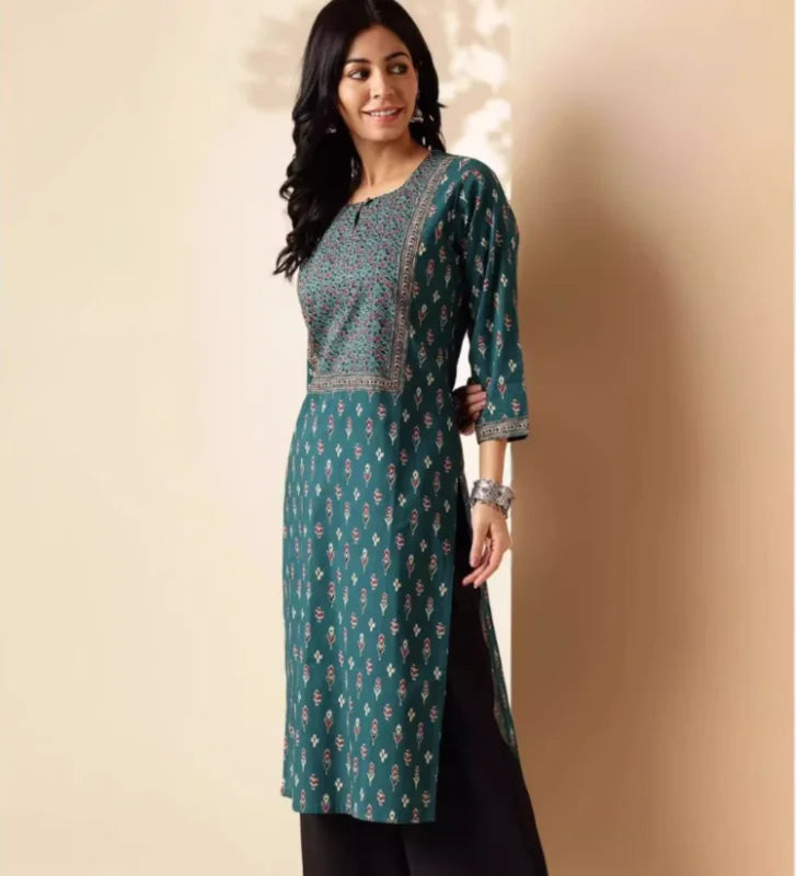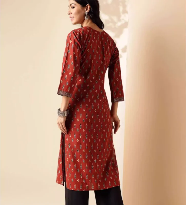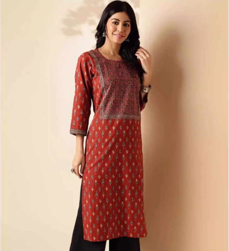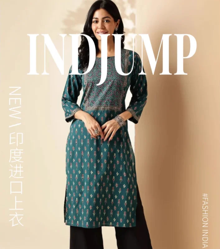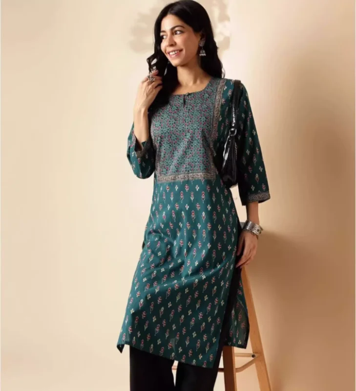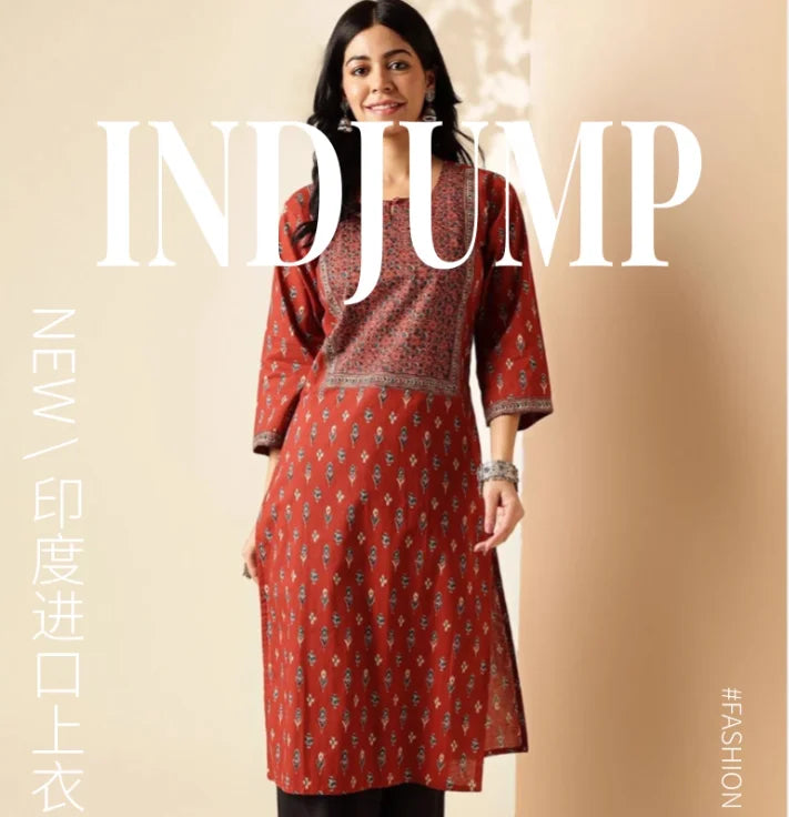 Indian Women's Ethnic Style Pure Cotton Printed Seven Quarter Sleeve Top
