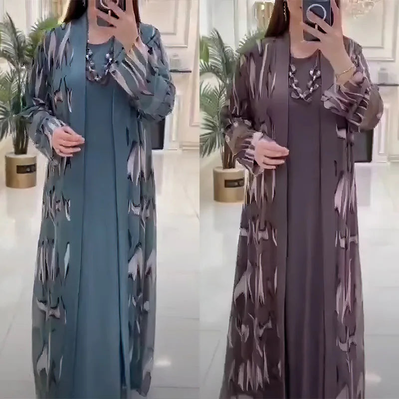 Jalabiya Eid Abayas Dress Set Kaftan Turkey Caftan Robe 2 Piece Kaftan Muslim Women Abaya Party Dresses Ramadan Elegant